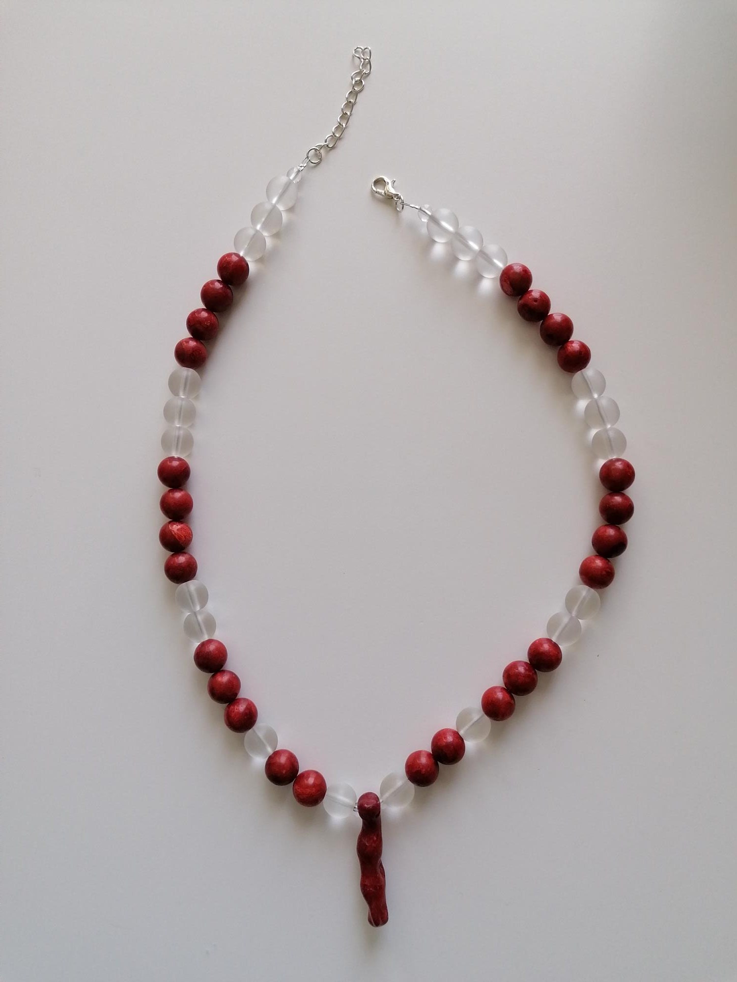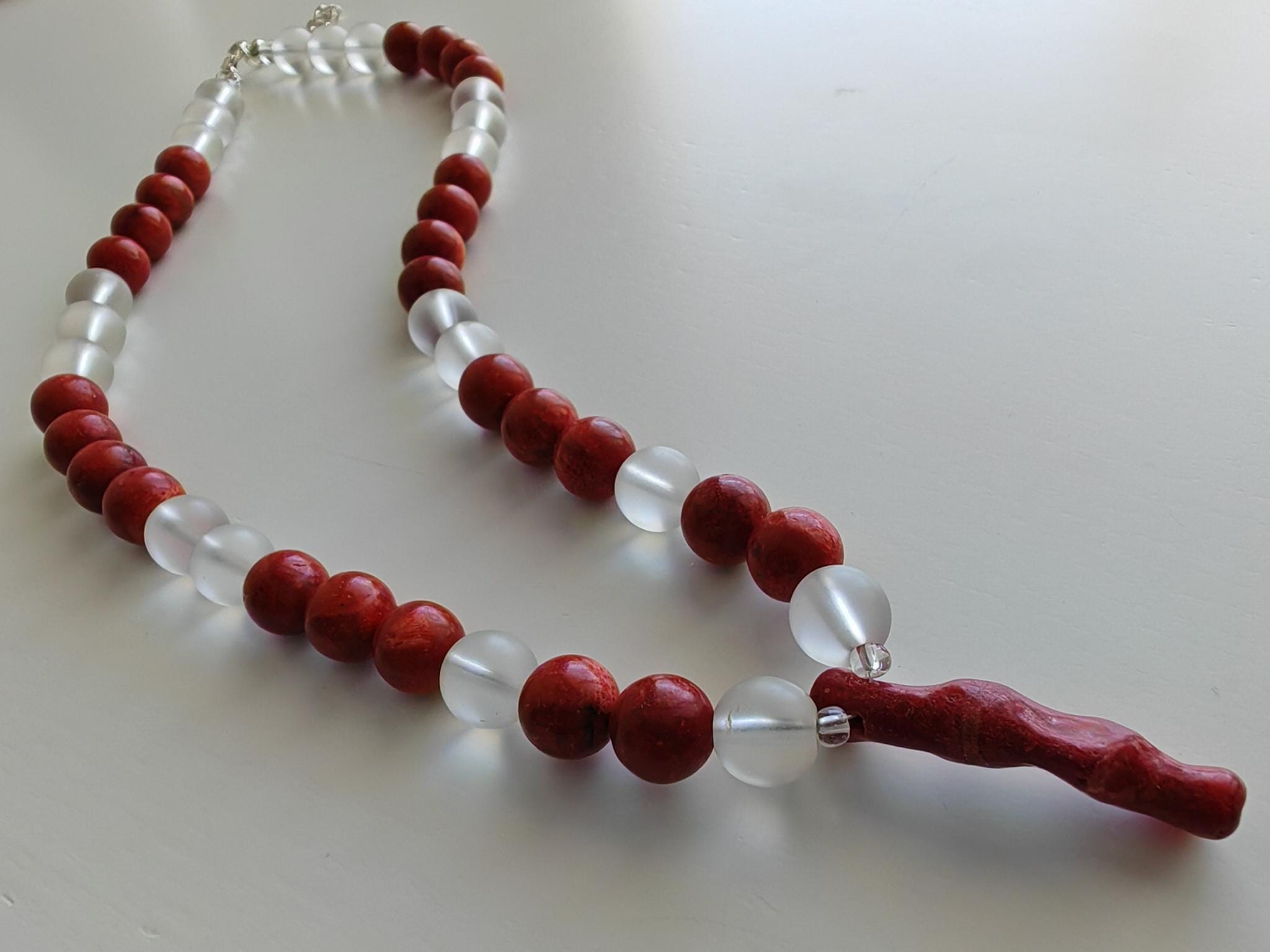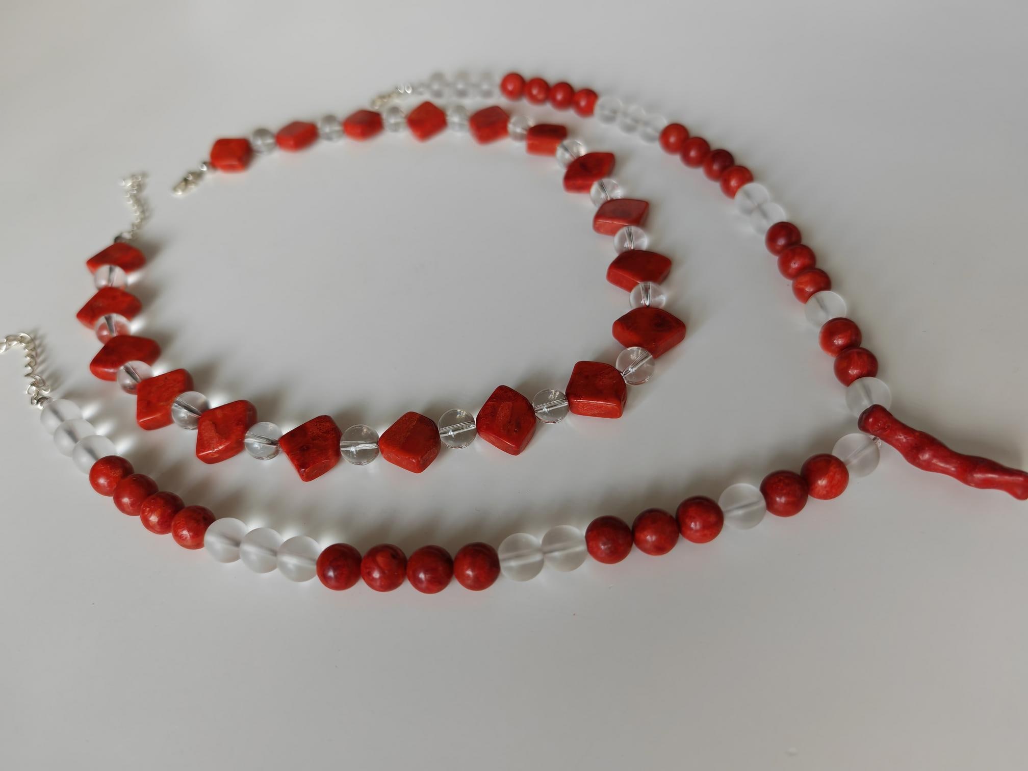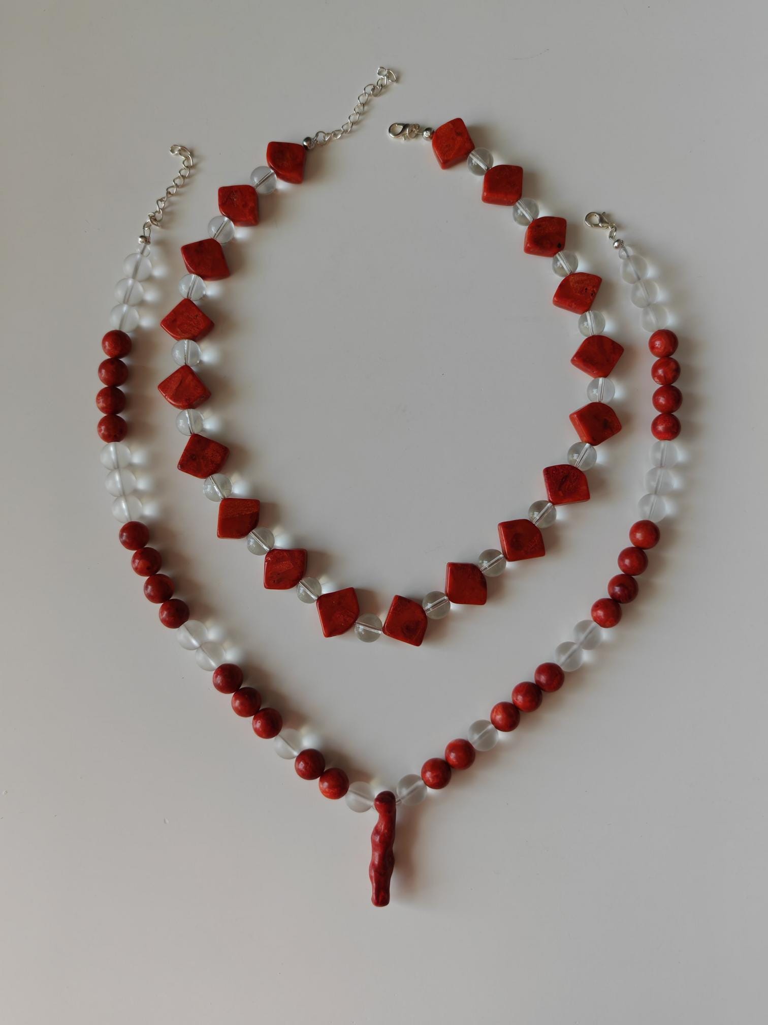 Handmade necklaces made of foam coral and rock crystal. Two necklaces are available.