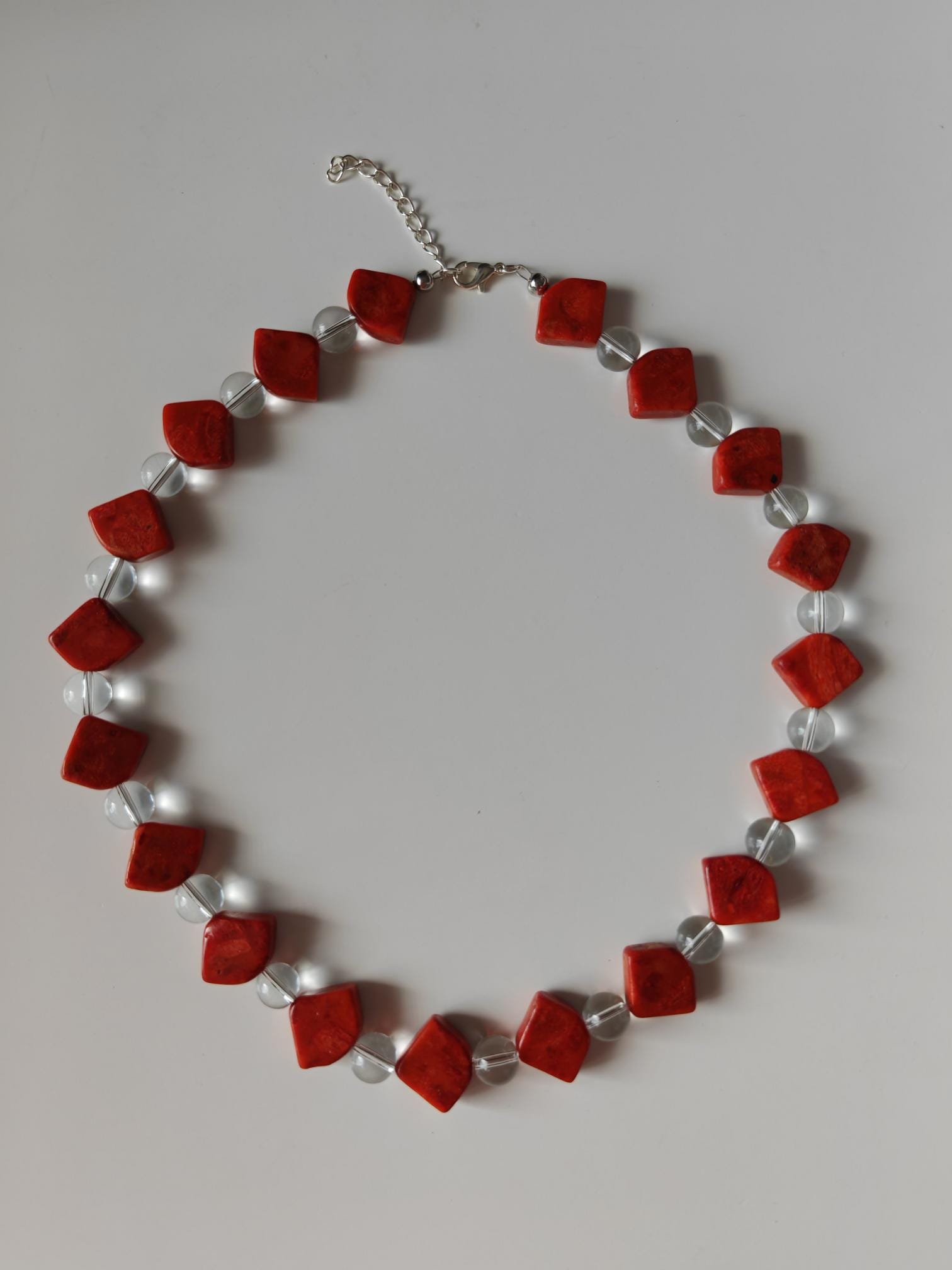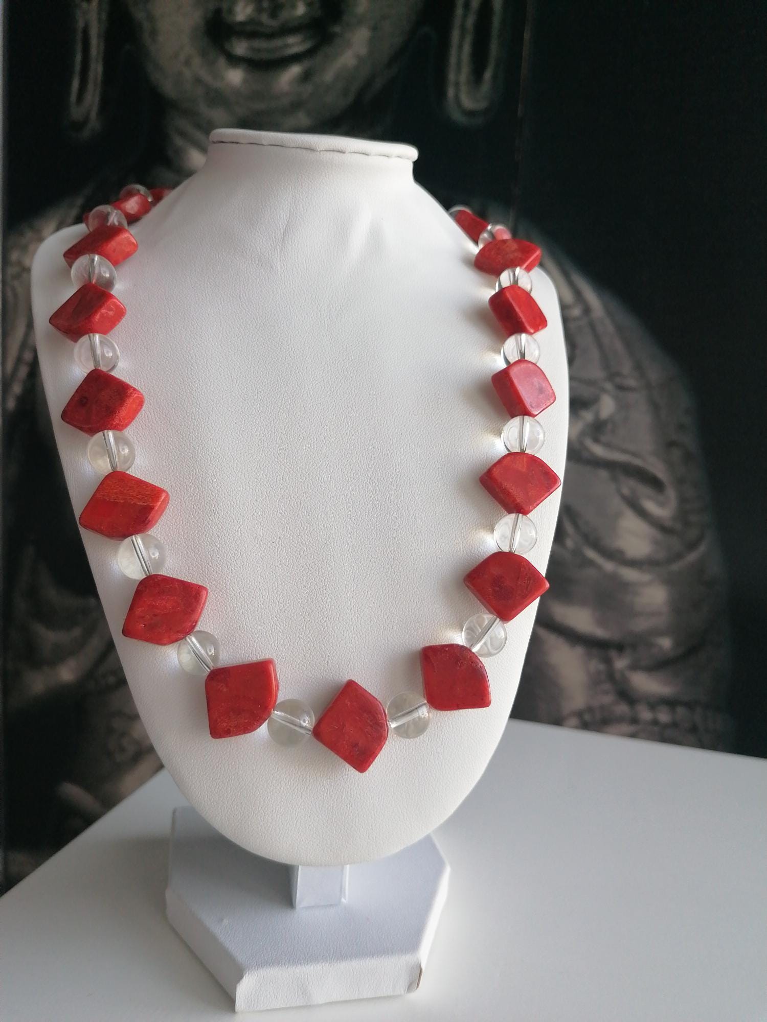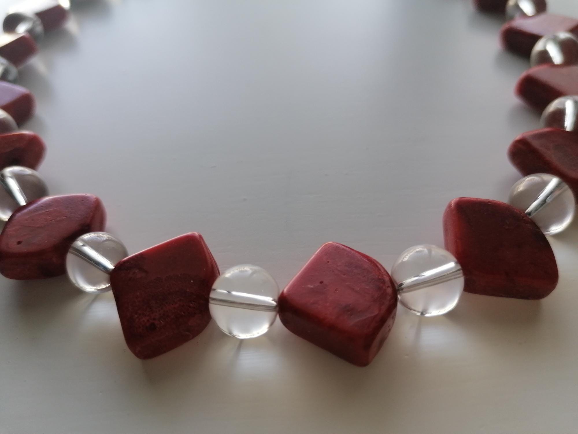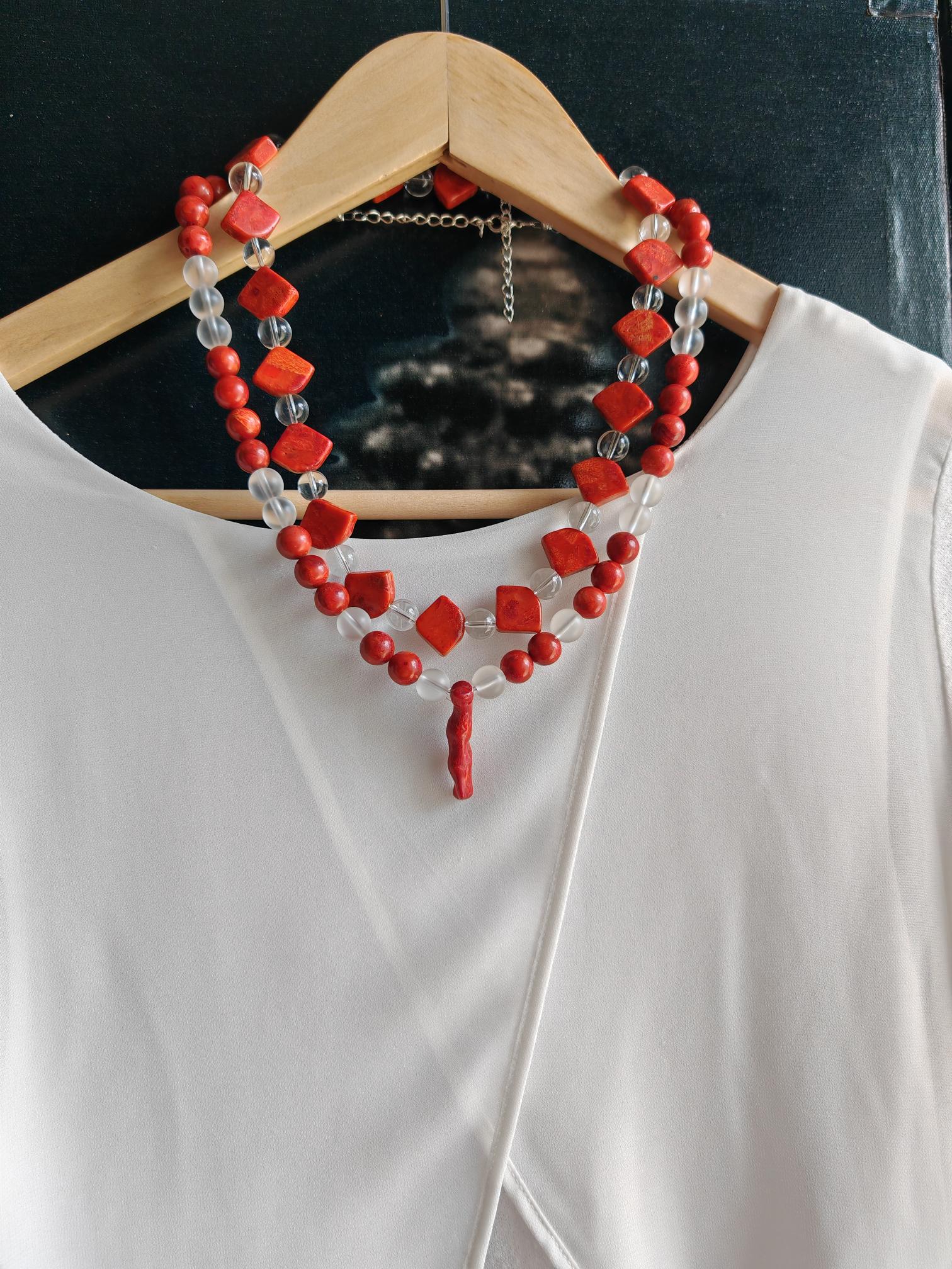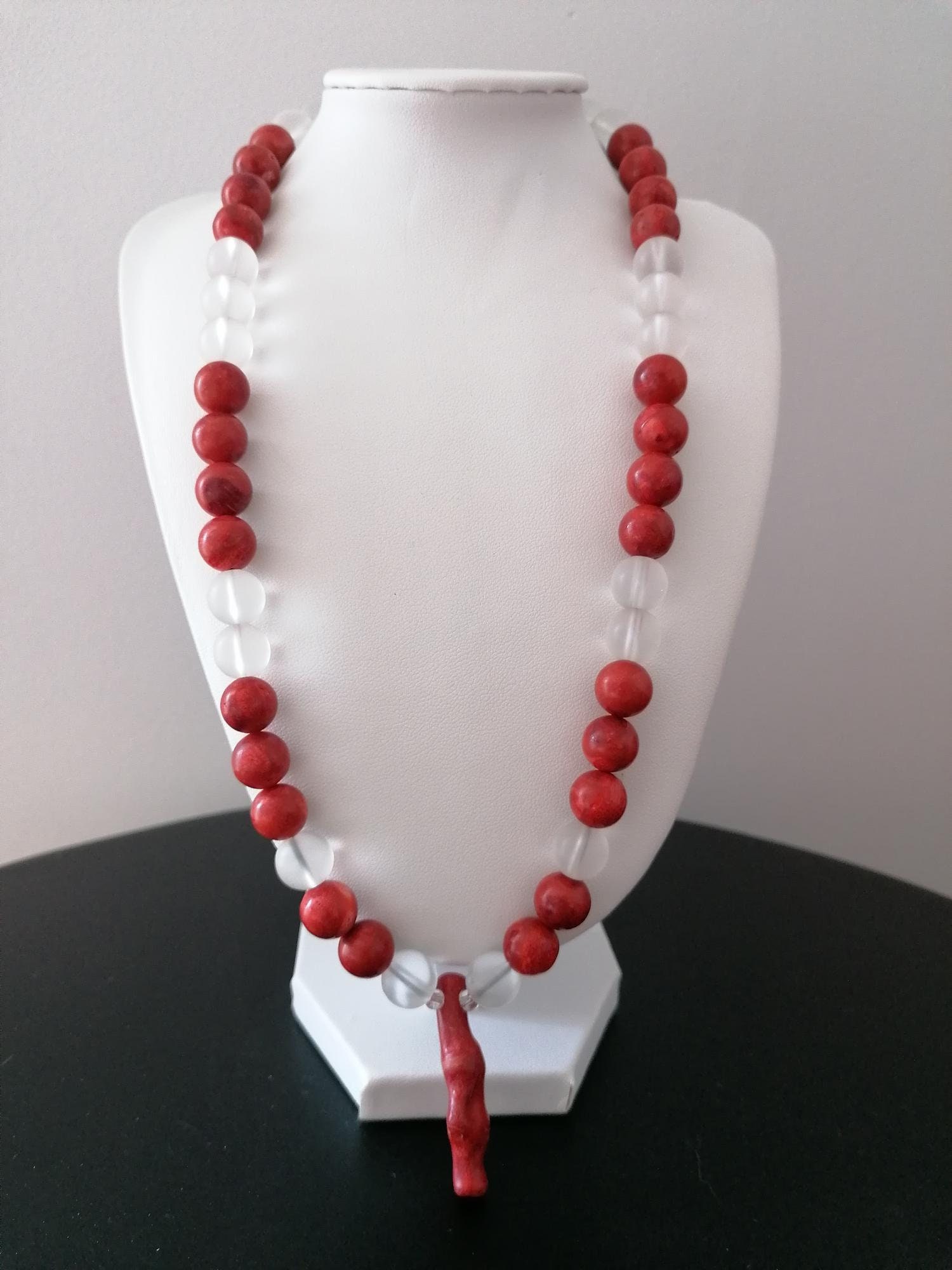 Handmade necklaces made of foam coral and rock crystal. Two necklaces are available.