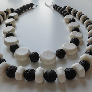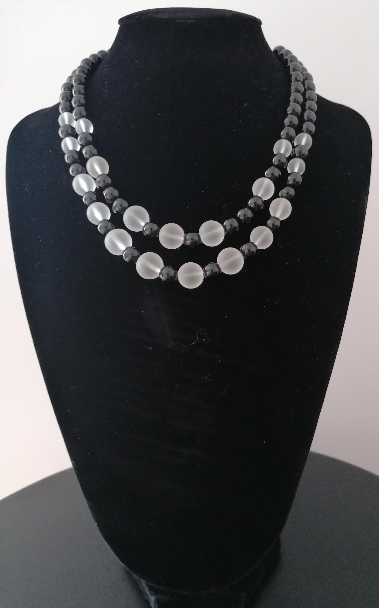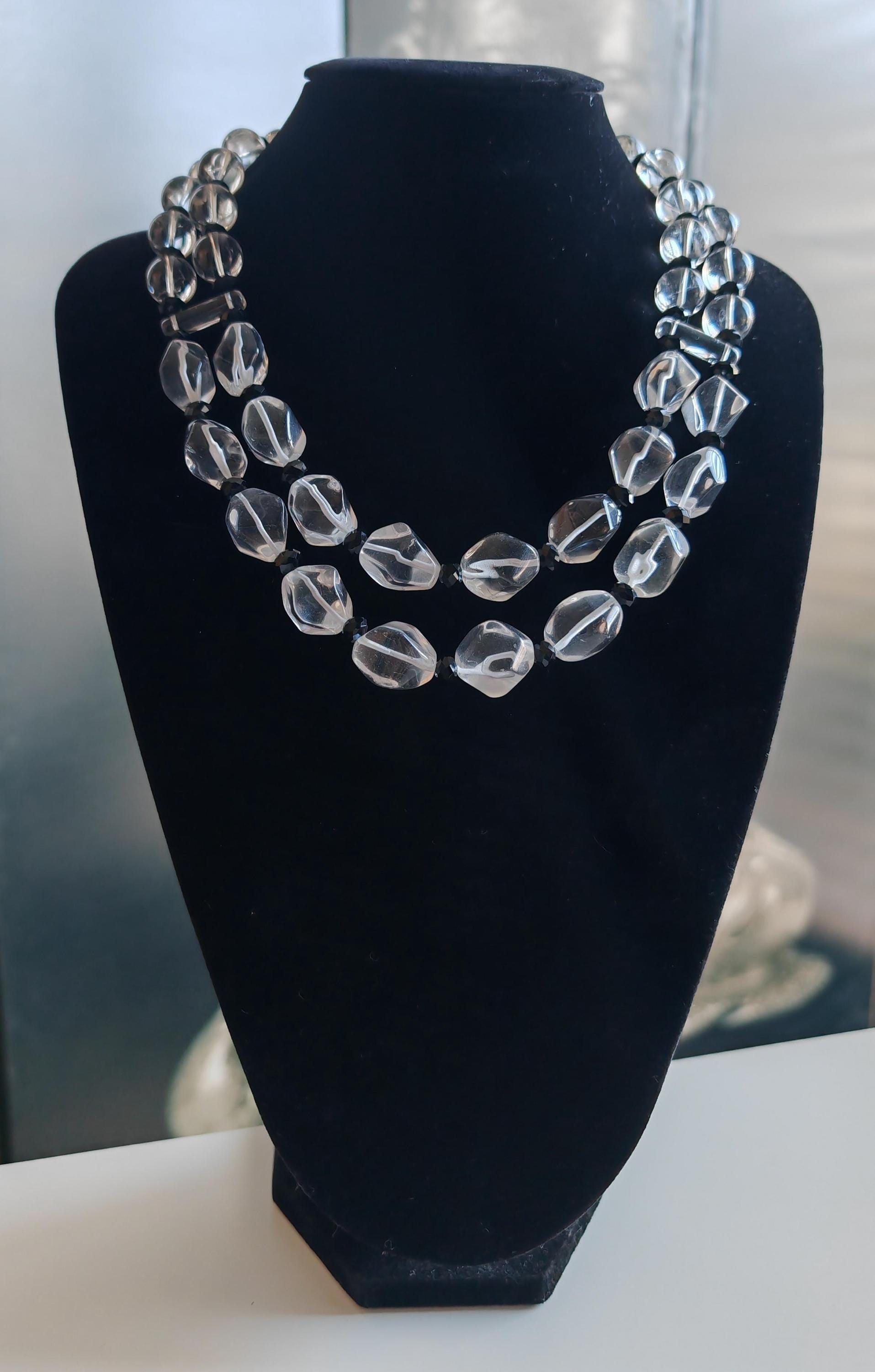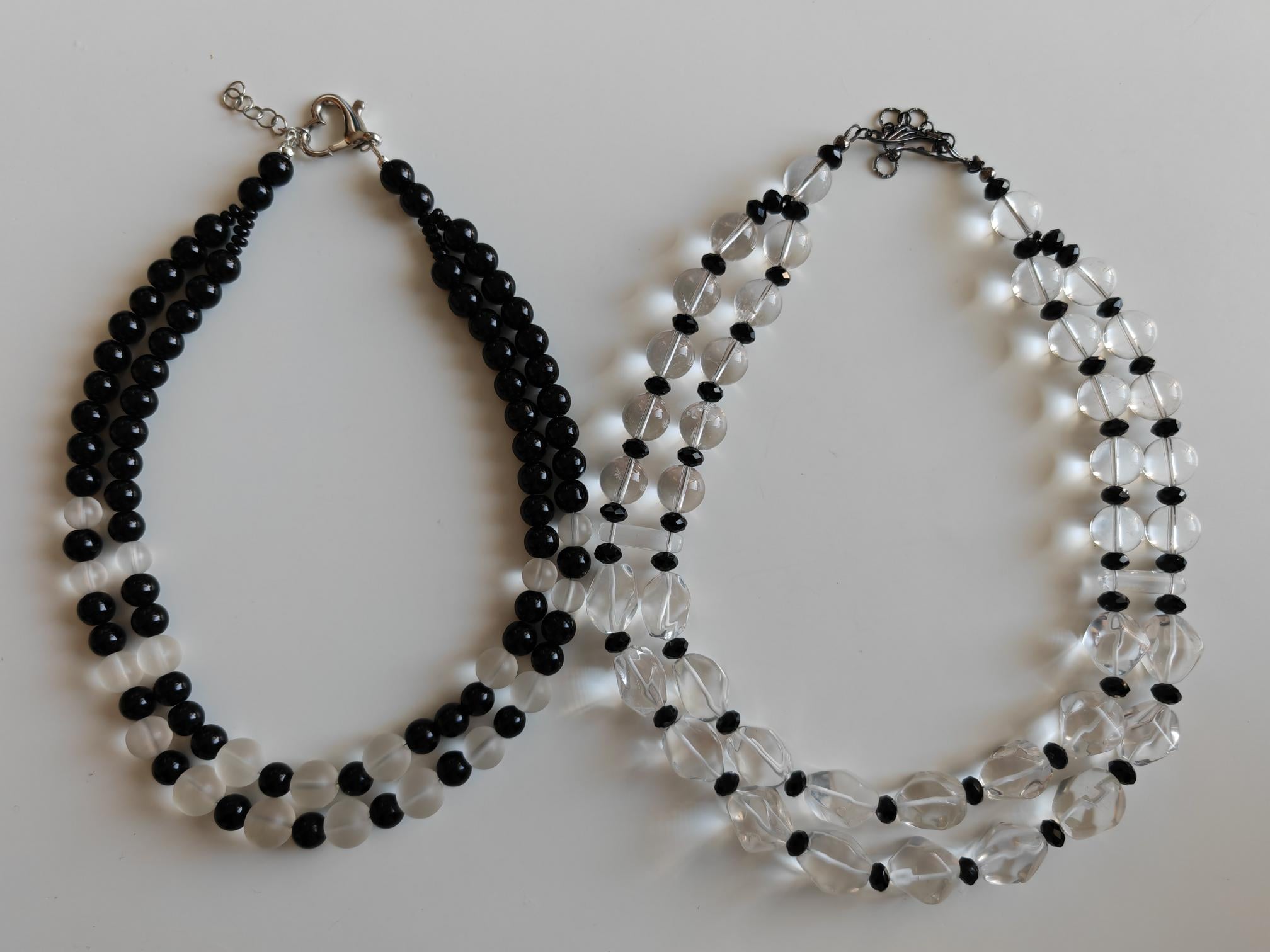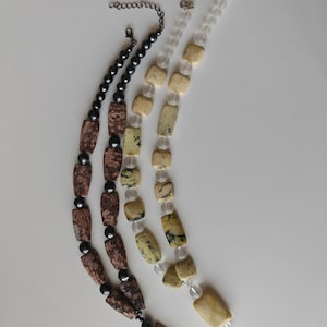 Handmade double-strand rock crystal necklaces. Two statement necklaces are available.