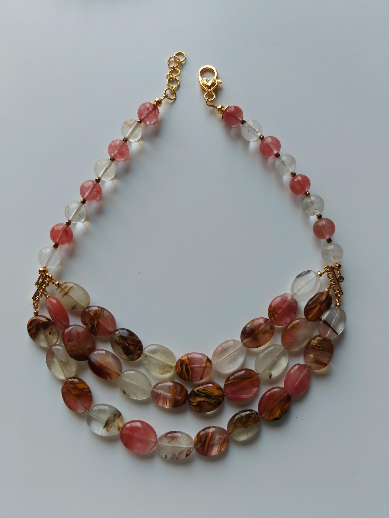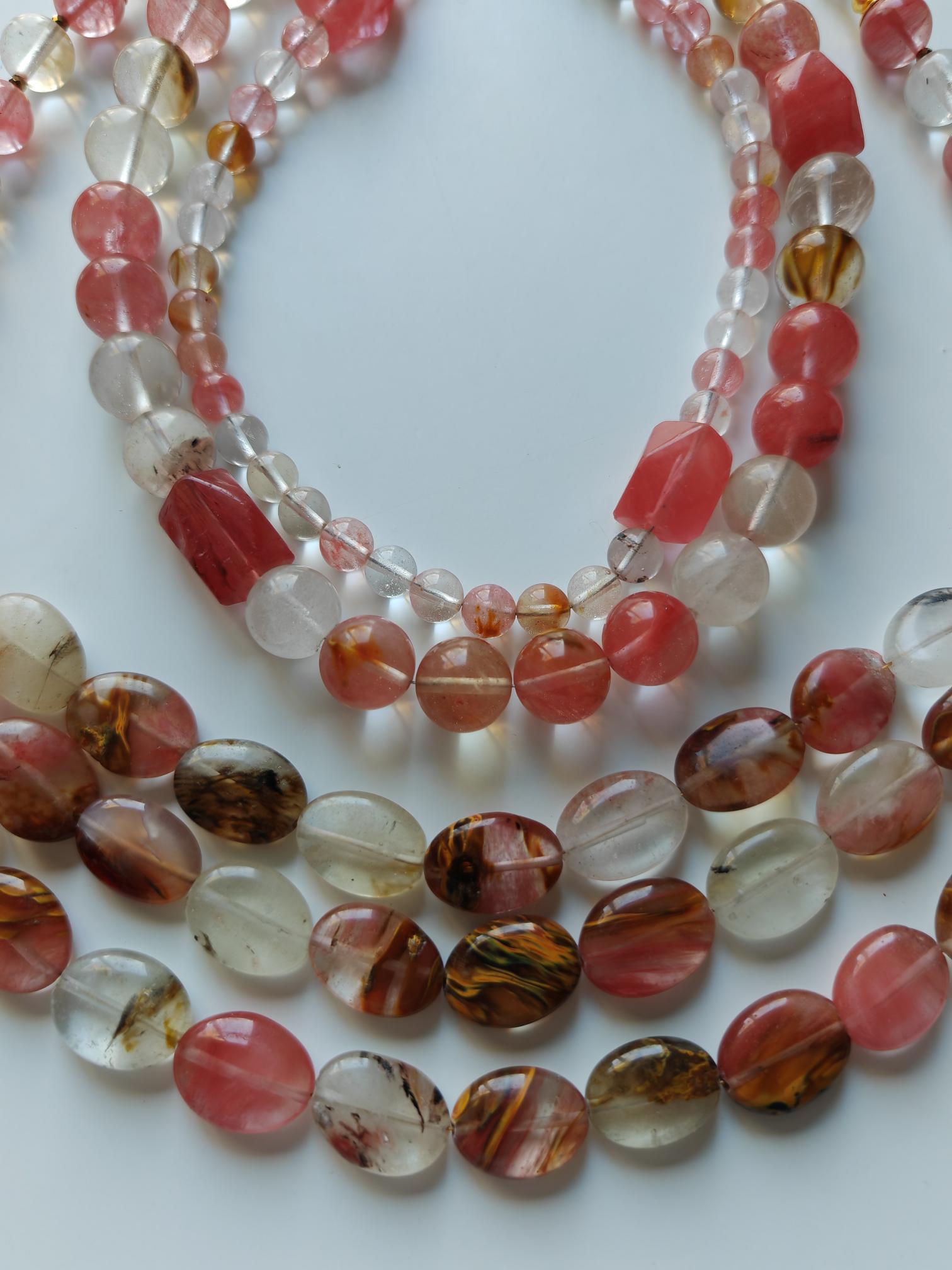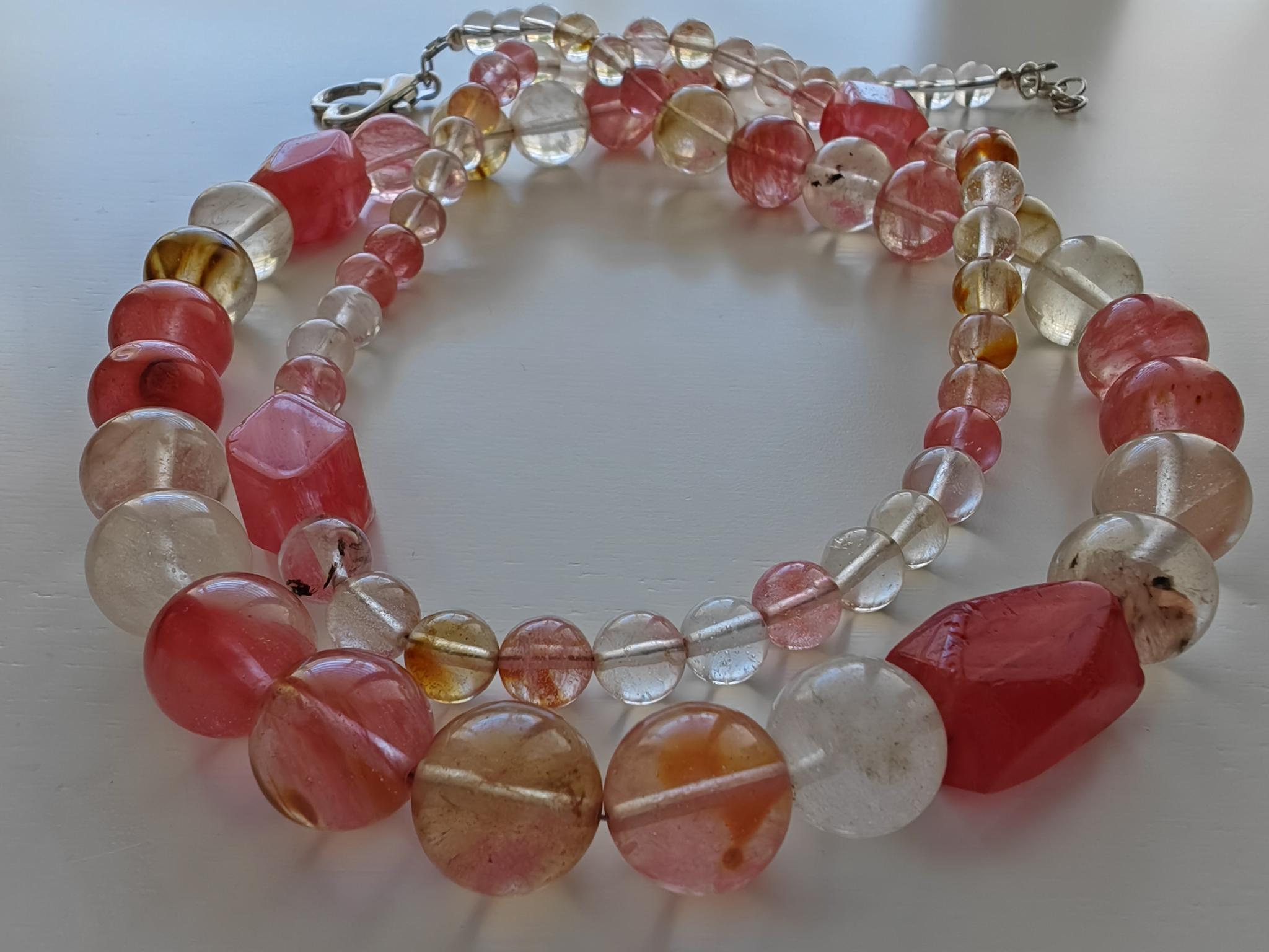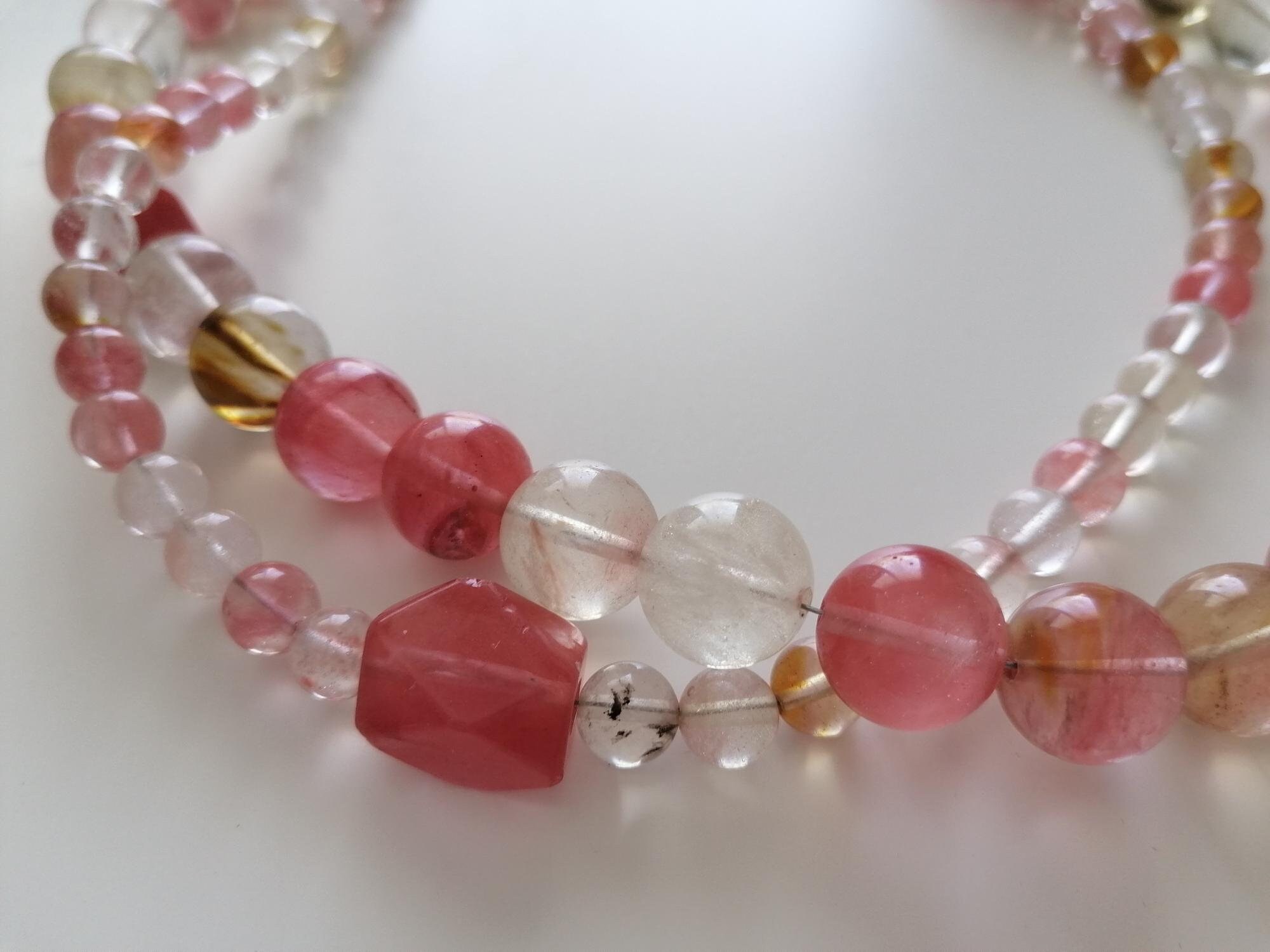 Handmade multicolored necklaces made of cherry quartz. Two necklaces are available.