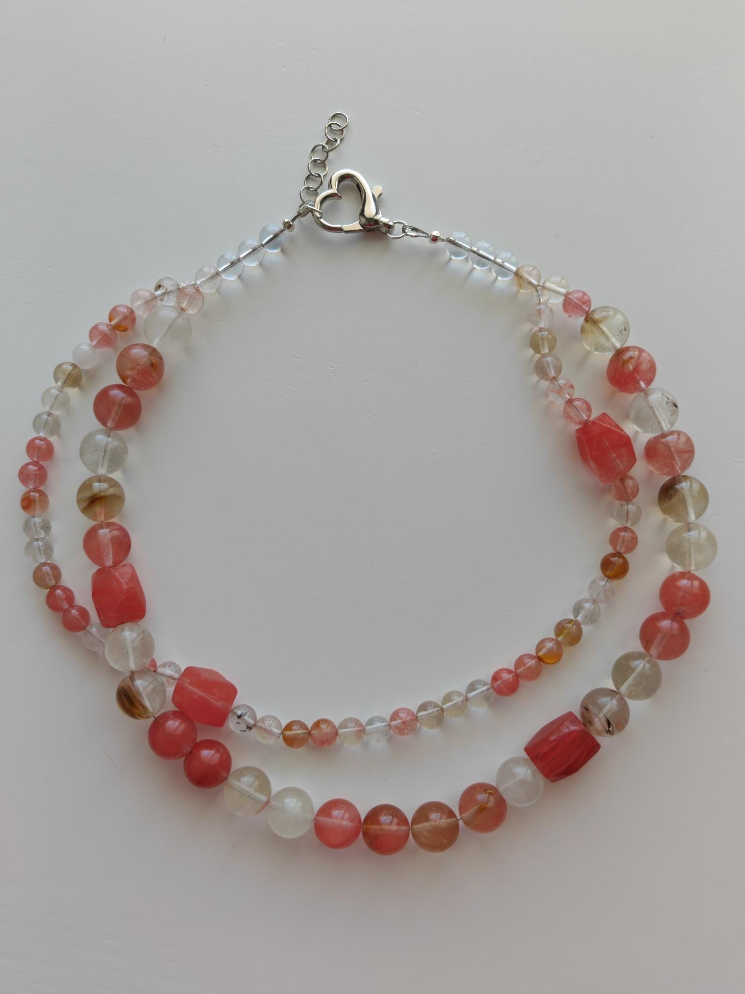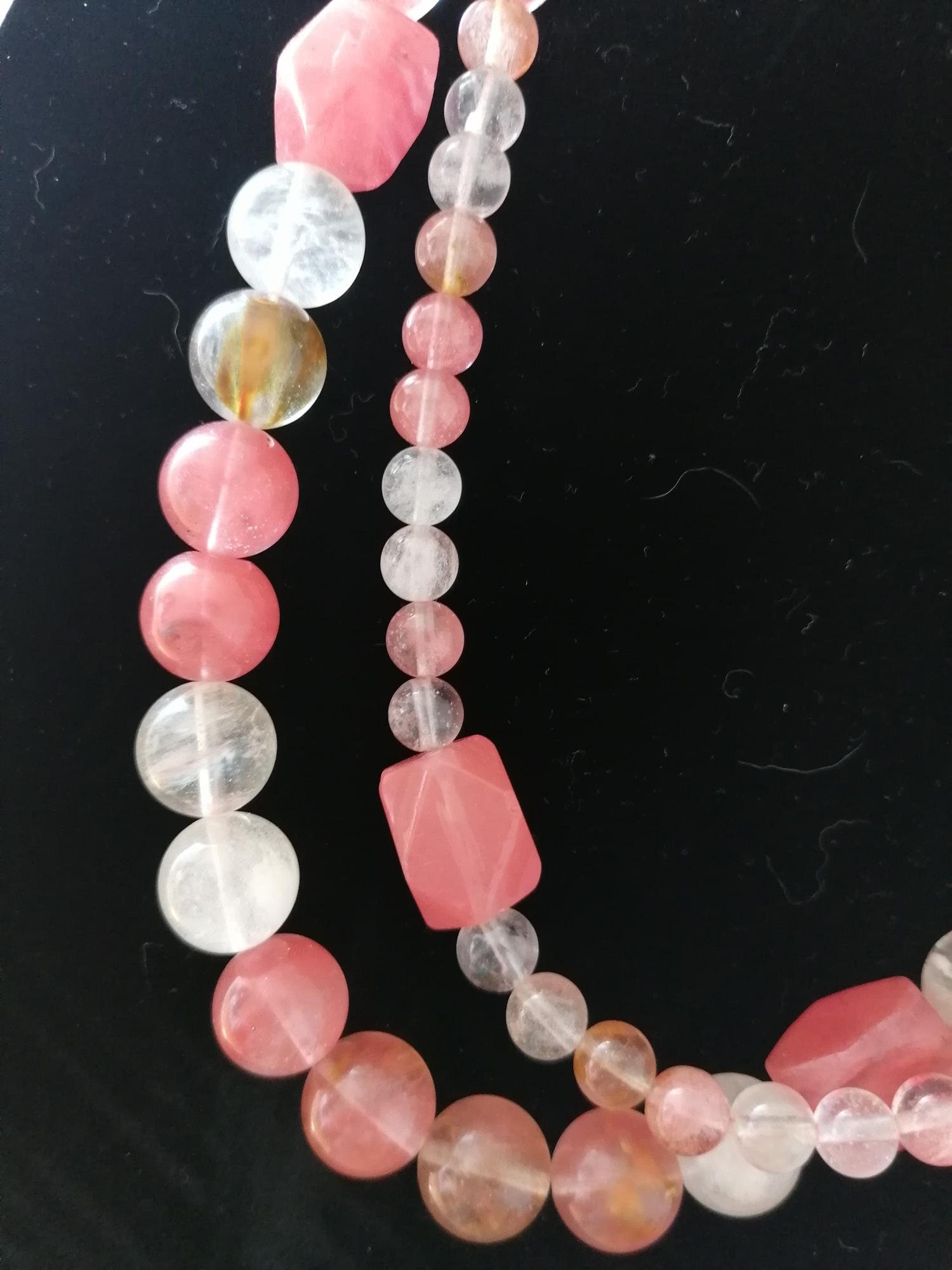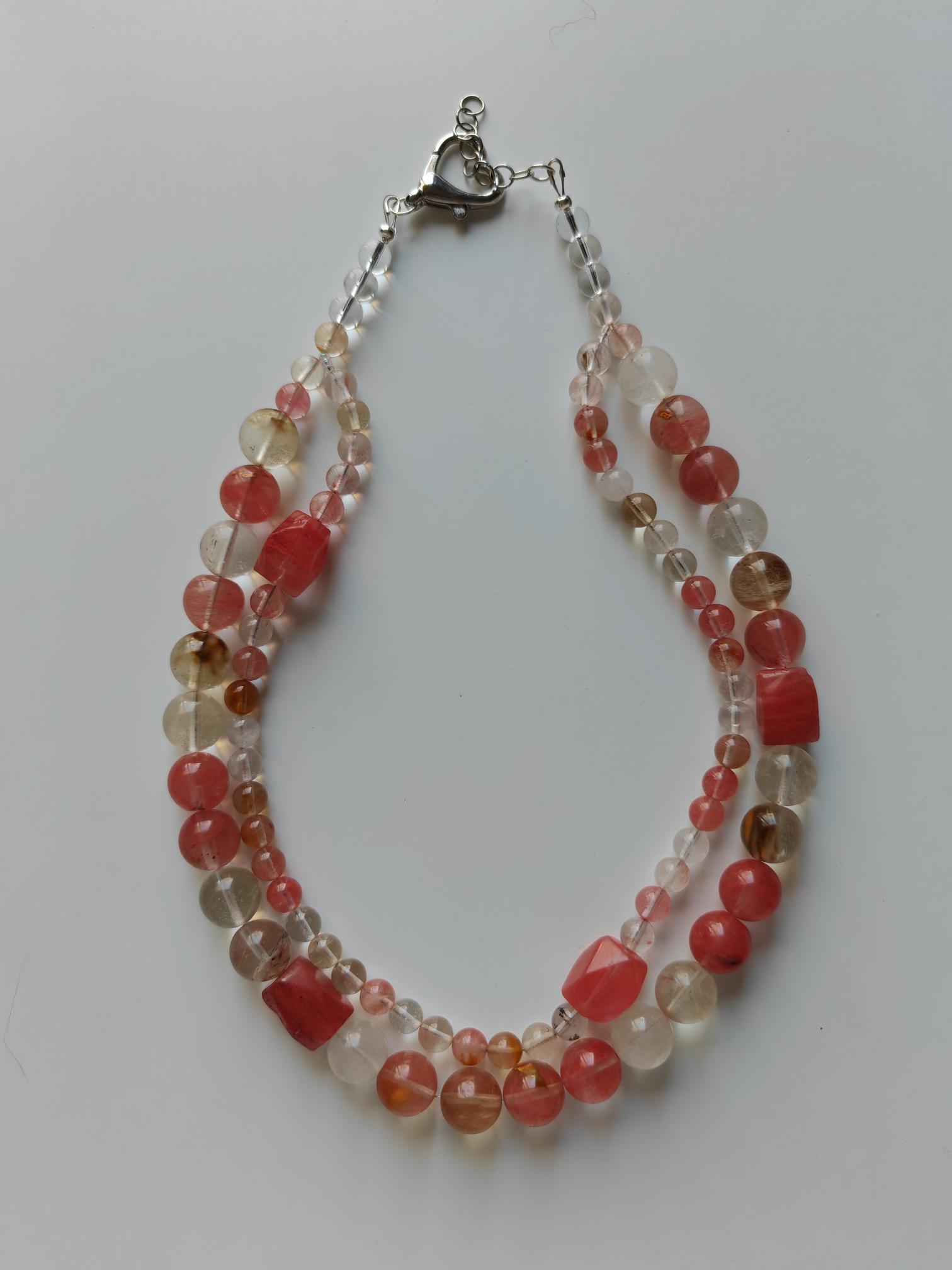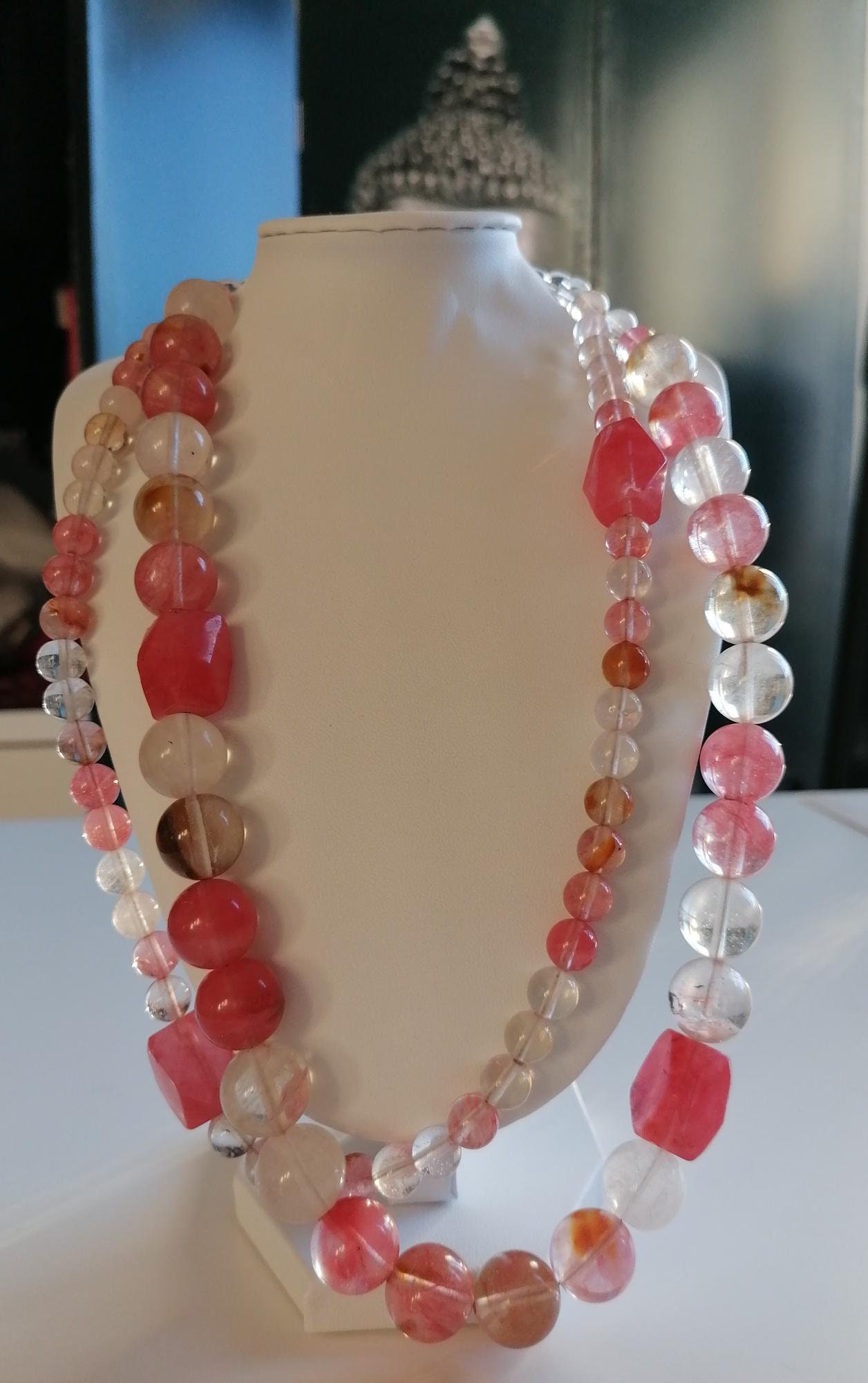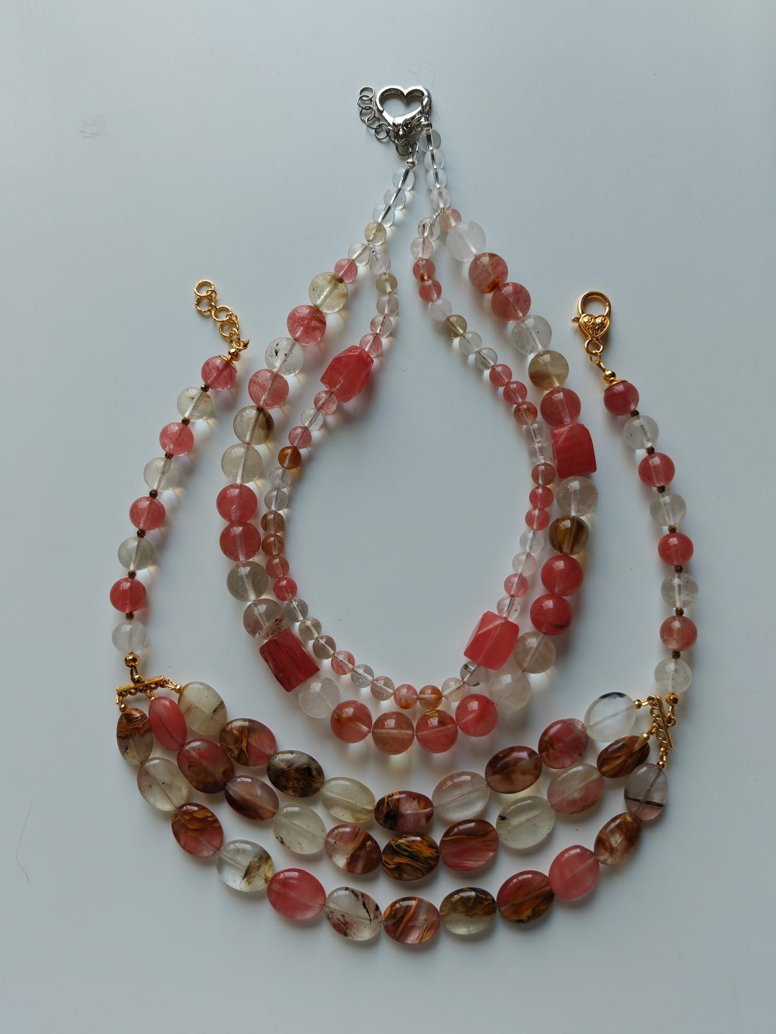 Handmade multicolored necklaces made of cherry quartz. Two necklaces are available.