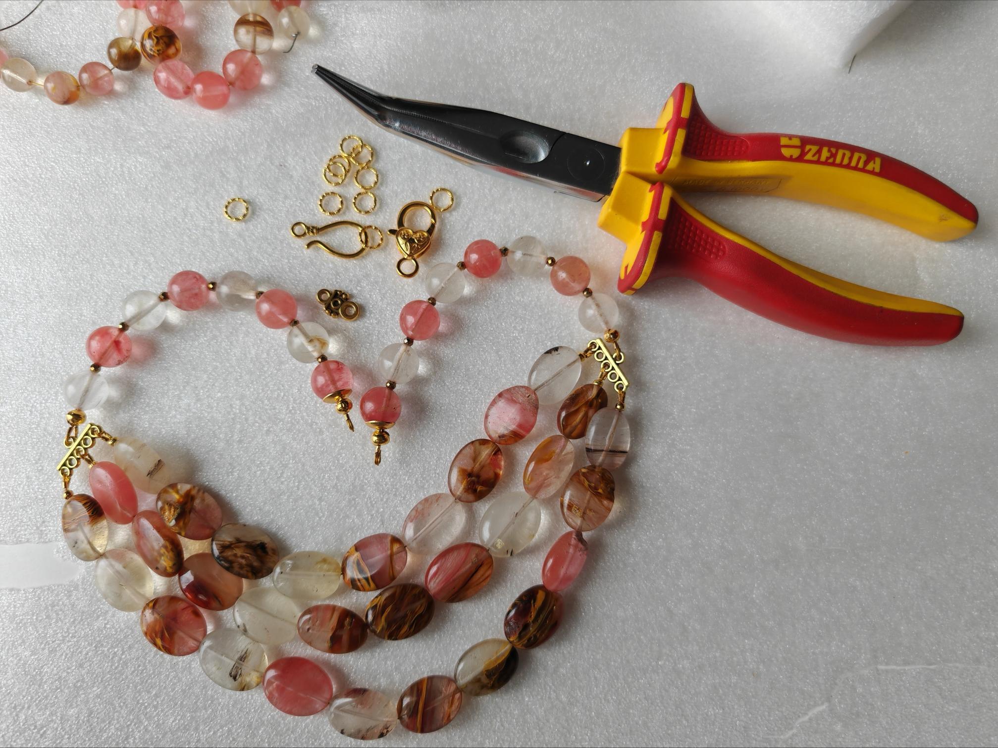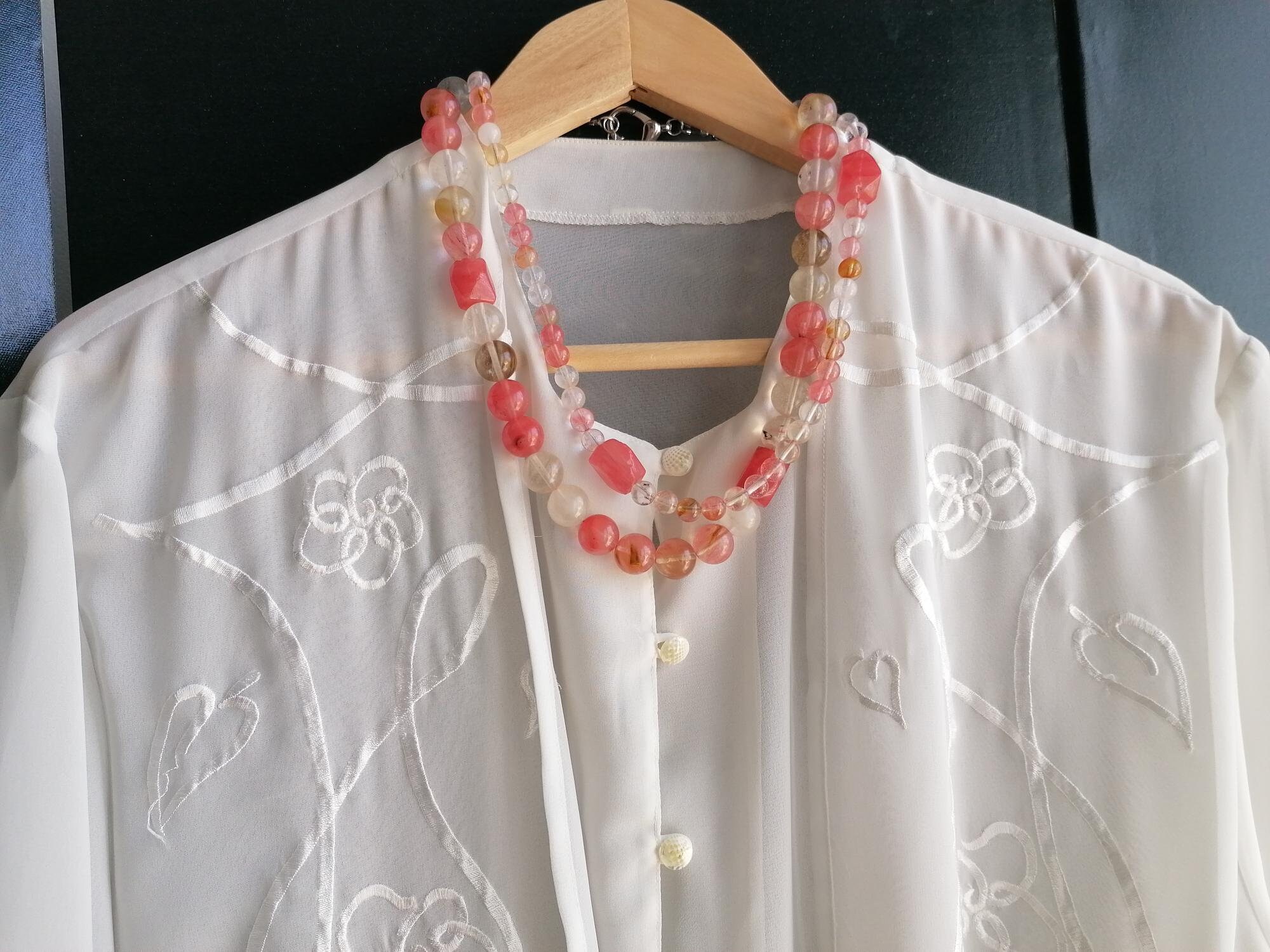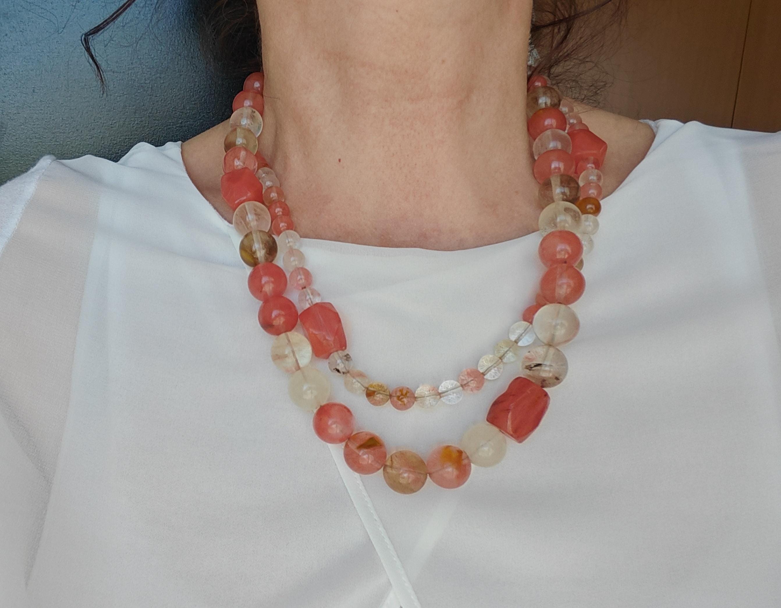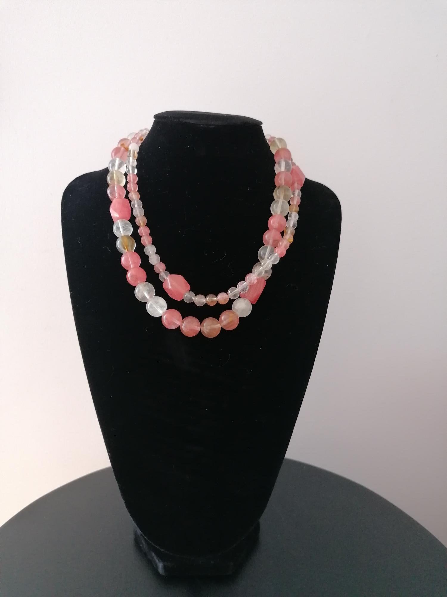 Handmade multicolored necklaces made of cherry quartz. Two necklaces are available.