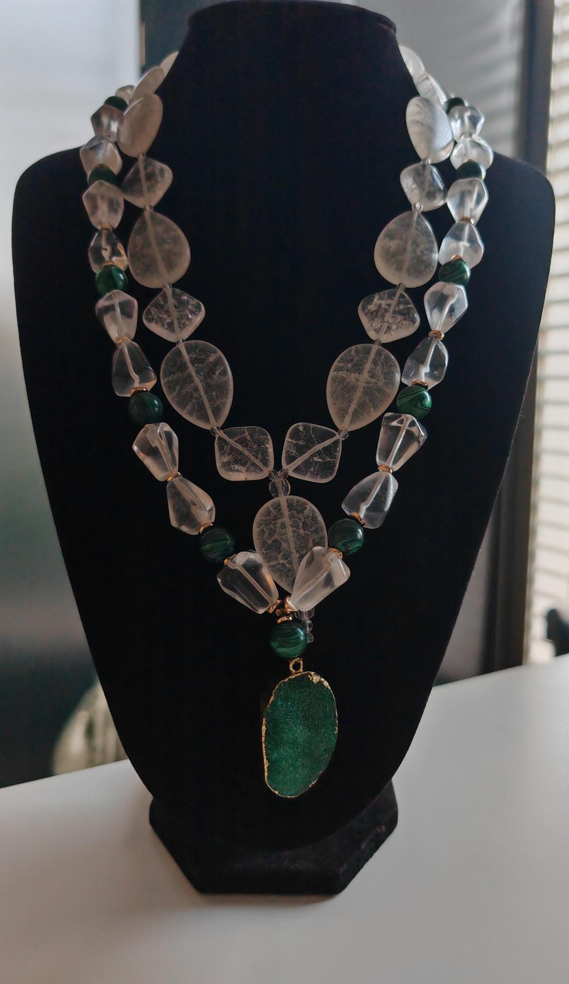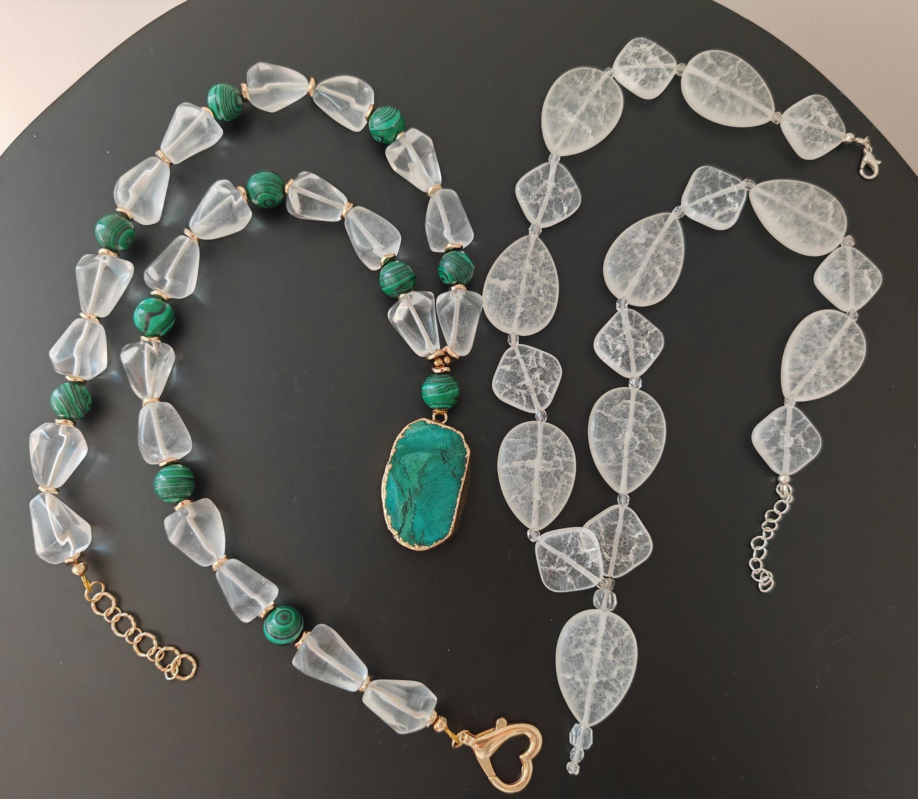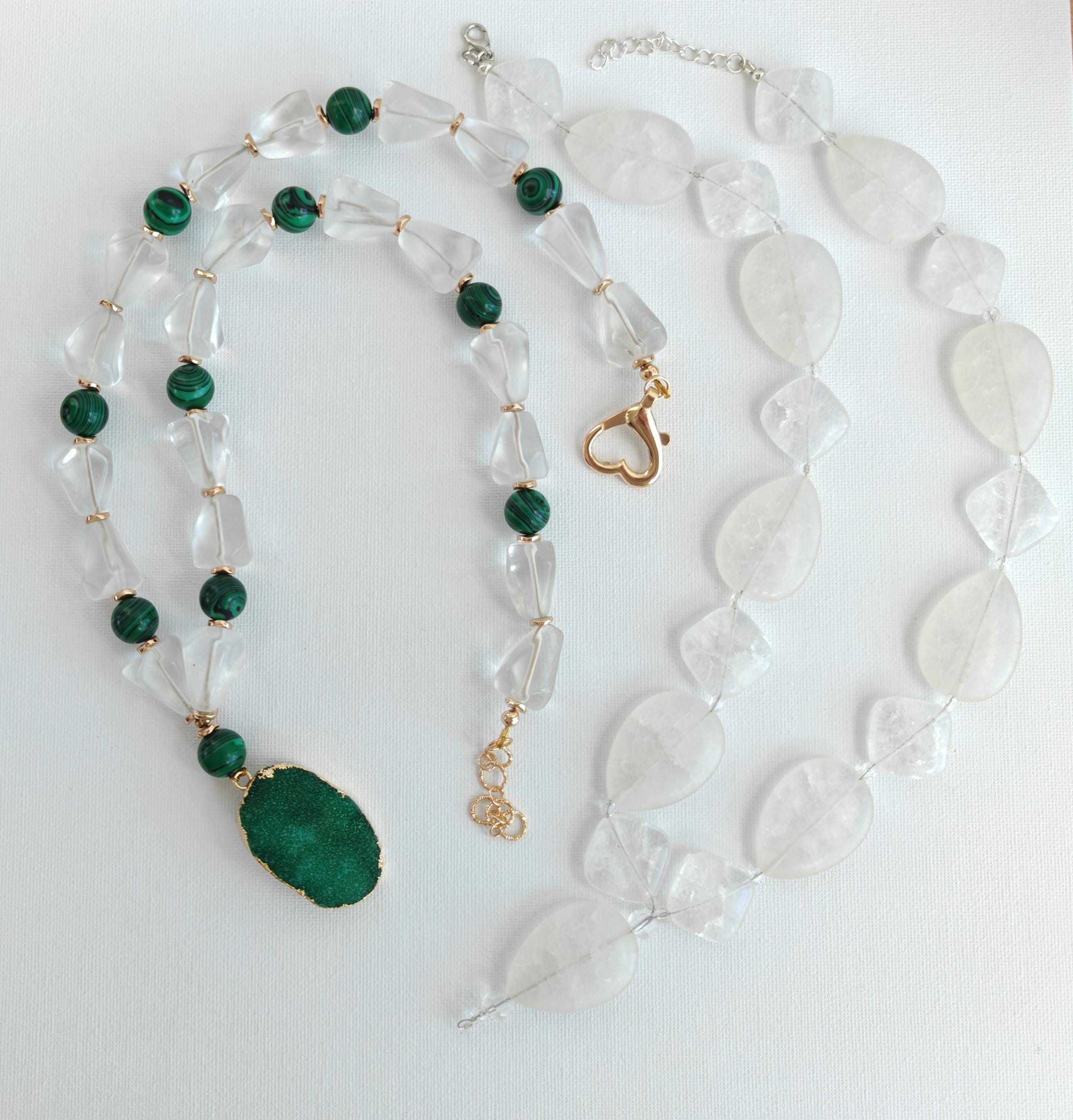 Handmade elegant statement necklaces with rock crystal pendants. Two necklaces are available.