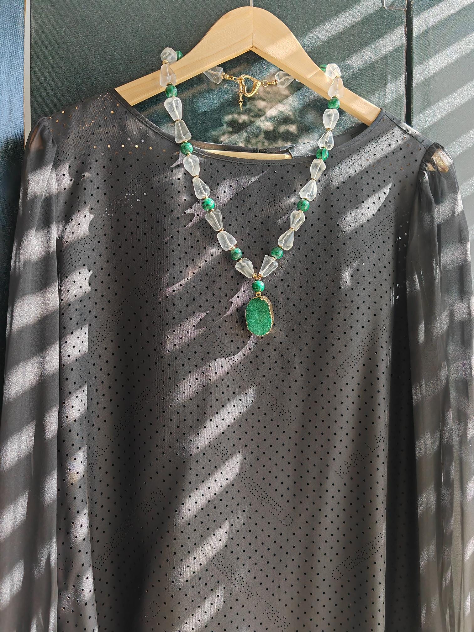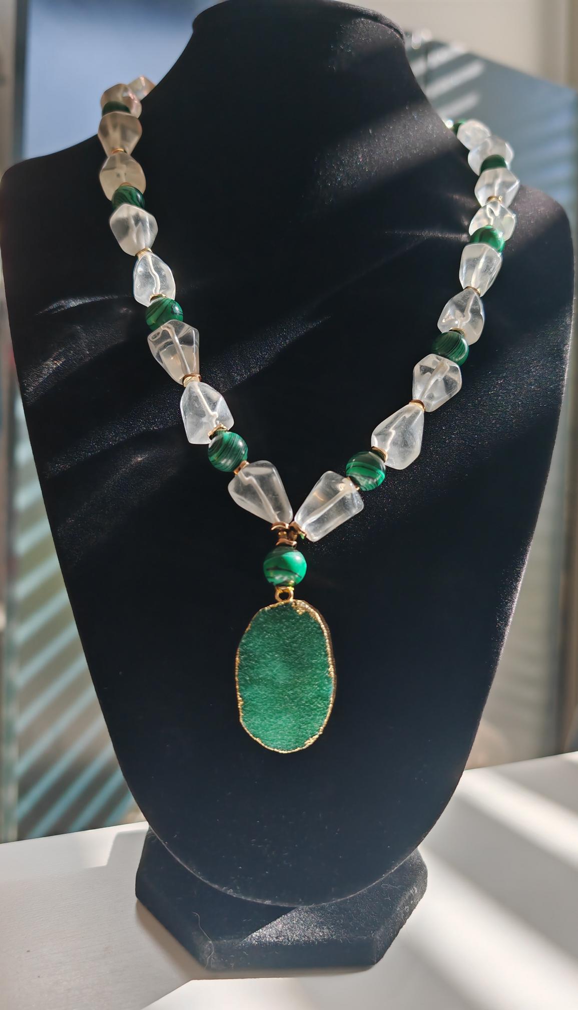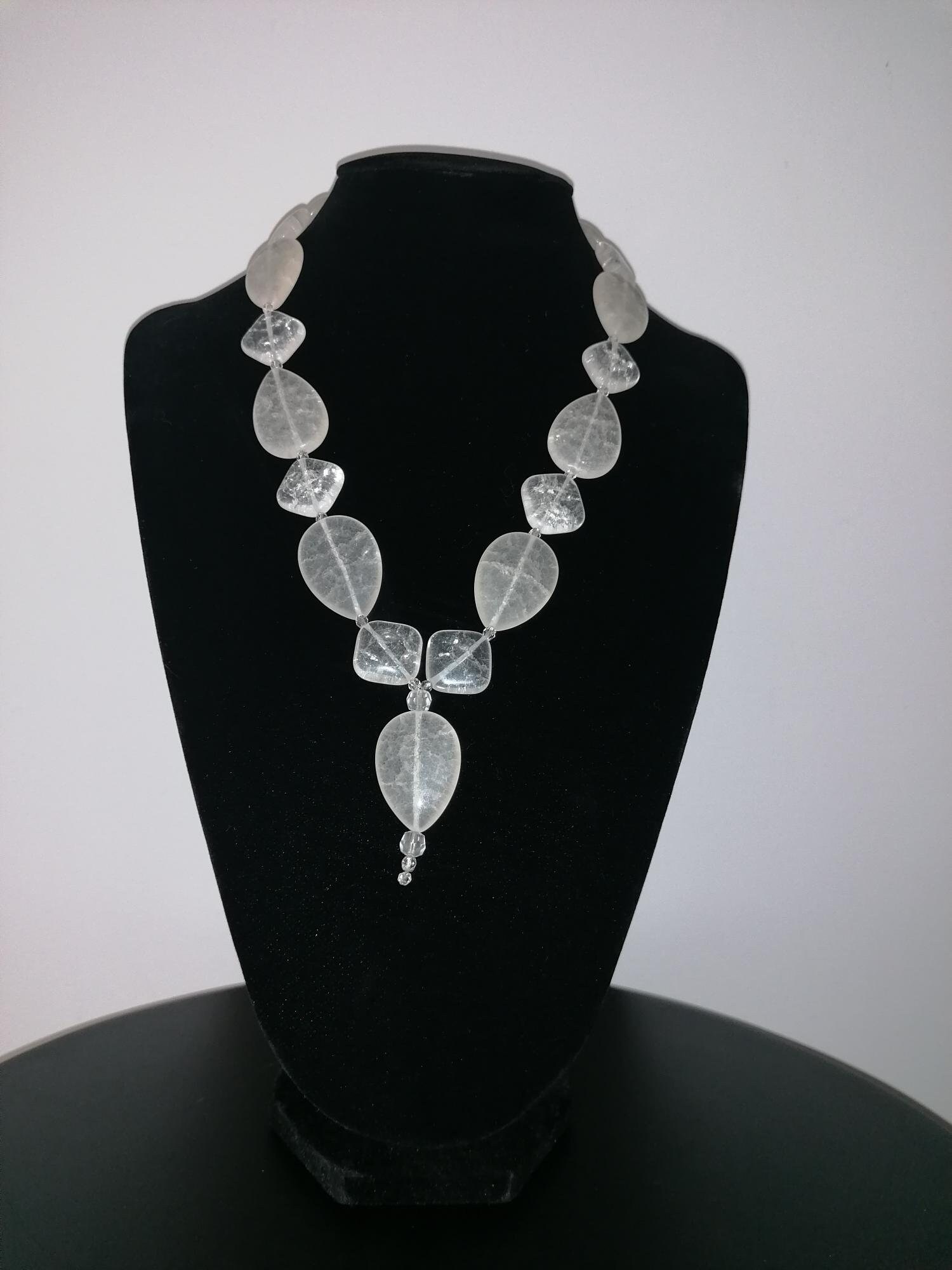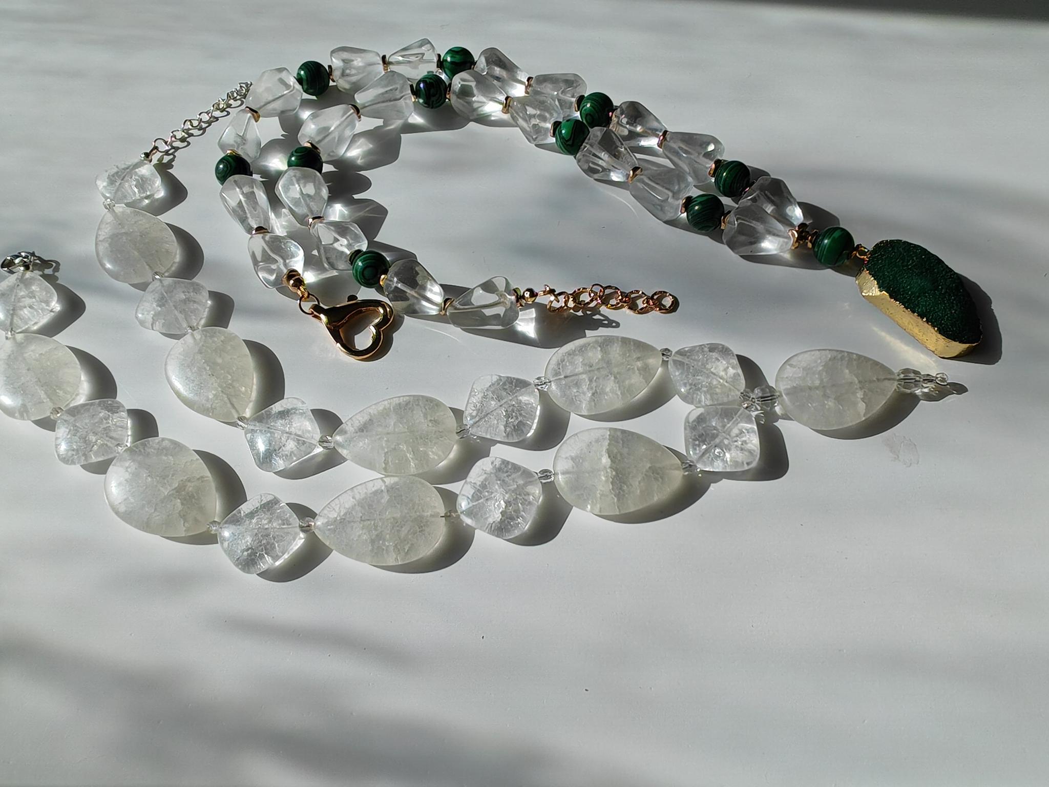 Handmade elegant statement necklaces with rock crystal pendants. Two necklaces are available.