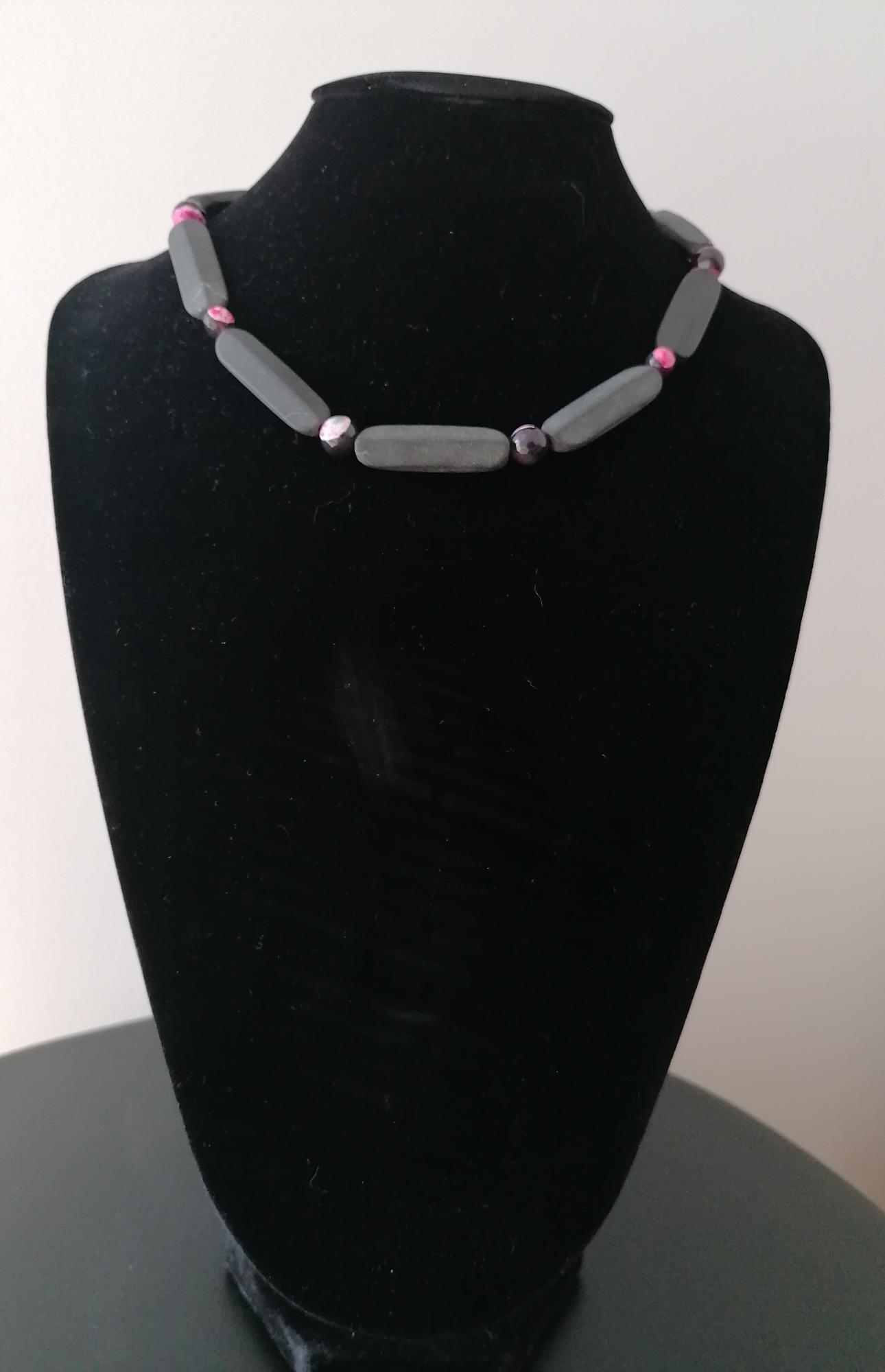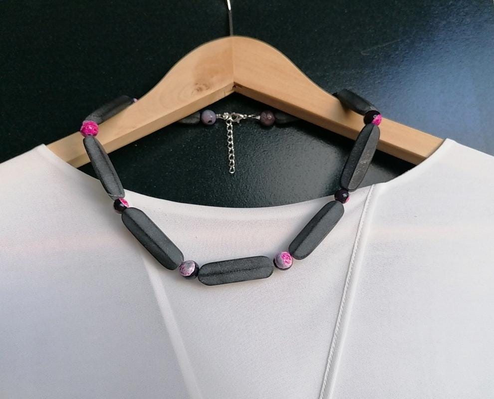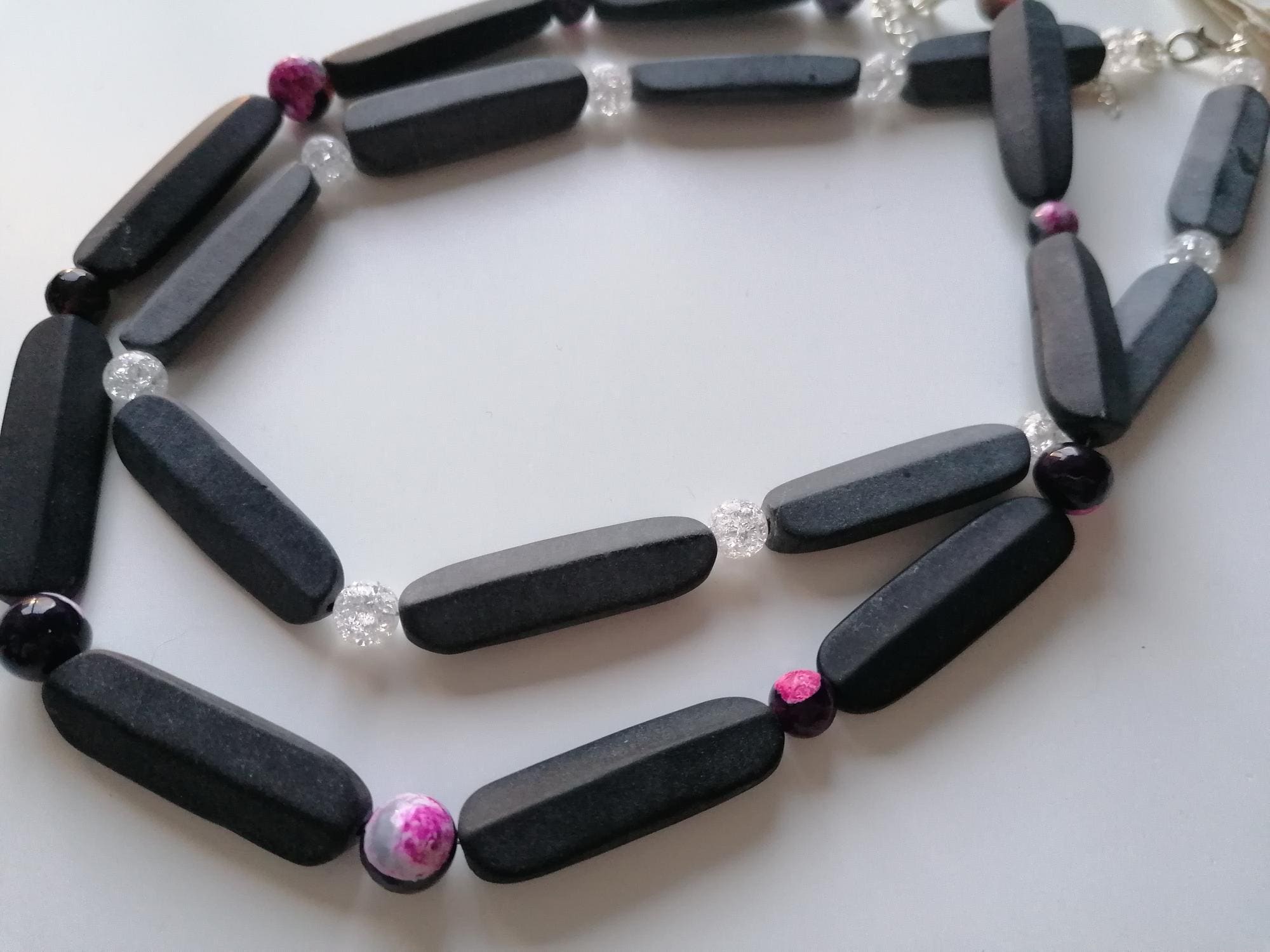Handmade necklace made of onyx in black/anthracite with agate in black/pink or chain with onyx and cracked rock crystal to choose from.