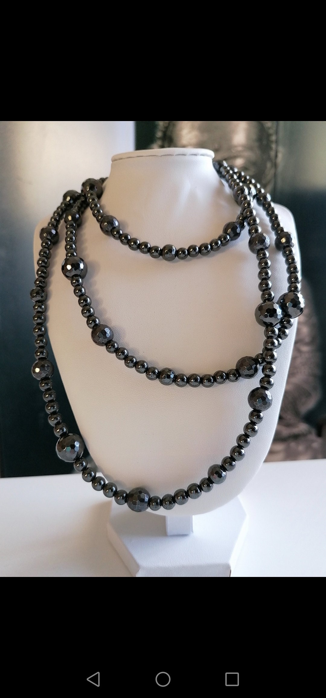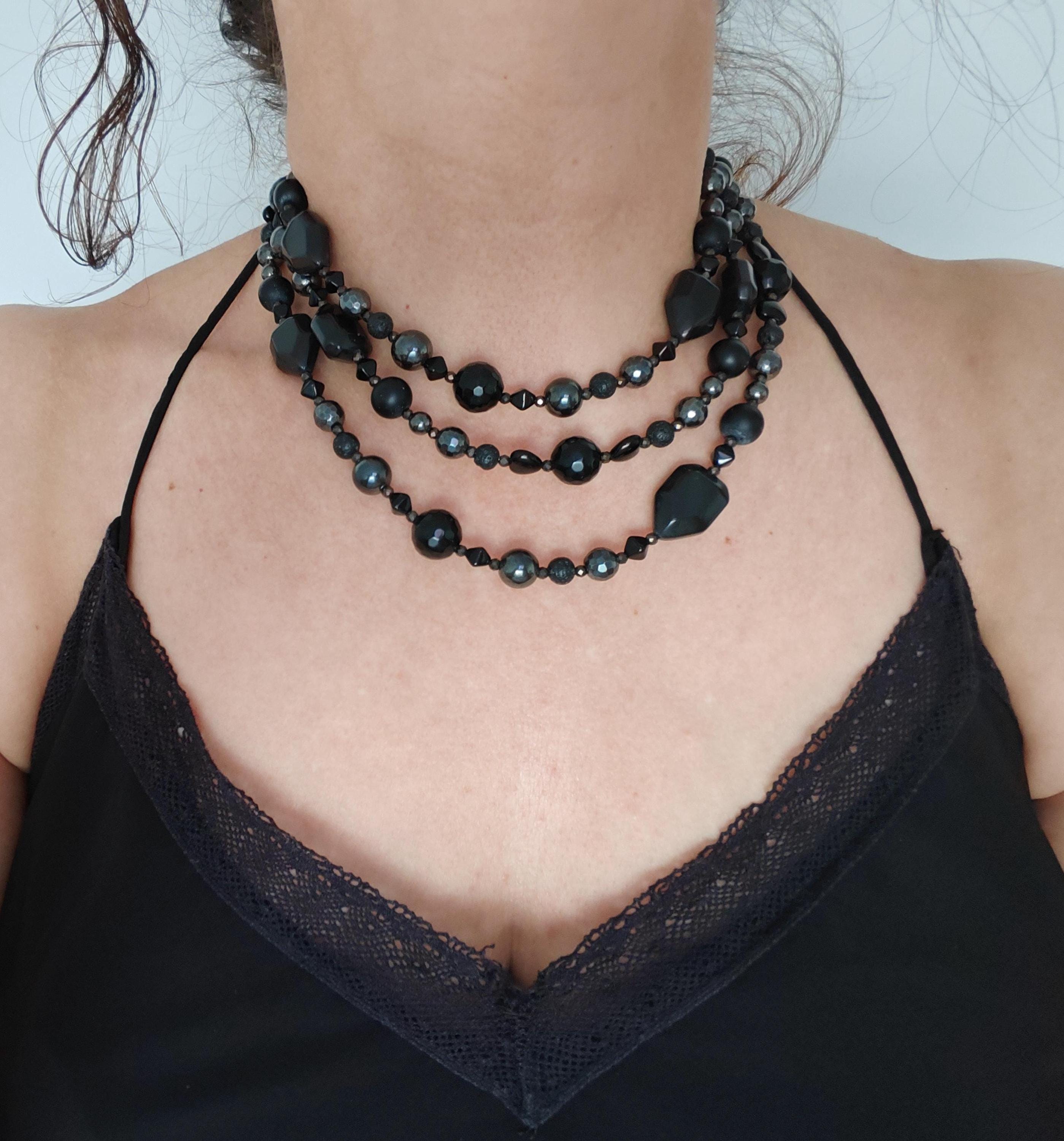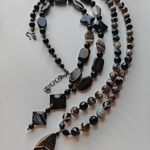 Handmade long gemstone necklaces in black. Two necklaces are available.