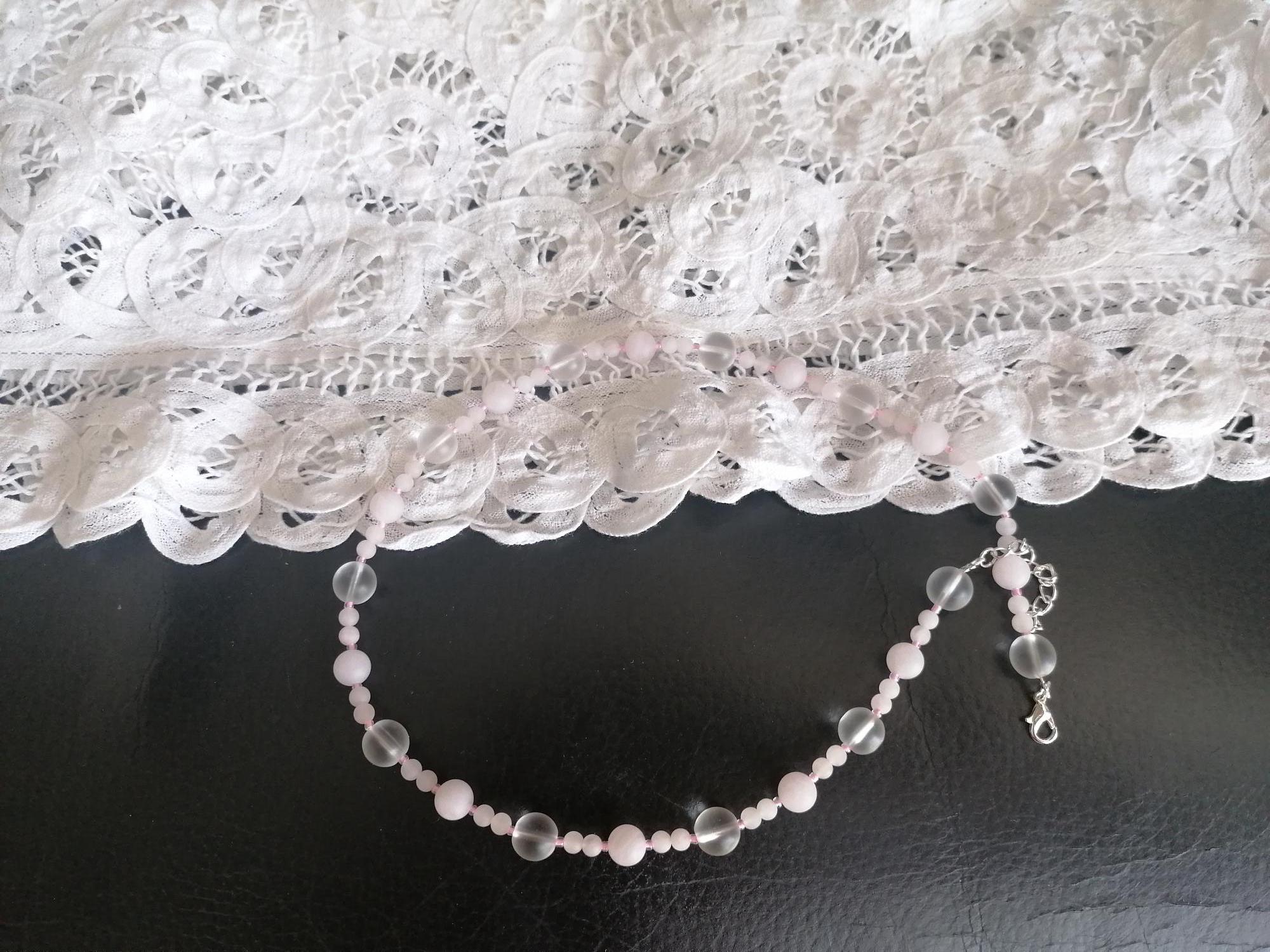 Handmade rose/white gemstone necklace, necklace with rose quartz and rock crystal, rose quartz necklace, rose quartz jewelry, delicate necklace in pink