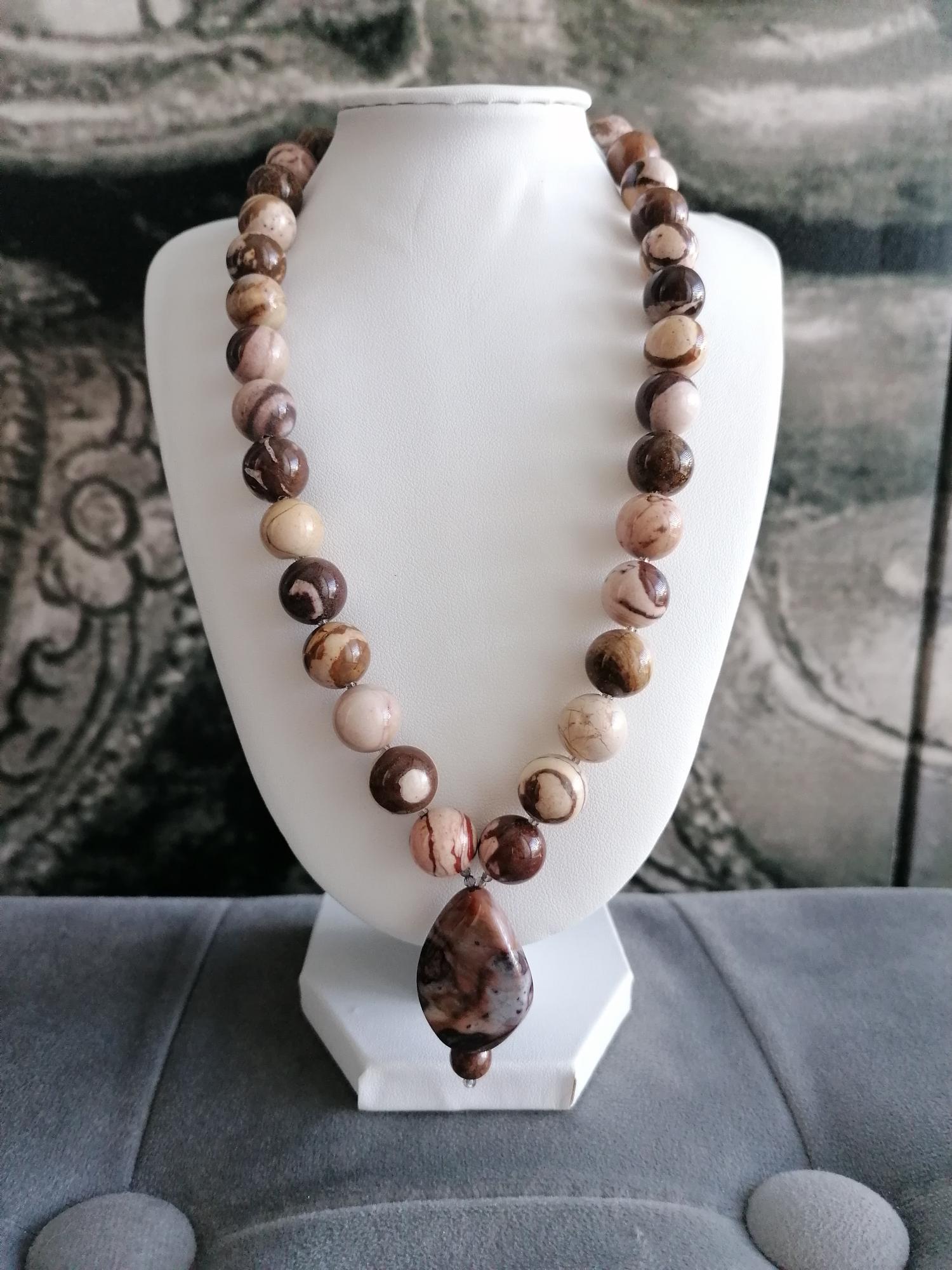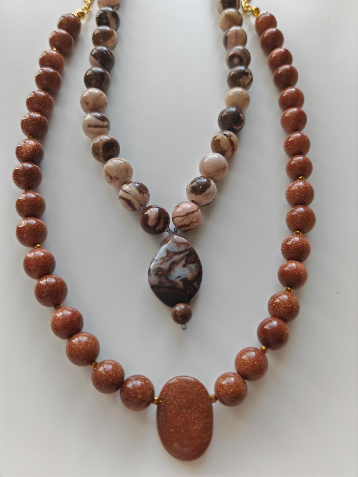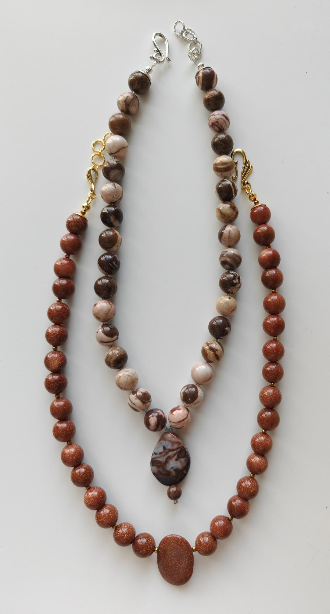 Handgefertigte Ketten mit Anhänger in Braunen Tönen. Es gibt zwei Ketten zur Auswahl.