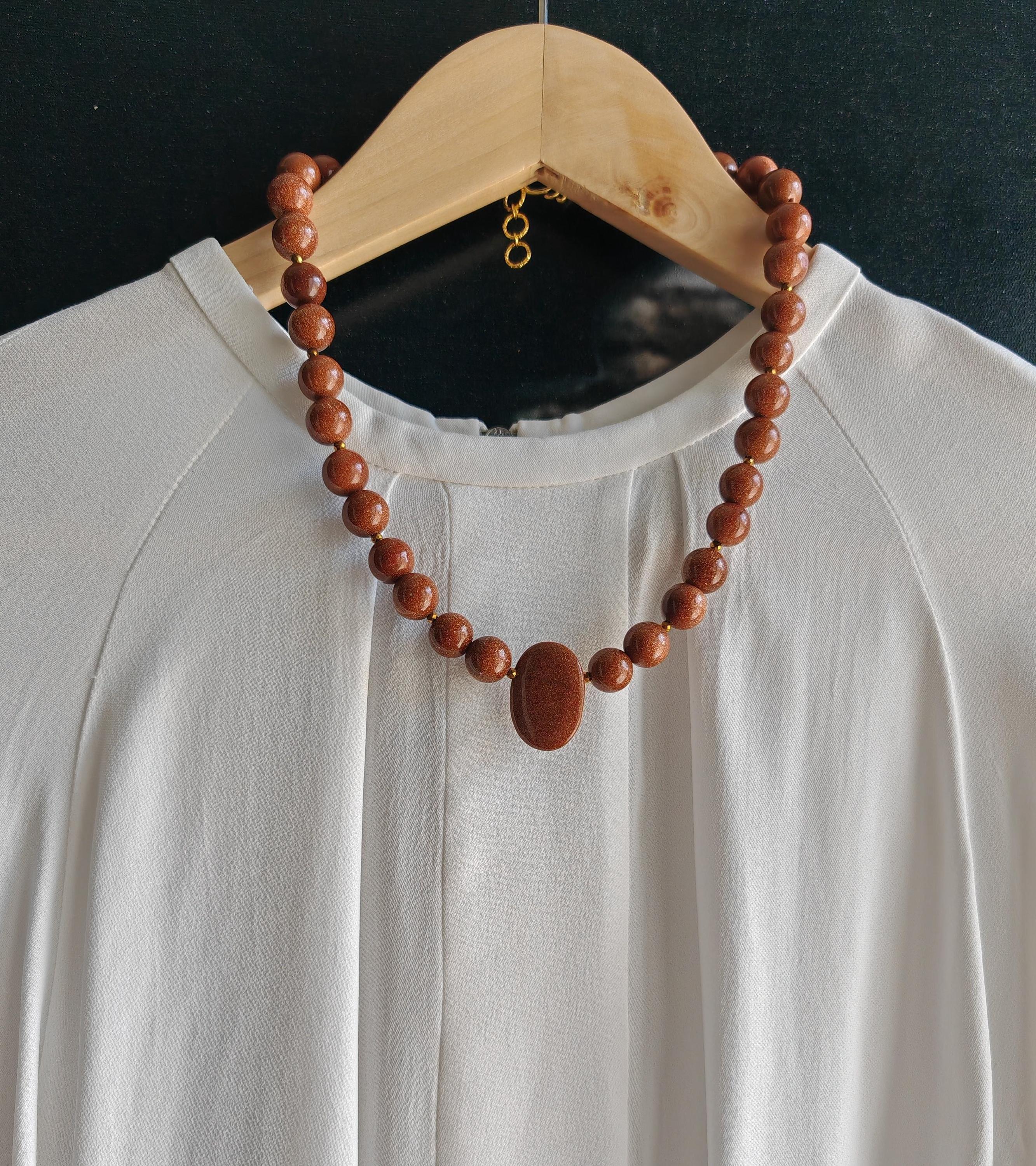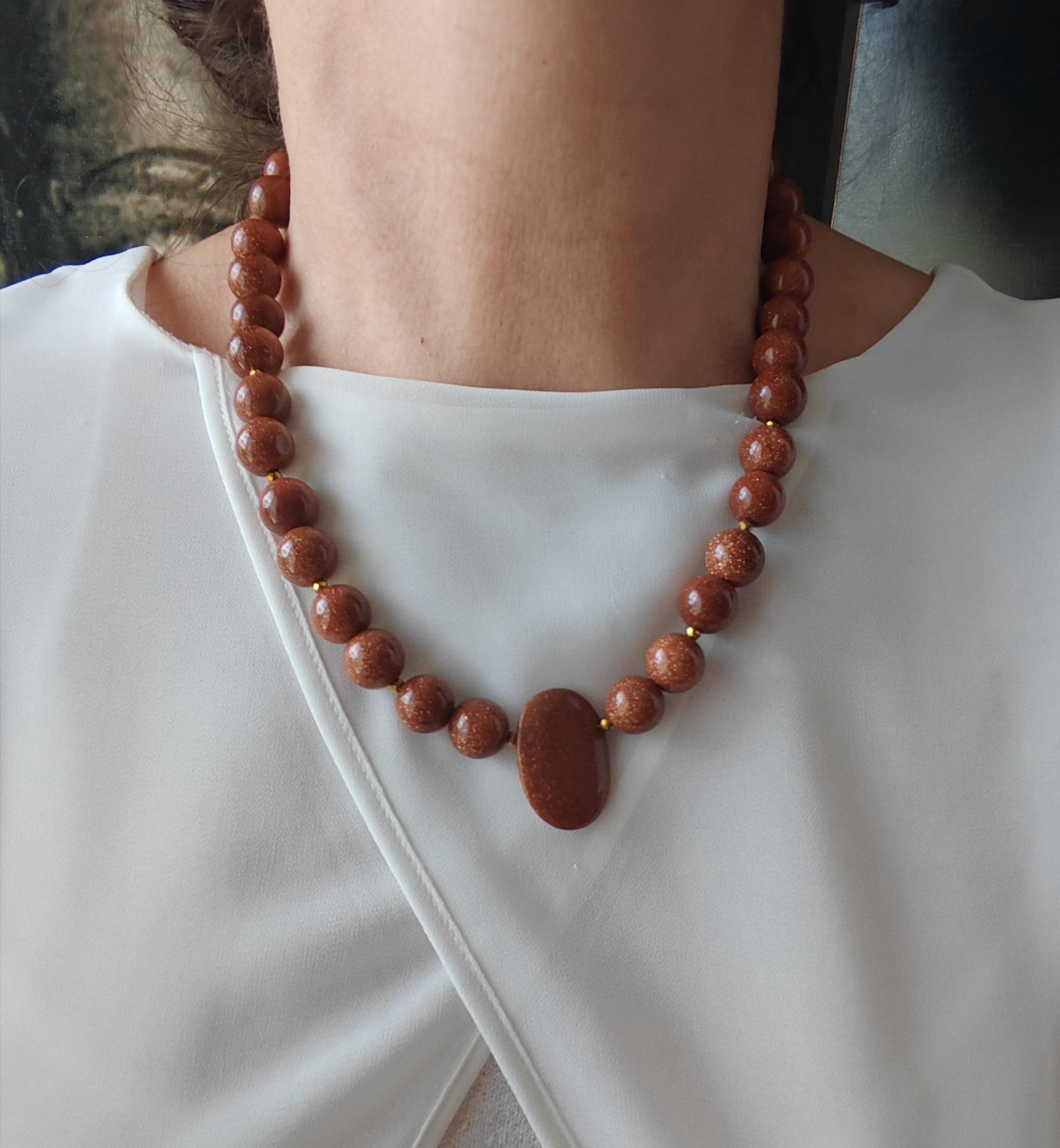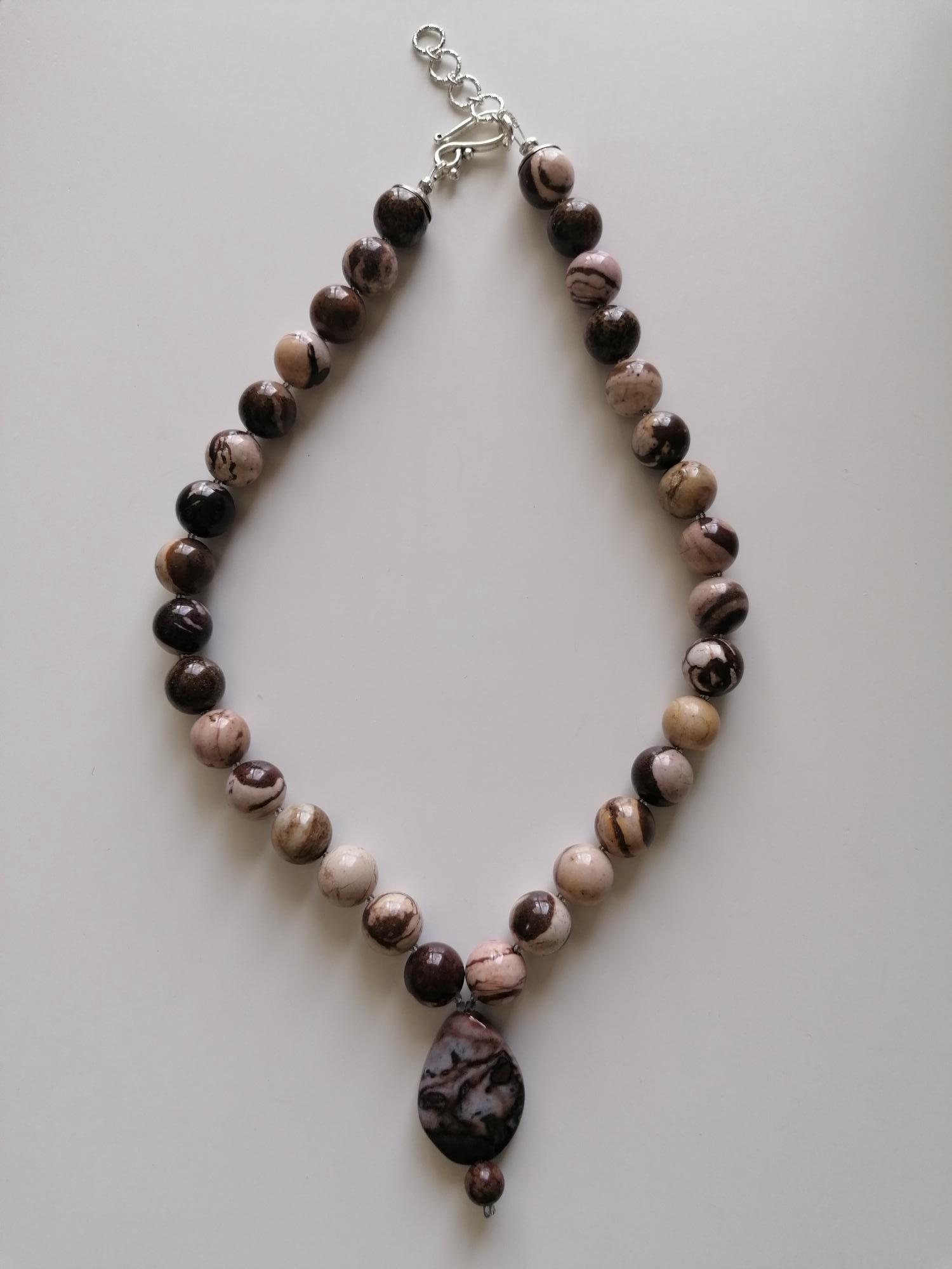 Handgefertigte Ketten mit Anhänger in Braunen Tönen. Es gibt zwei Ketten zur Auswahl.