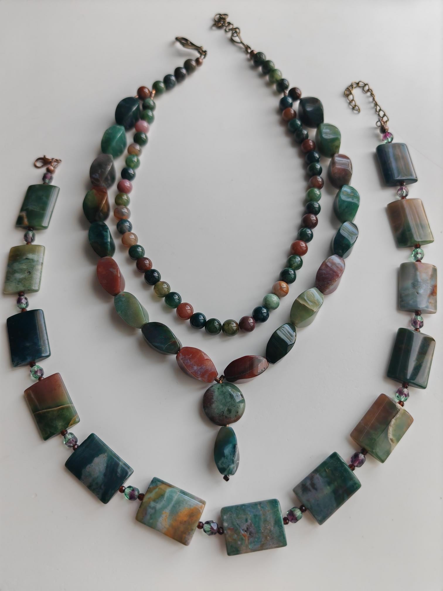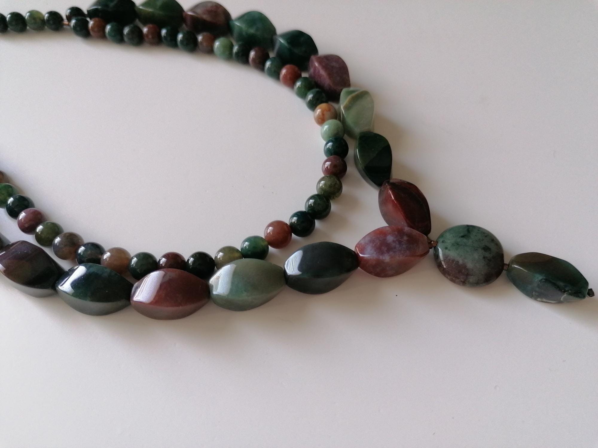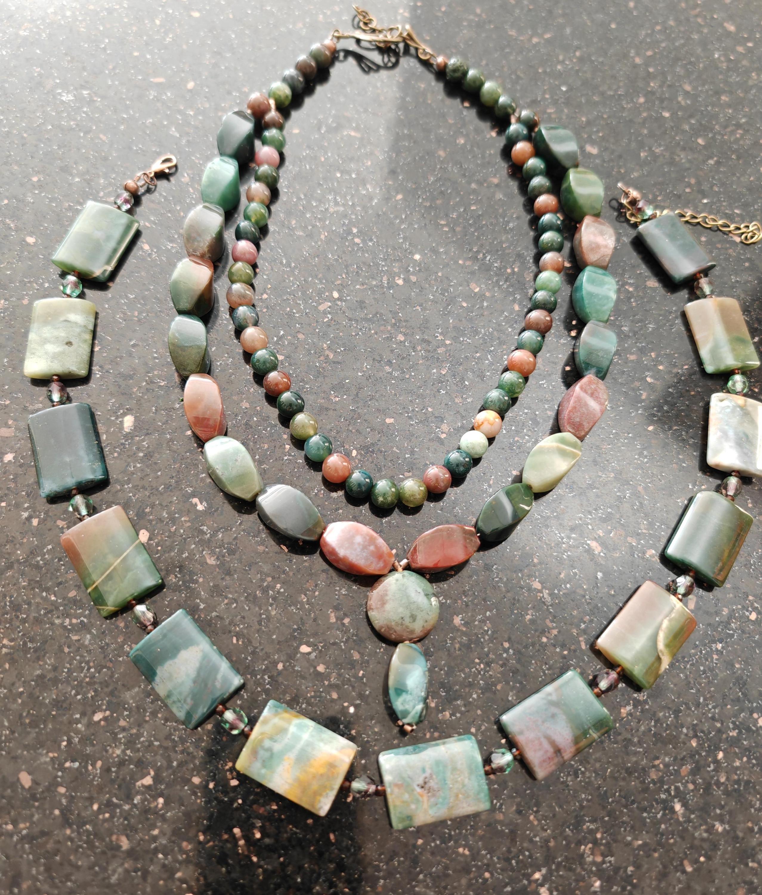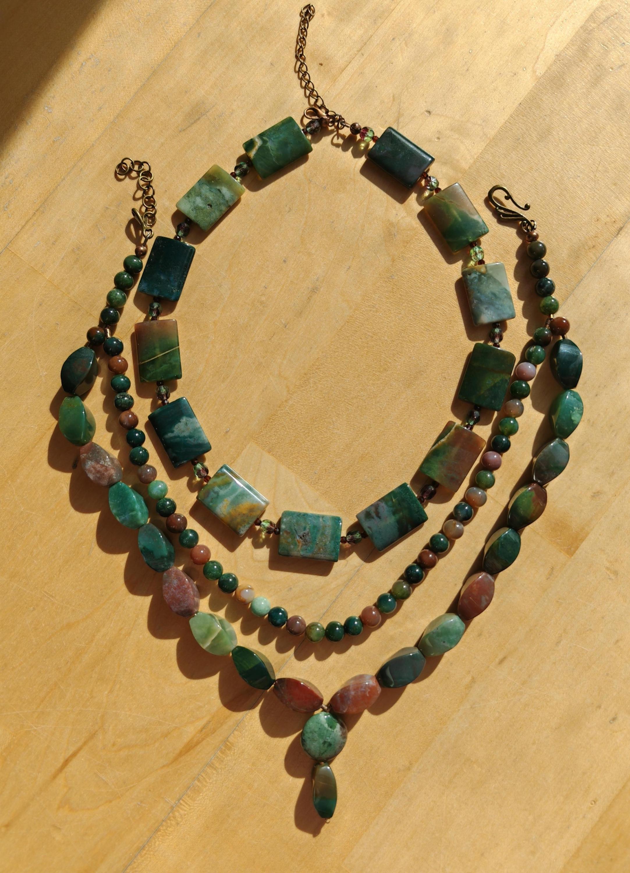 Handmade heliotrope jasper necklaces in green/burgundy/purple. Two necklaces are available.