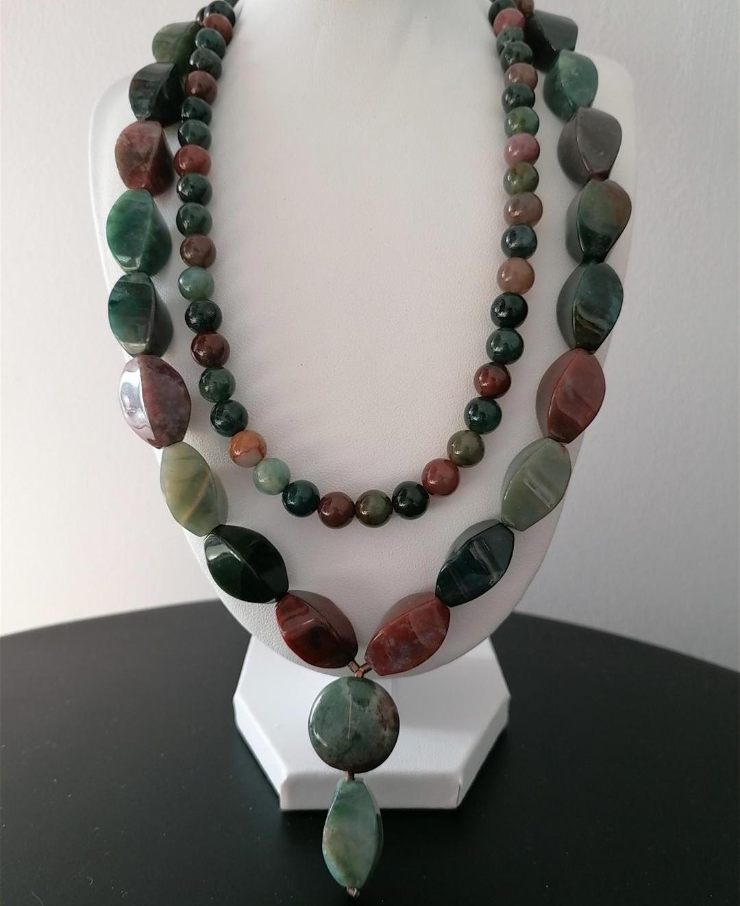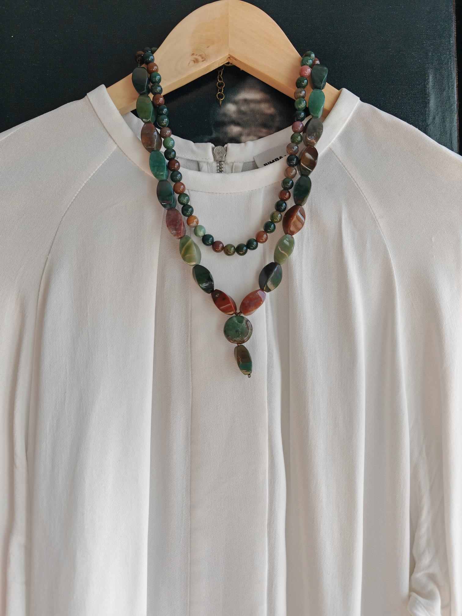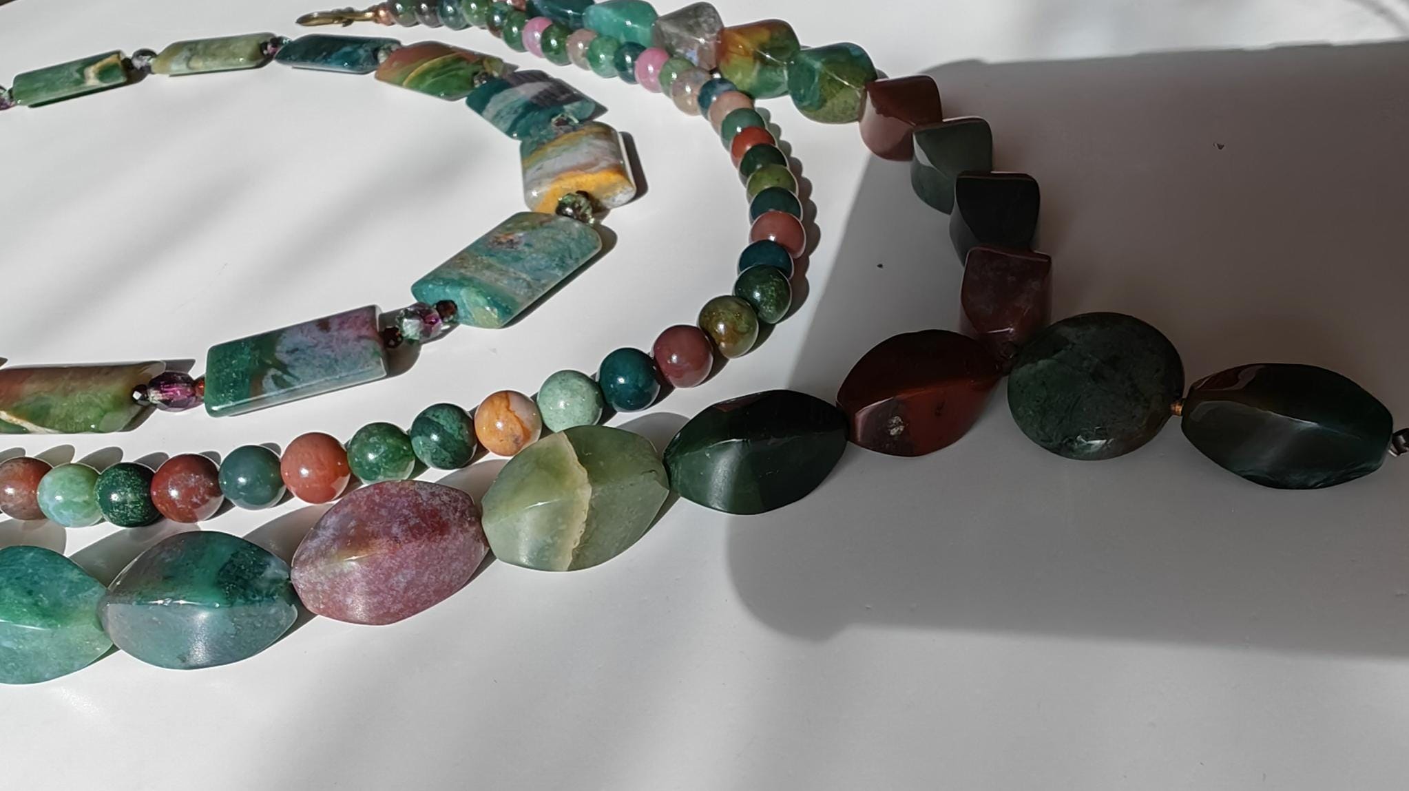 Handmade heliotrope jasper necklaces in green/burgundy/purple. Two necklaces are available.