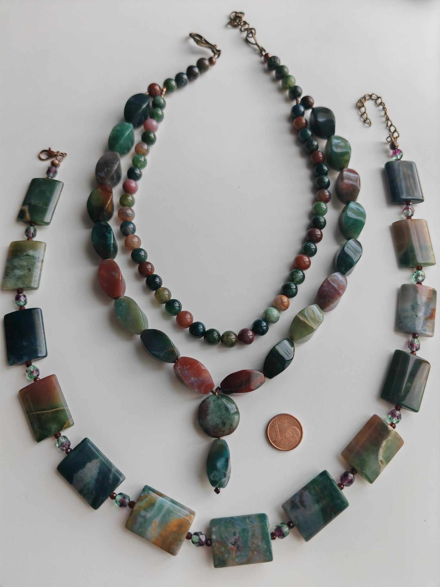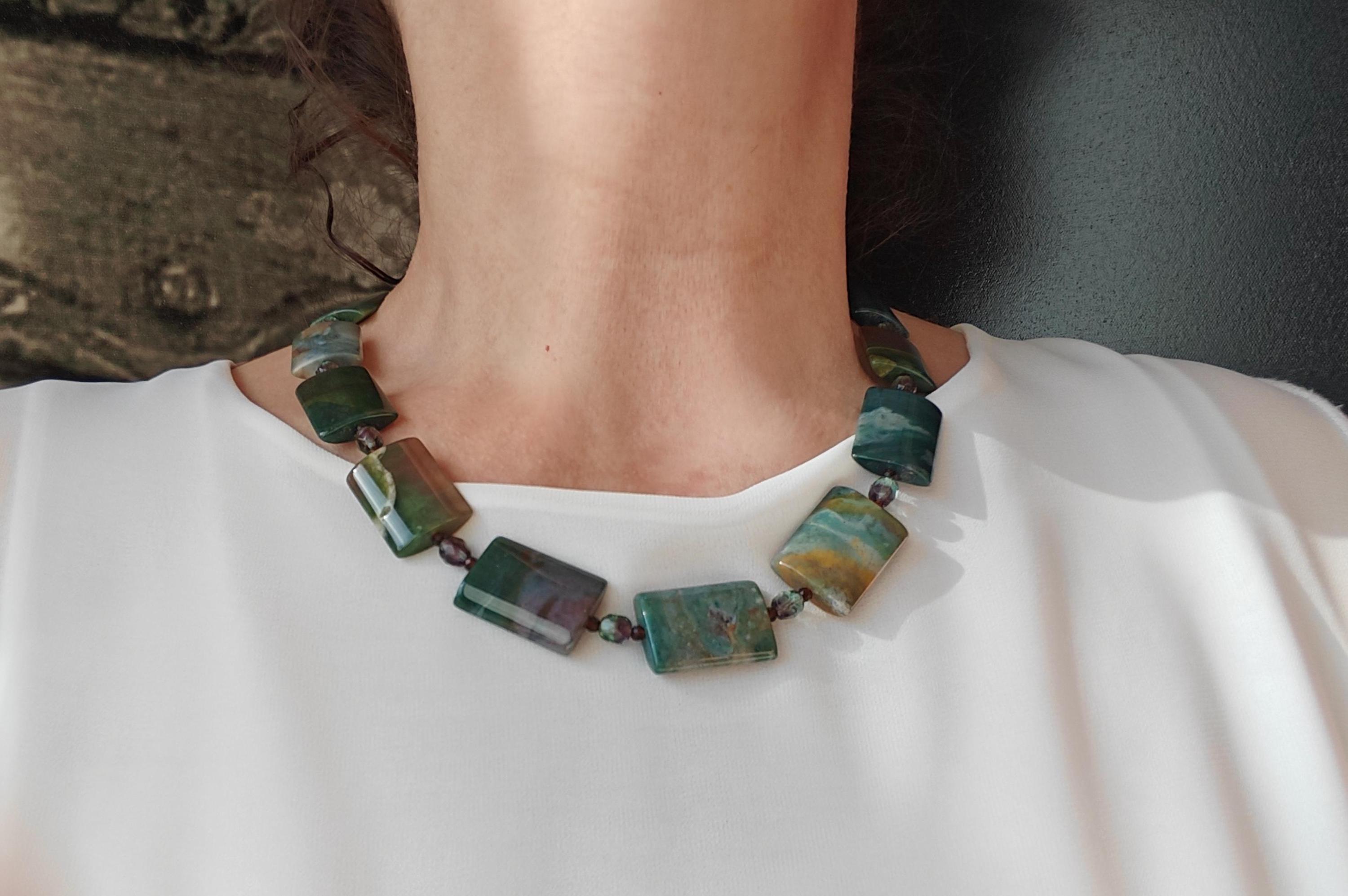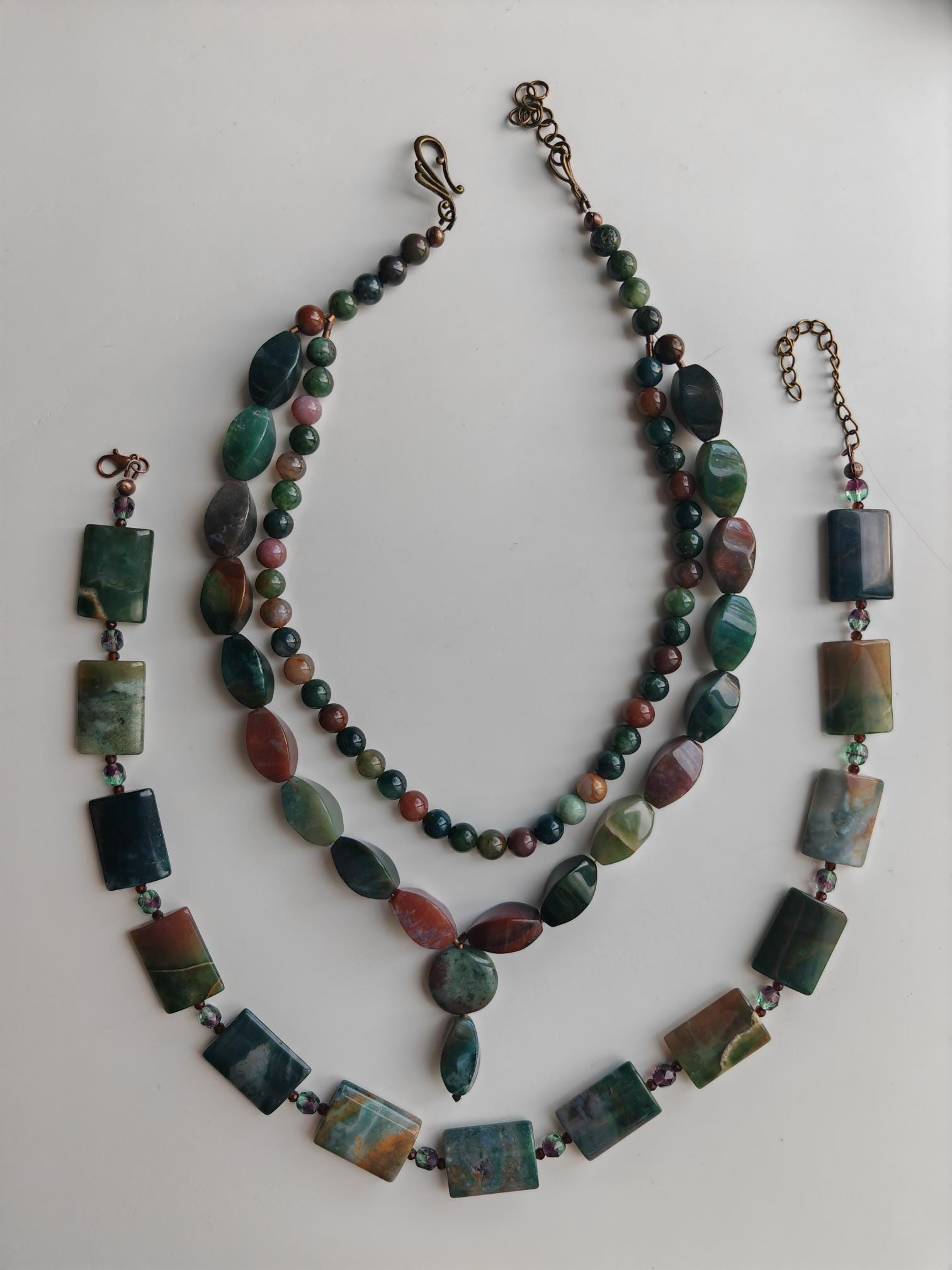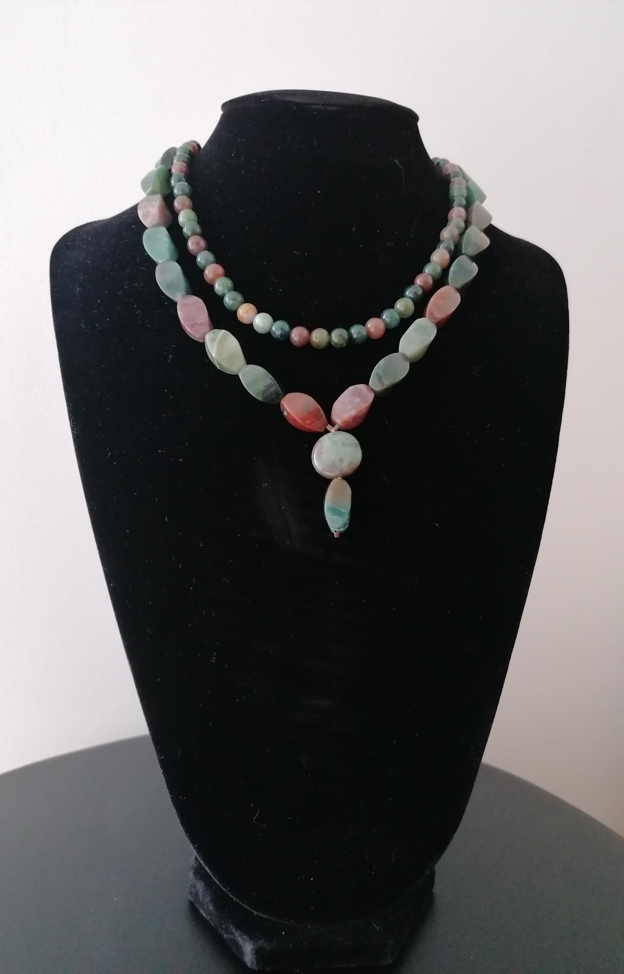 Handmade heliotrope jasper necklaces in green/burgundy/purple. Two necklaces are available.