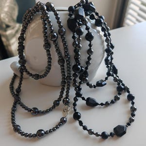 Tourmaline quartz necklace with pendant in gray/black. The necklace is 48 cm long plus an extension chain. The necklace is made of large, round, gray/black tourmaline quartz beads with colorful shades (14 mm) and faceted black spinel beads (2 mm). The agate pendant, shaped like a triangular prism, is approximately 5 cm long. The S-shaped chain clasp and the extension chain are black/anthracite. The necklace is simple and elegant. You can wear it everyday or for special occasions, or combine it with other necklaces.