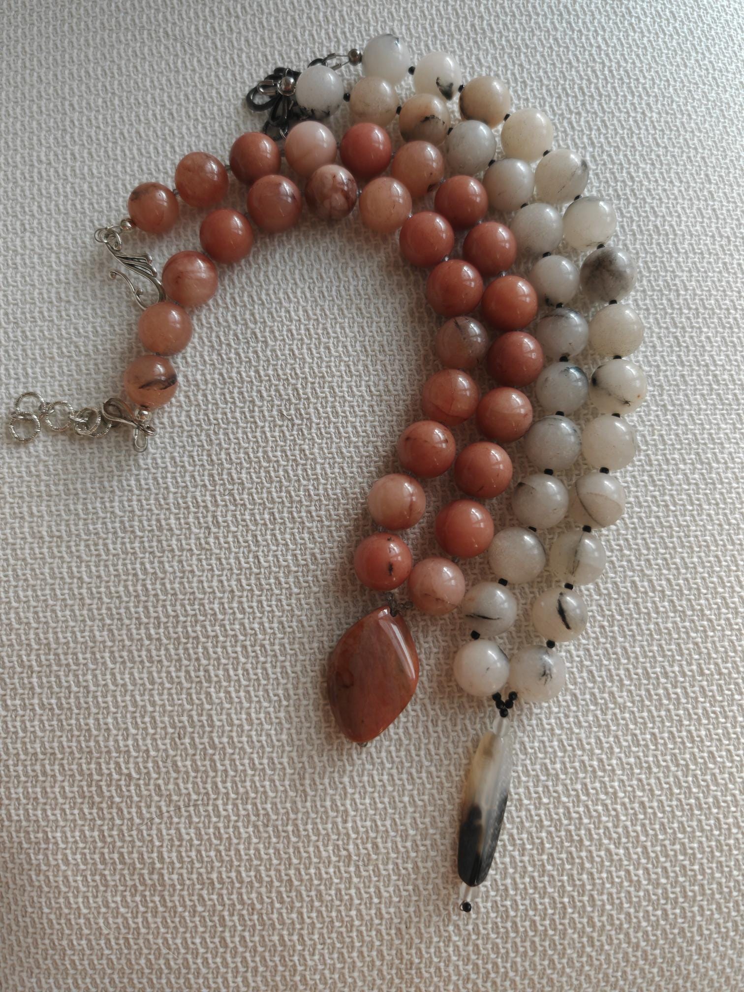 The color, size, and shape of the beads may vary. The colors of the pearls may vary depending on camera and monitor settings. Since my jewelry is made from natural stones and genuine pearls, small imperfections and cracks may be present. Combined shipping is possible. When you buy 2 or more items, you get a 10% discount on the total amount. The necklaces are shipped in a gift box. Etsy sellers are not responsible for customs duties and import taxes imposed by your country of residence.