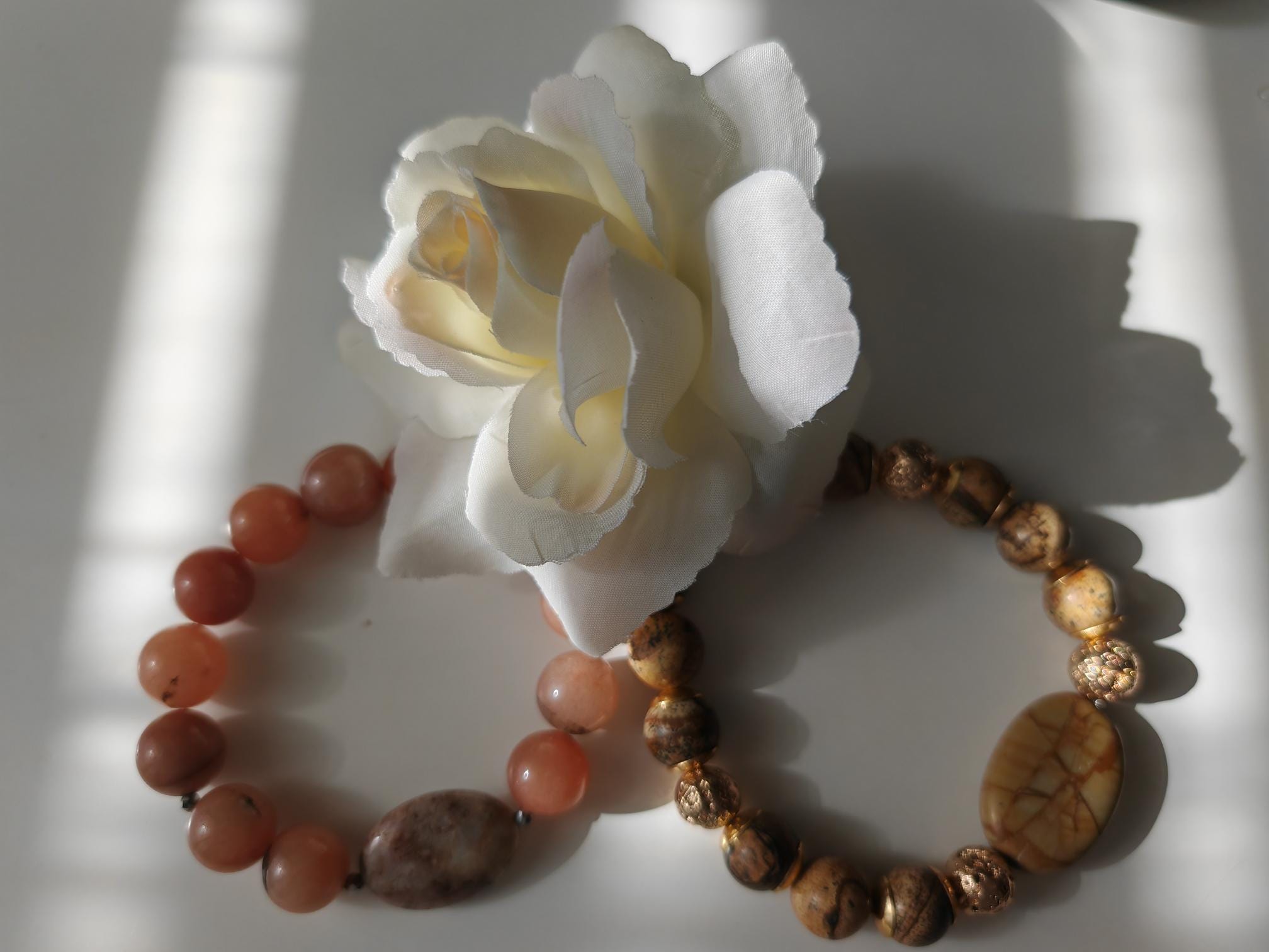Handmade stretch bracelets. There are two versions.