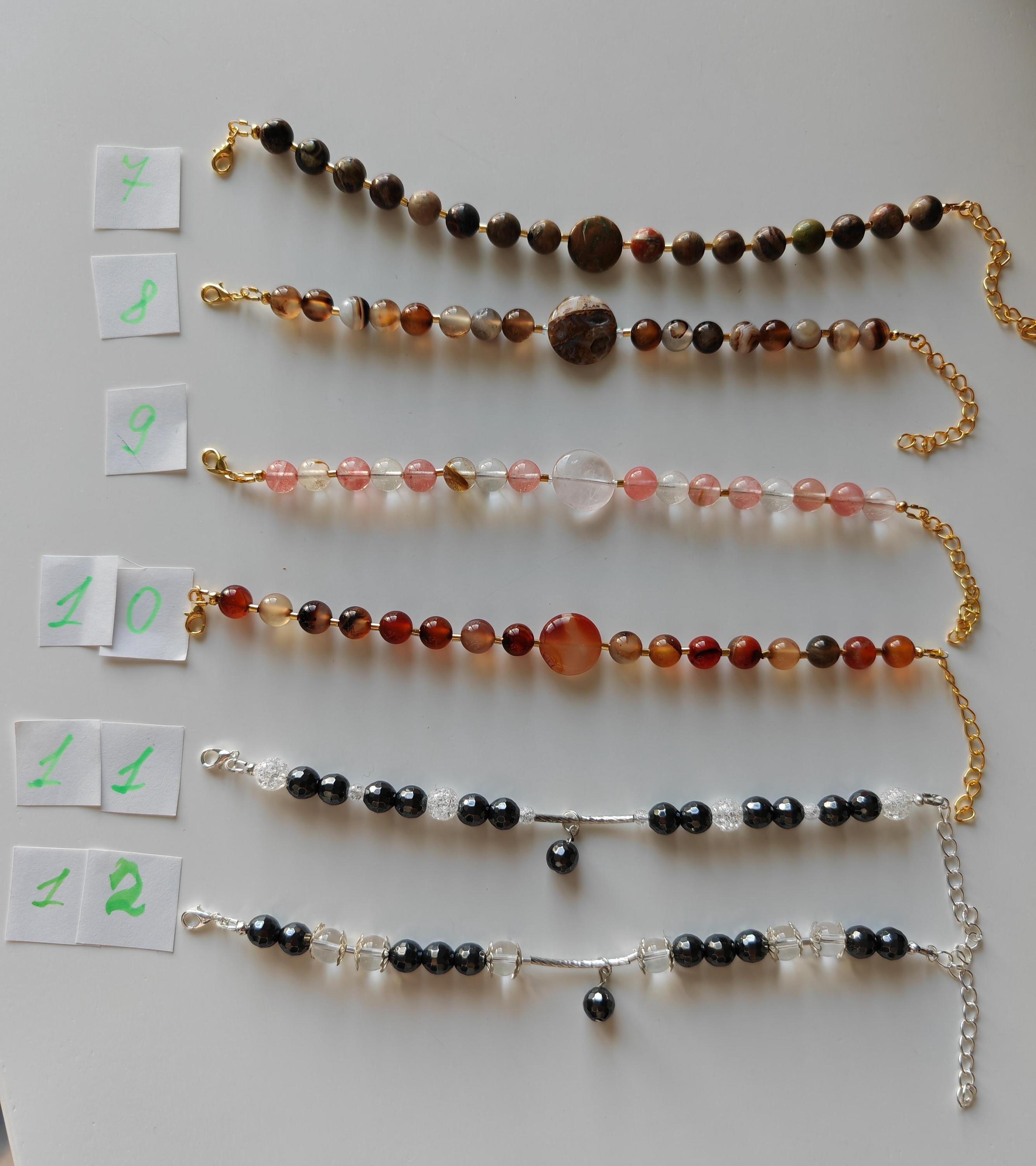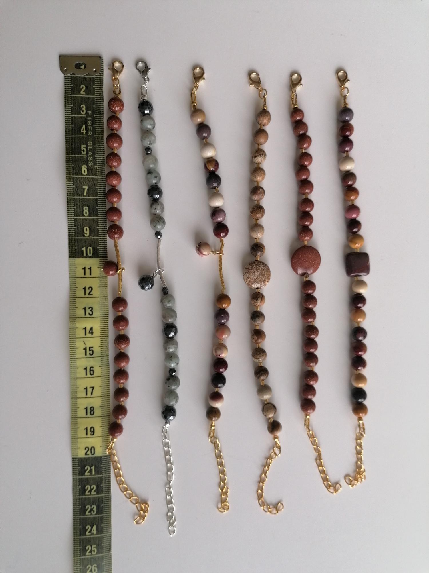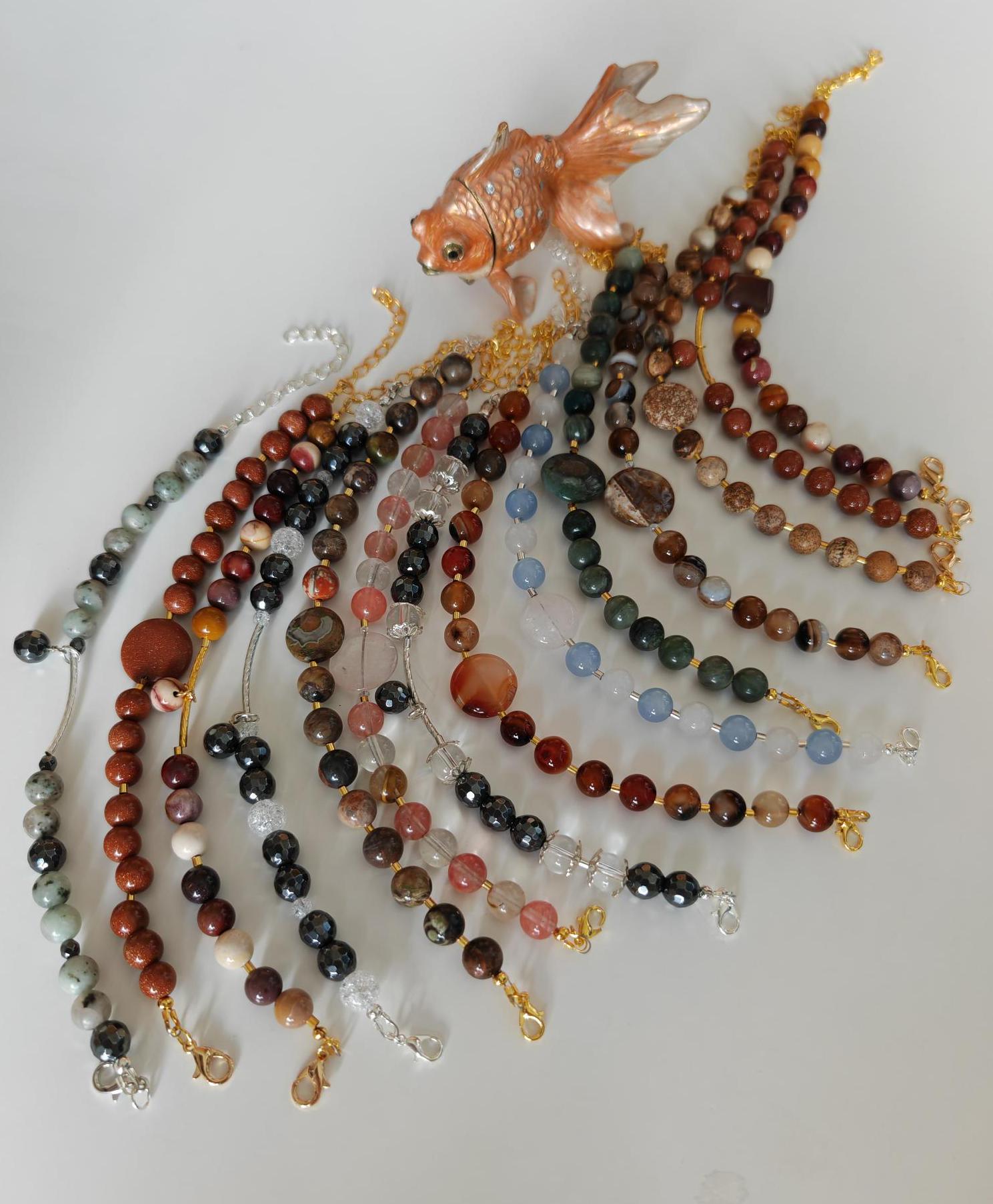 Handgemachte farbenfrohe Edelstein Armbänder. Armbandlänge ist ca 19 cm - 20 cm. Es gibt 14 Armbänder zur Auswahl.