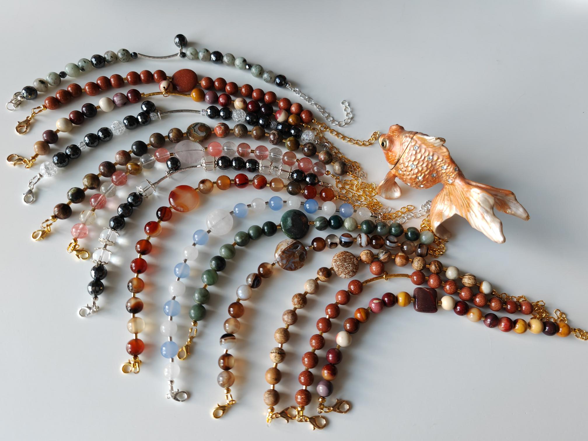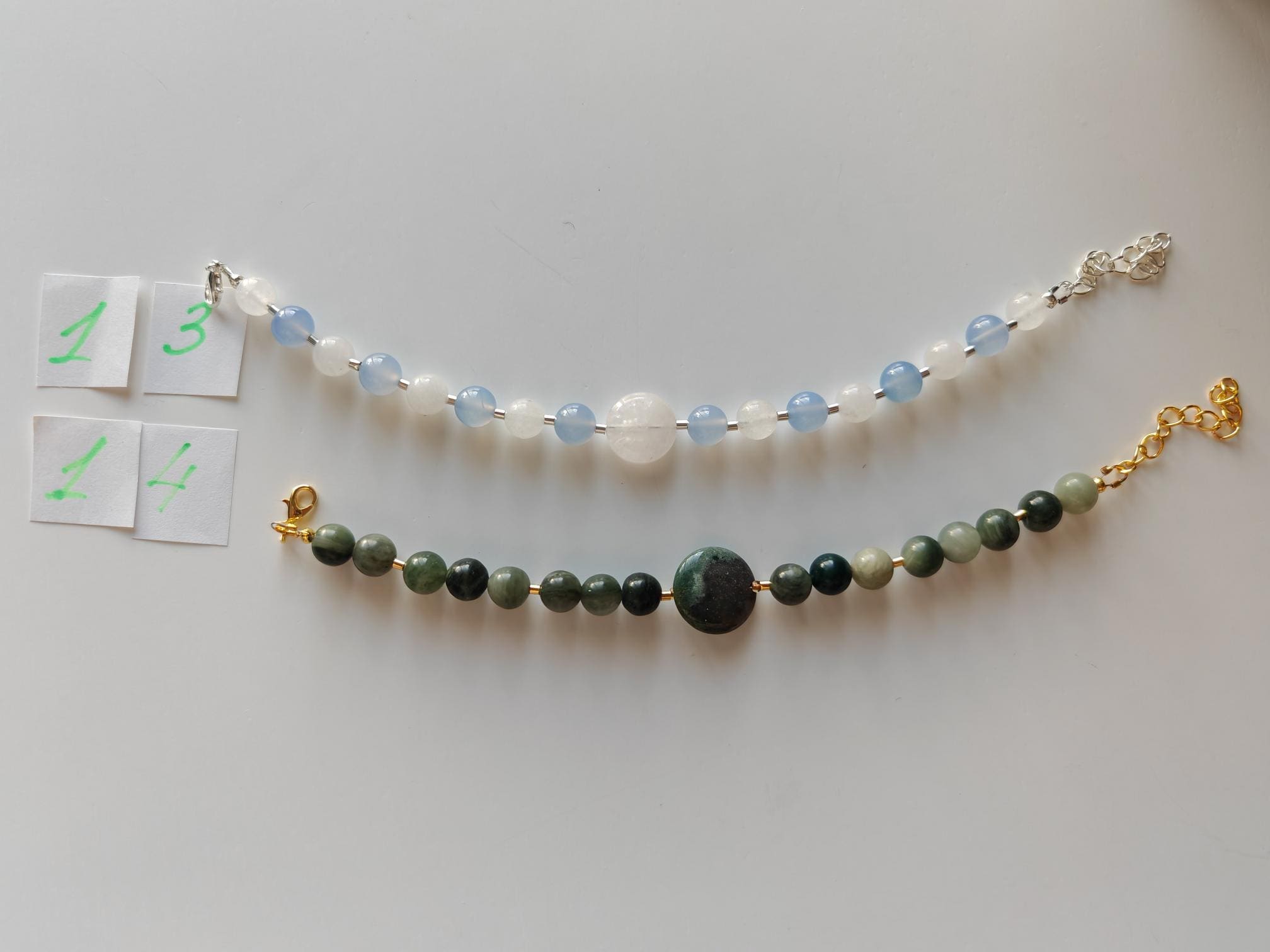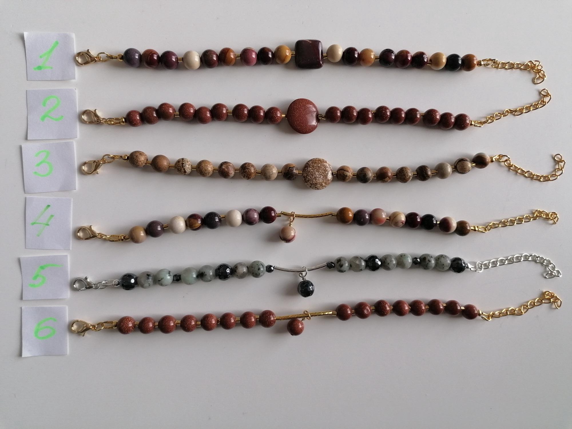 Handgemachte farbenfrohe Edelstein Armbänder. Armbandlänge ist ca 19 cm - 20 cm. Es gibt 14 Armbänder zur Auswahl.