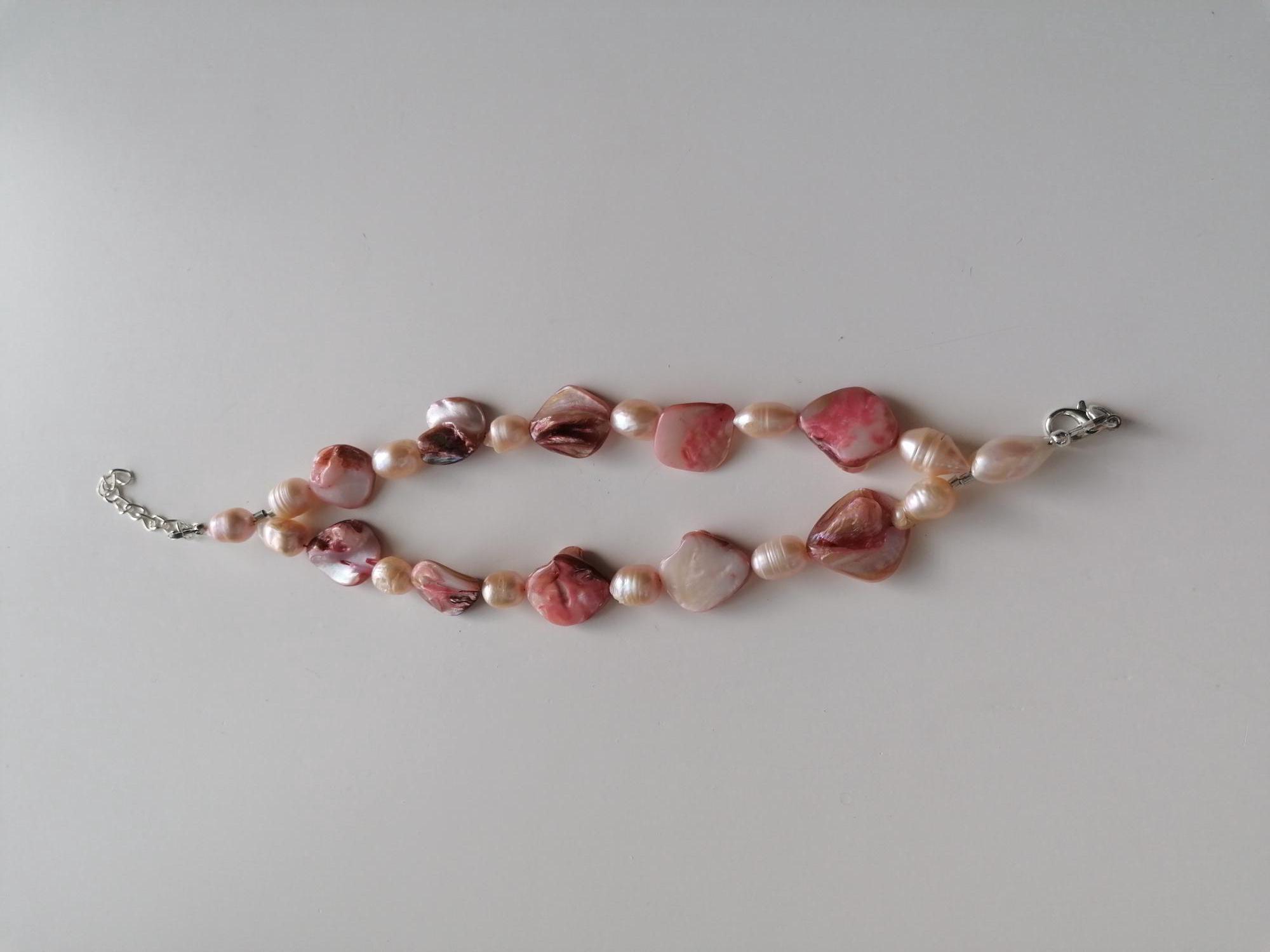 Handmade 2-row bracelets made of mother of pearl and freshwater pearls.
