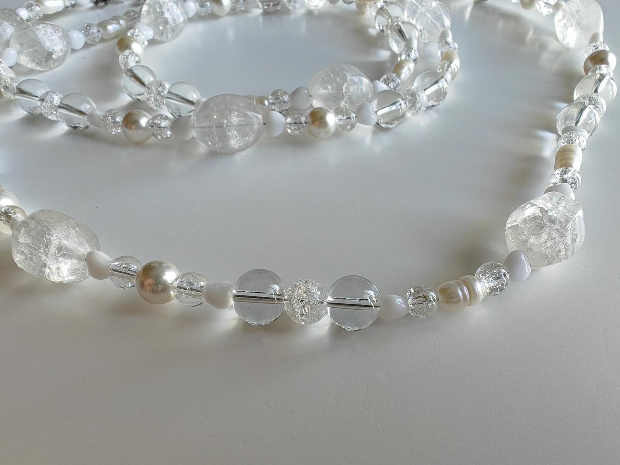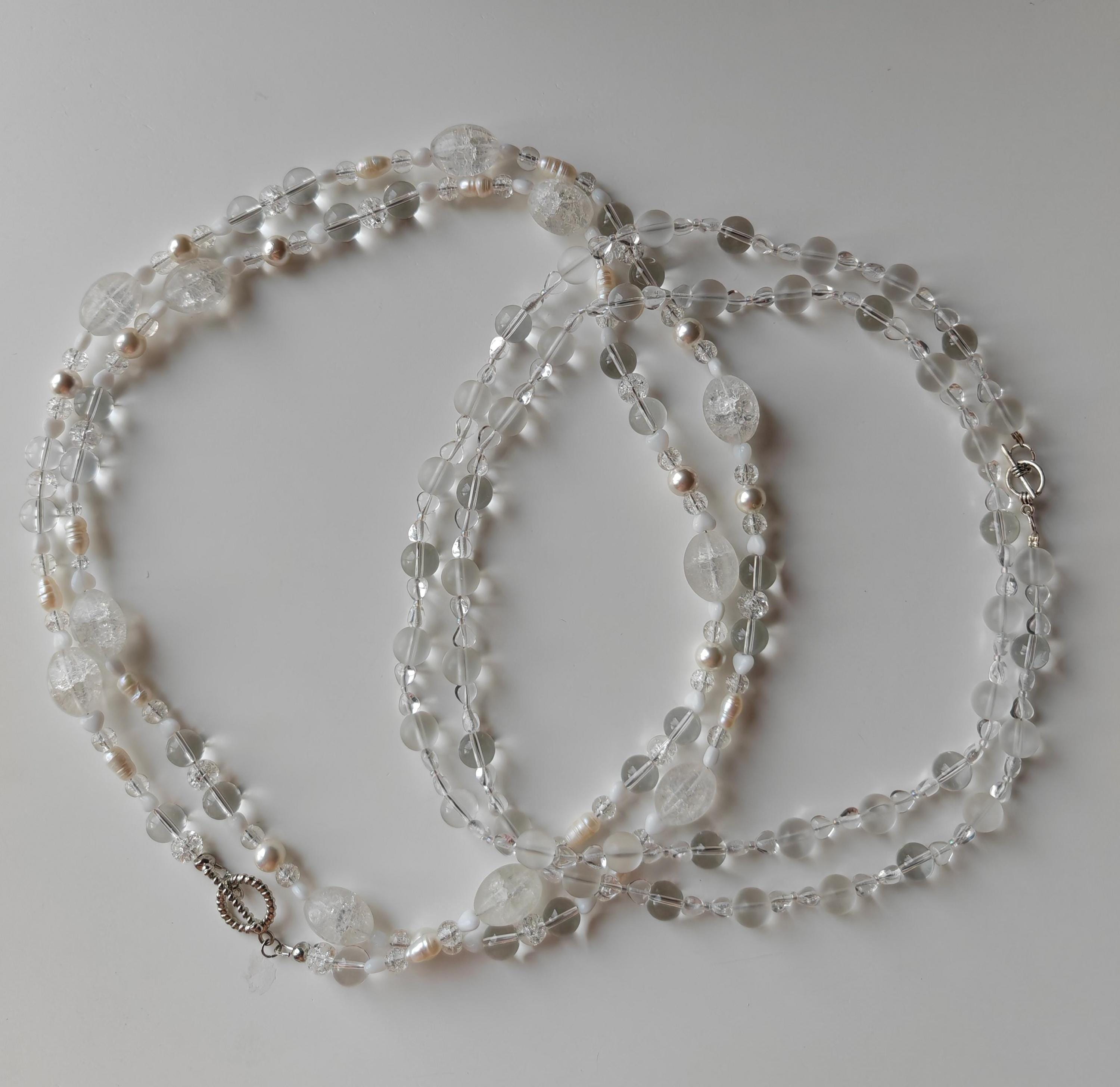 Long rock crystal necklace, necklace made of rock crystal and freshwater pearls, long rock crystal necklace with freshwater pearls, long necklace, gift