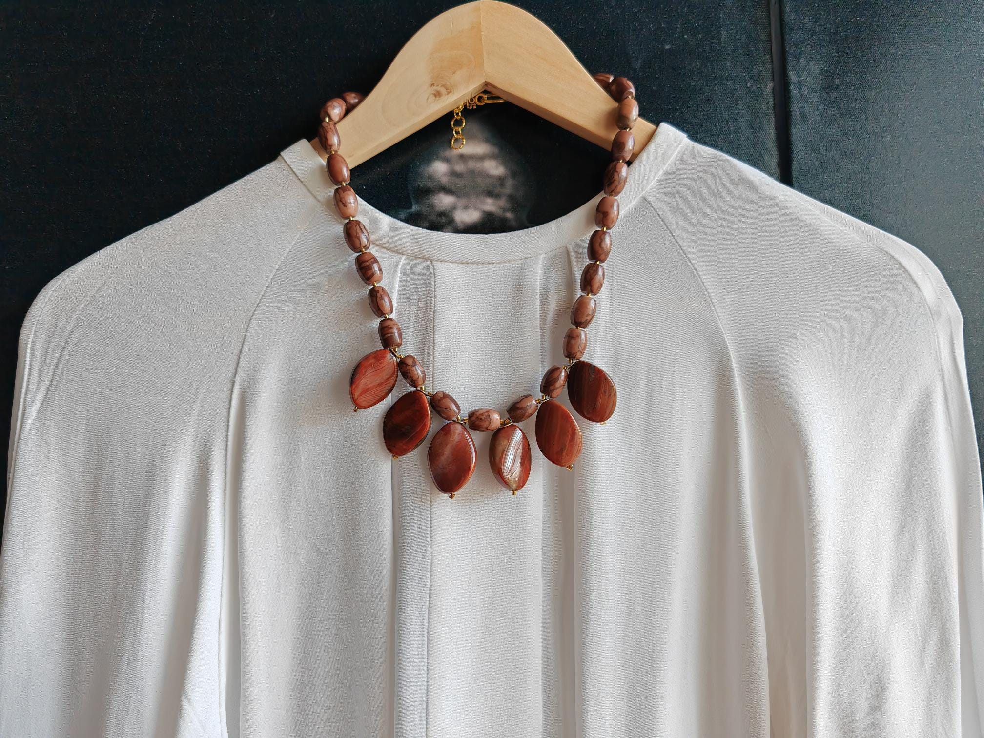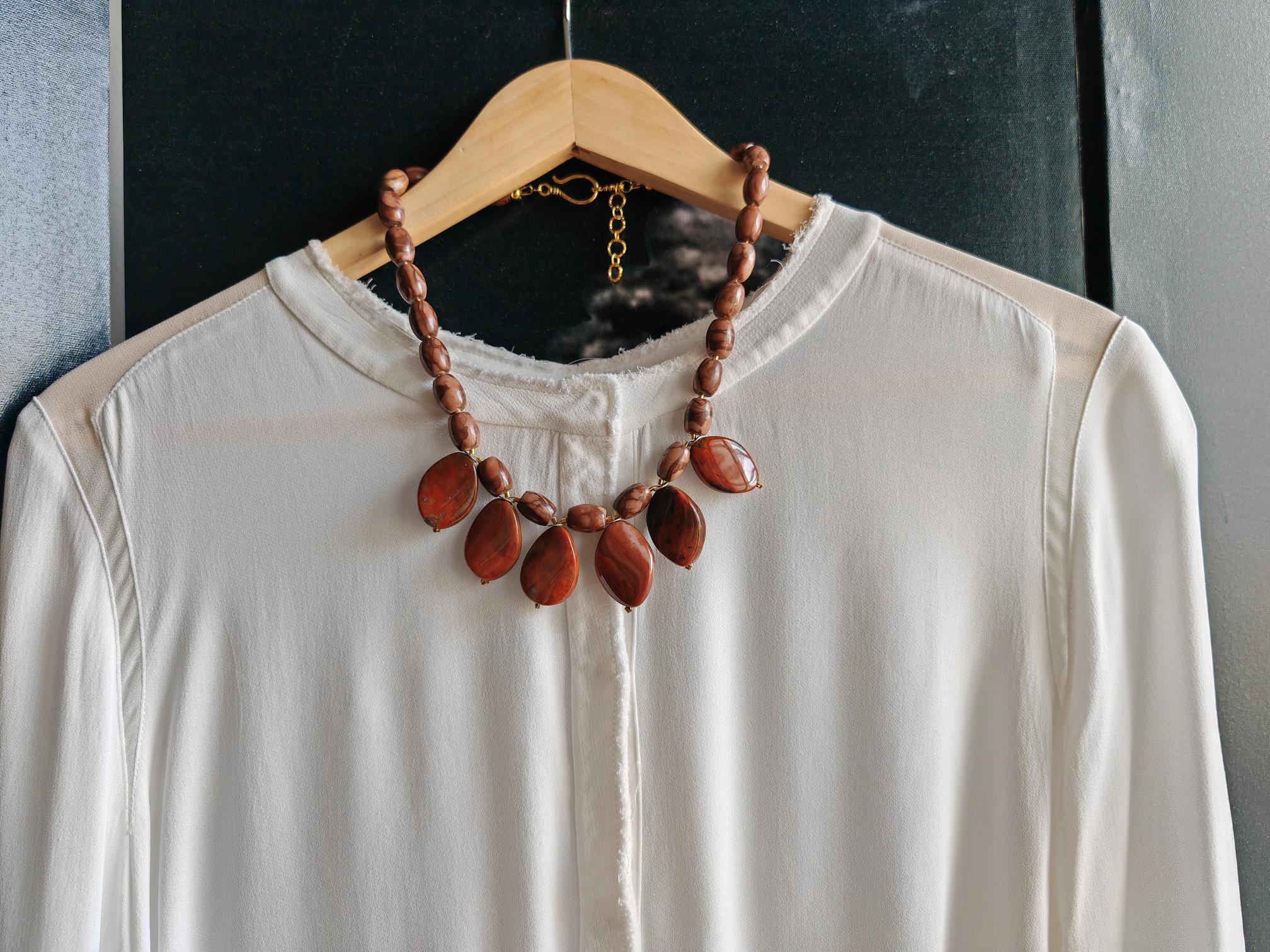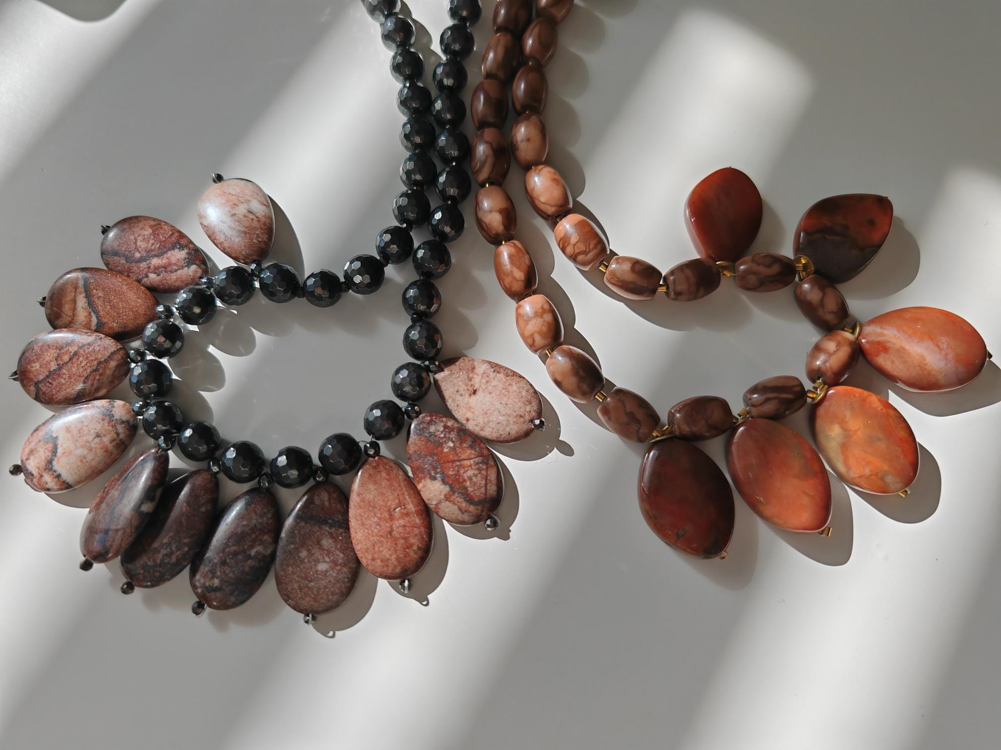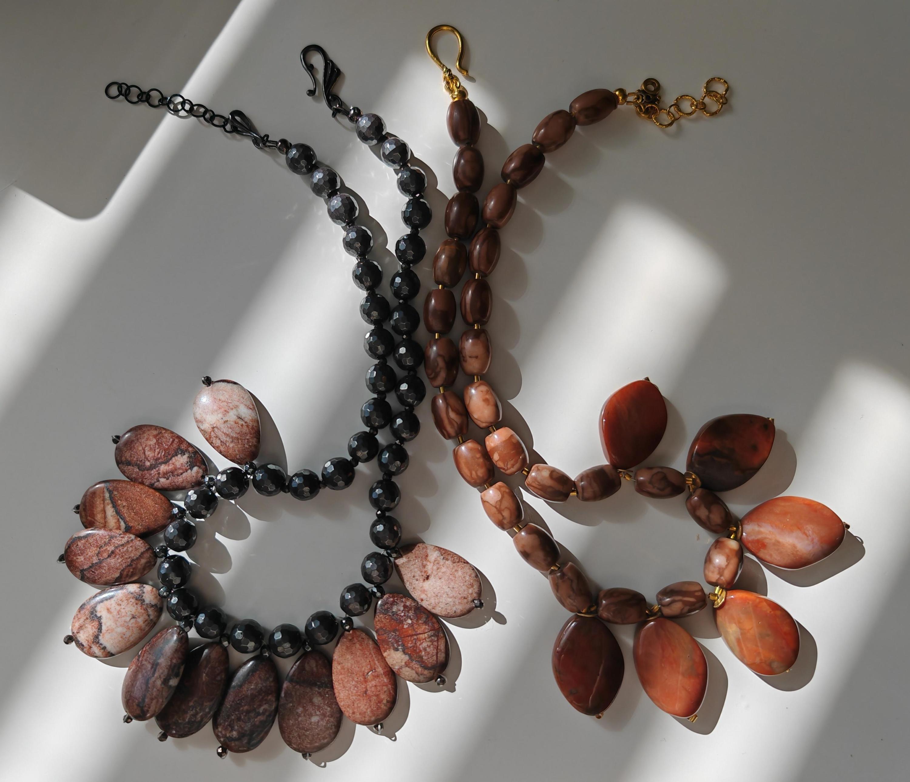 Handmade jasper necklaces with charms (pendants) in shades of brown. Two necklaces are available.