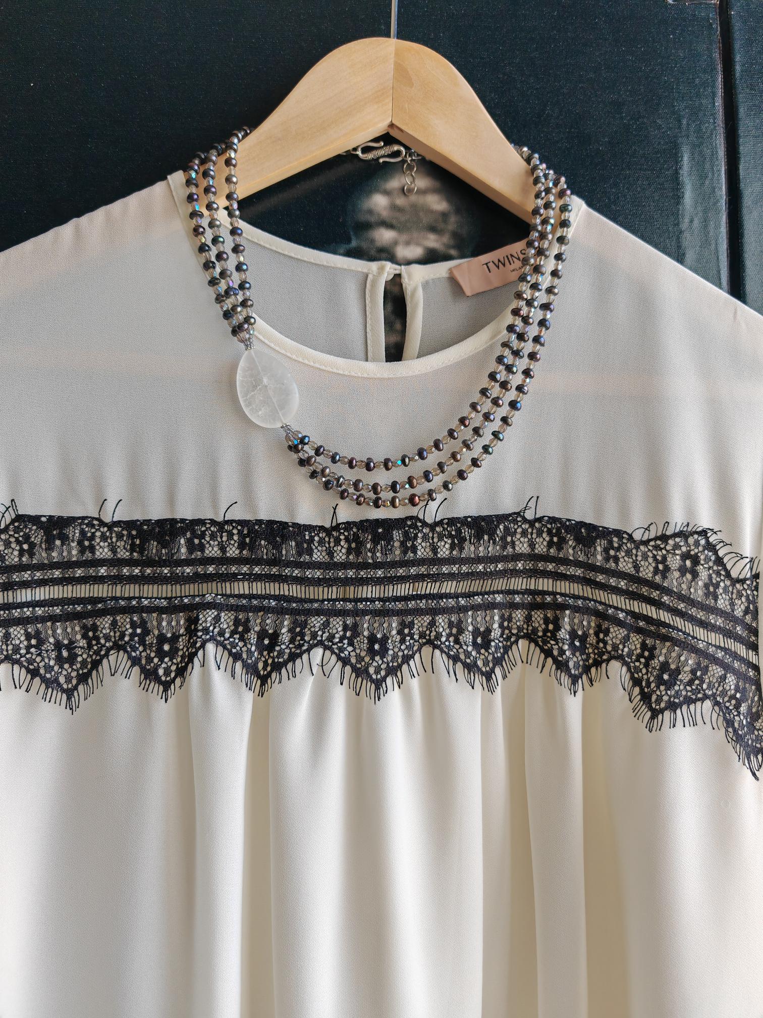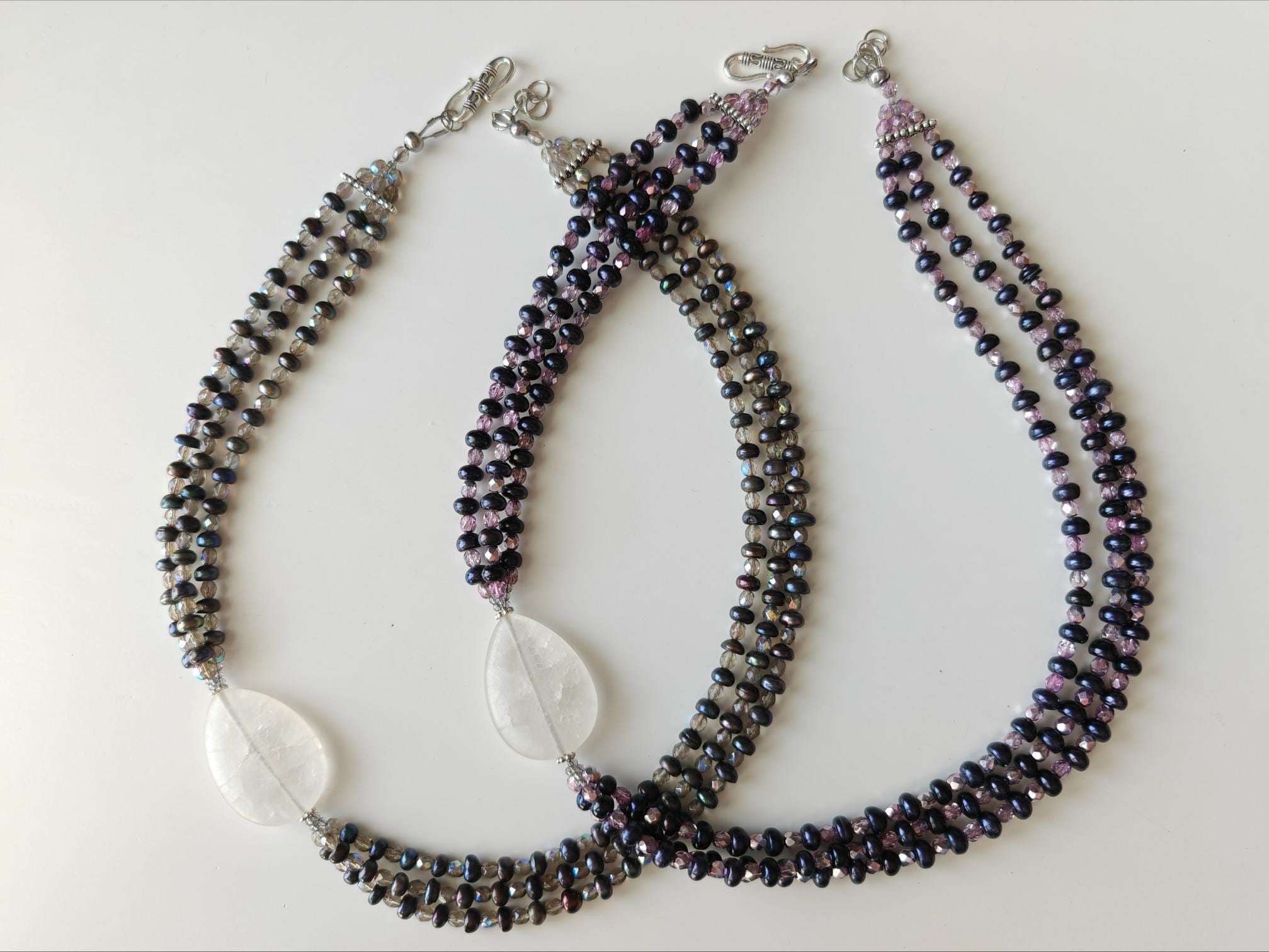 Handmade asymmetrical necklaces with freshwater pearls. Two necklaces are available.