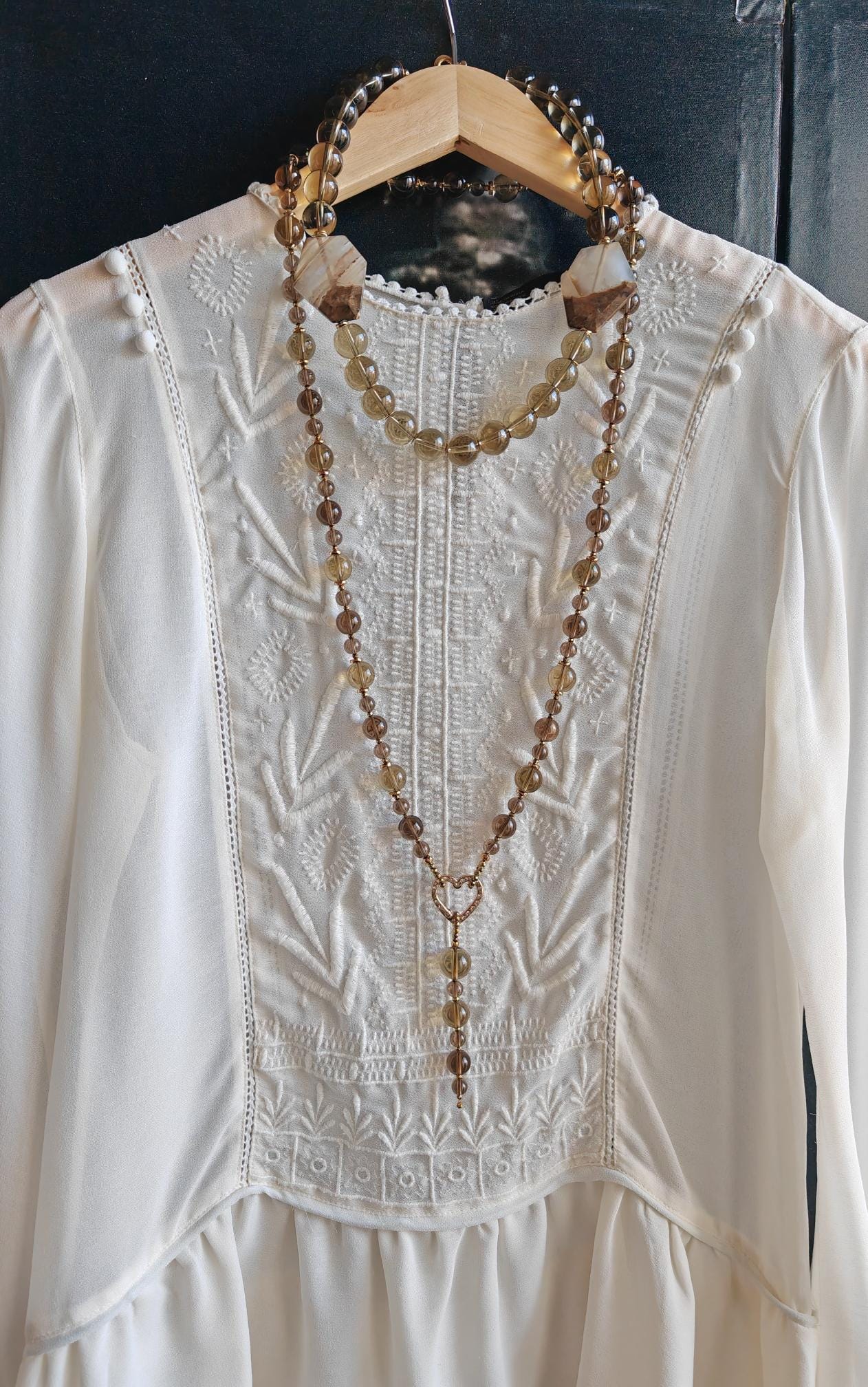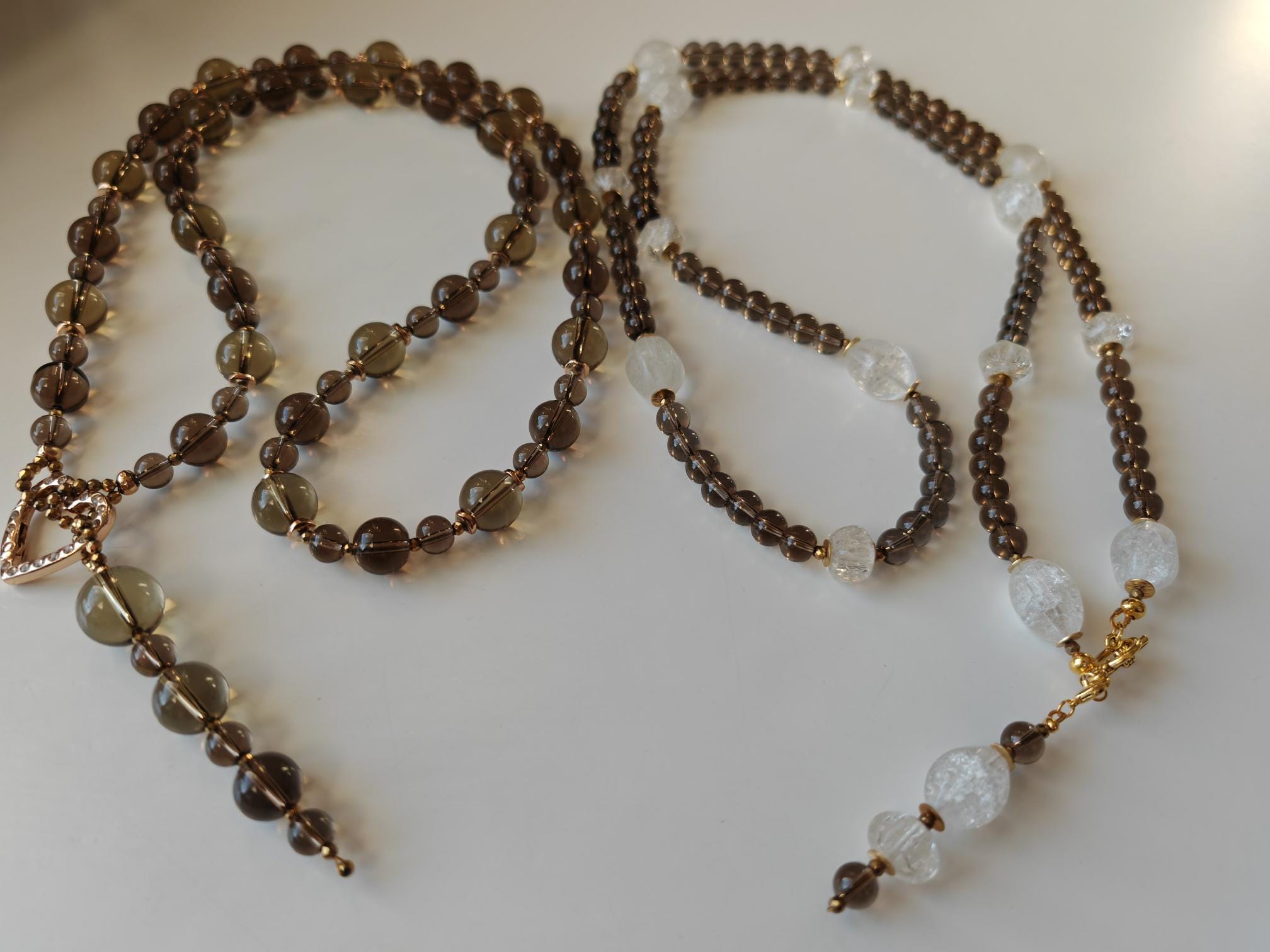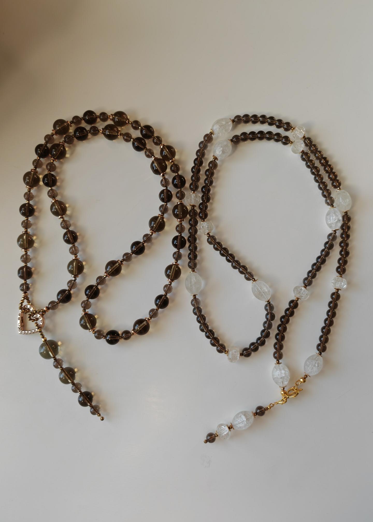 Handmade long smoky quartz necklaces with a detachable pendant. Two necklaces are available.