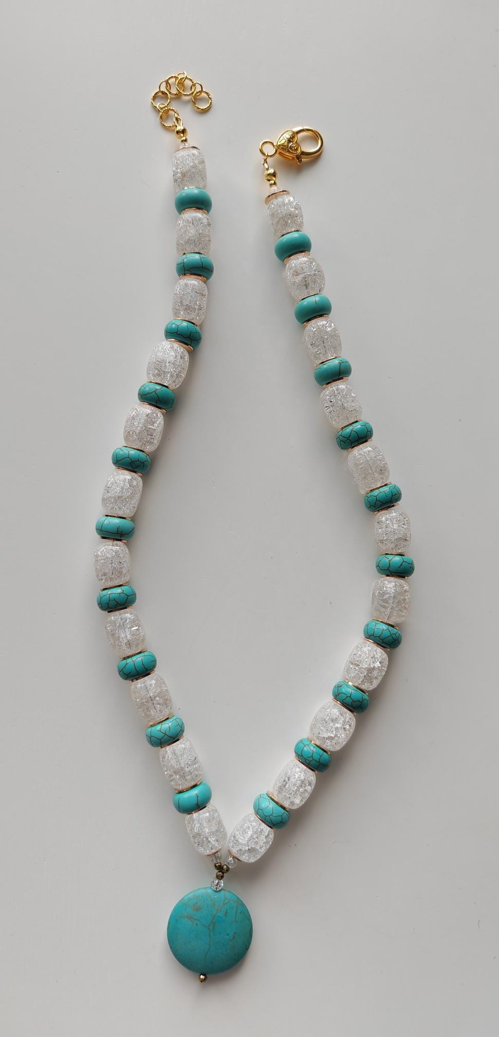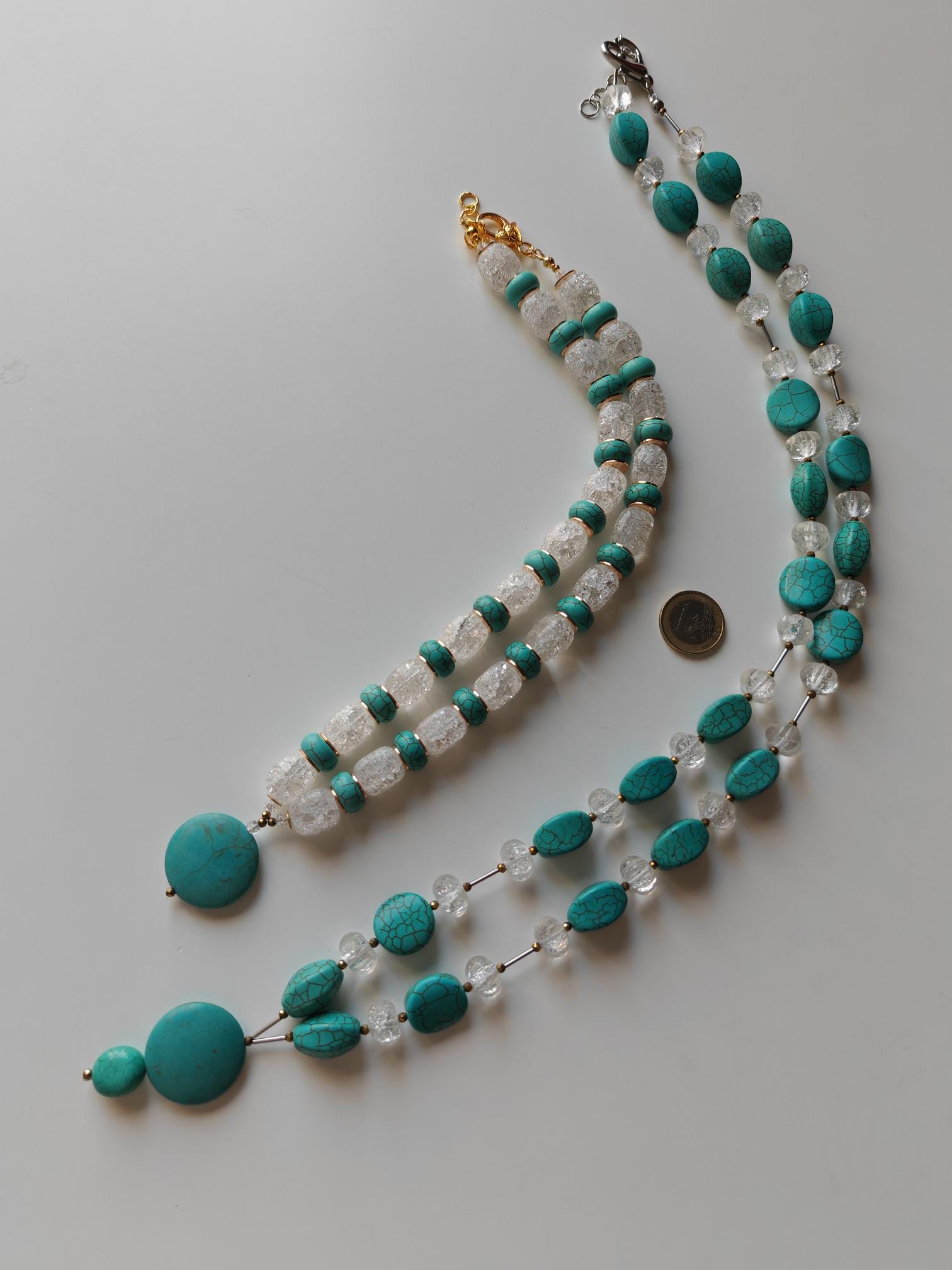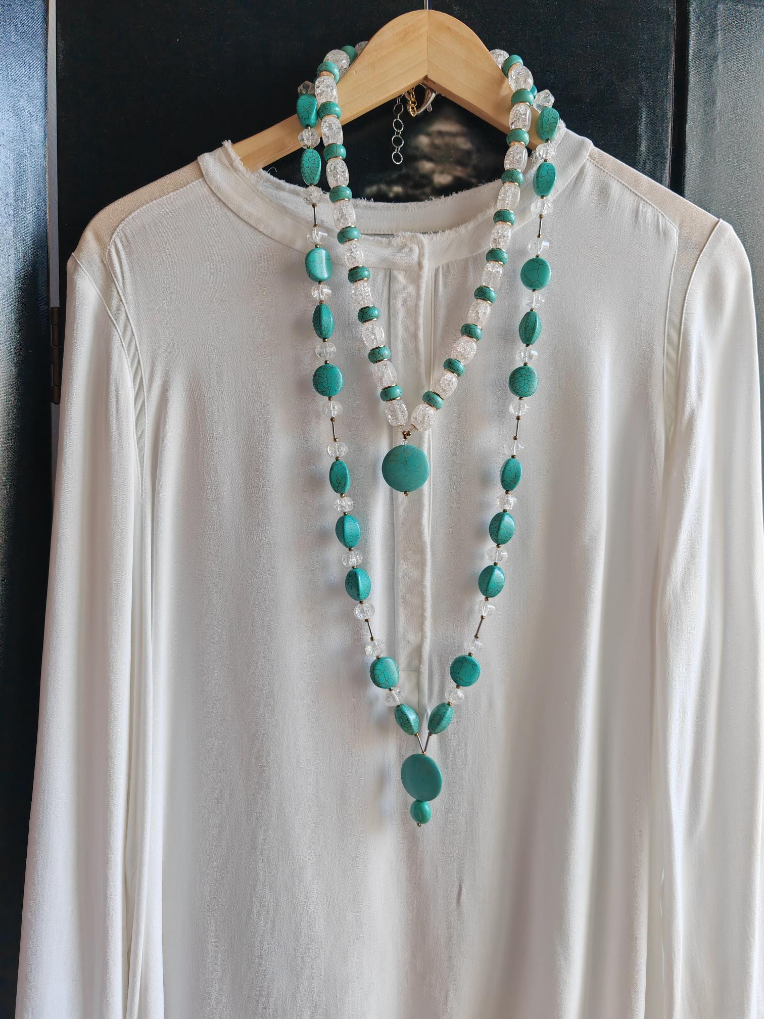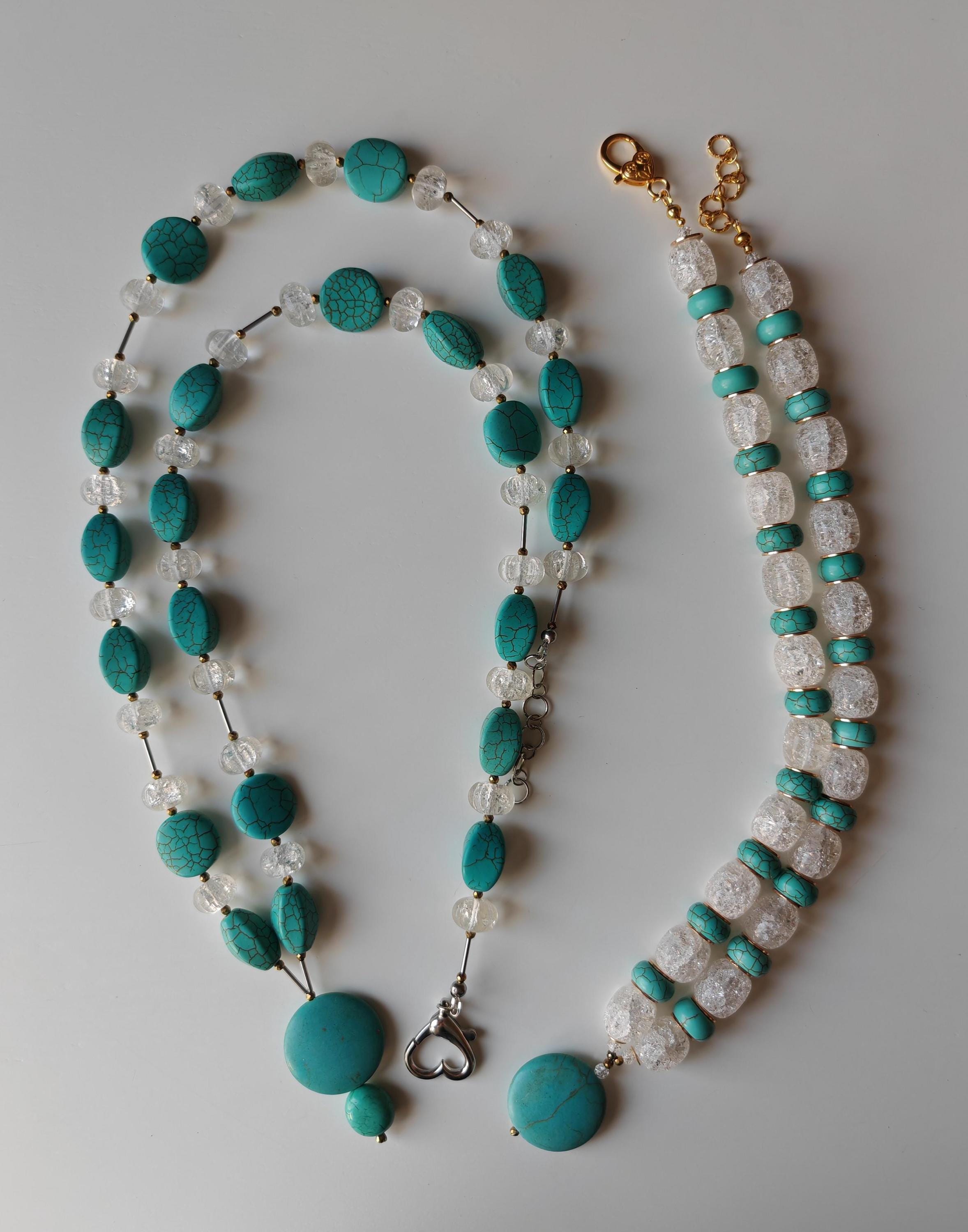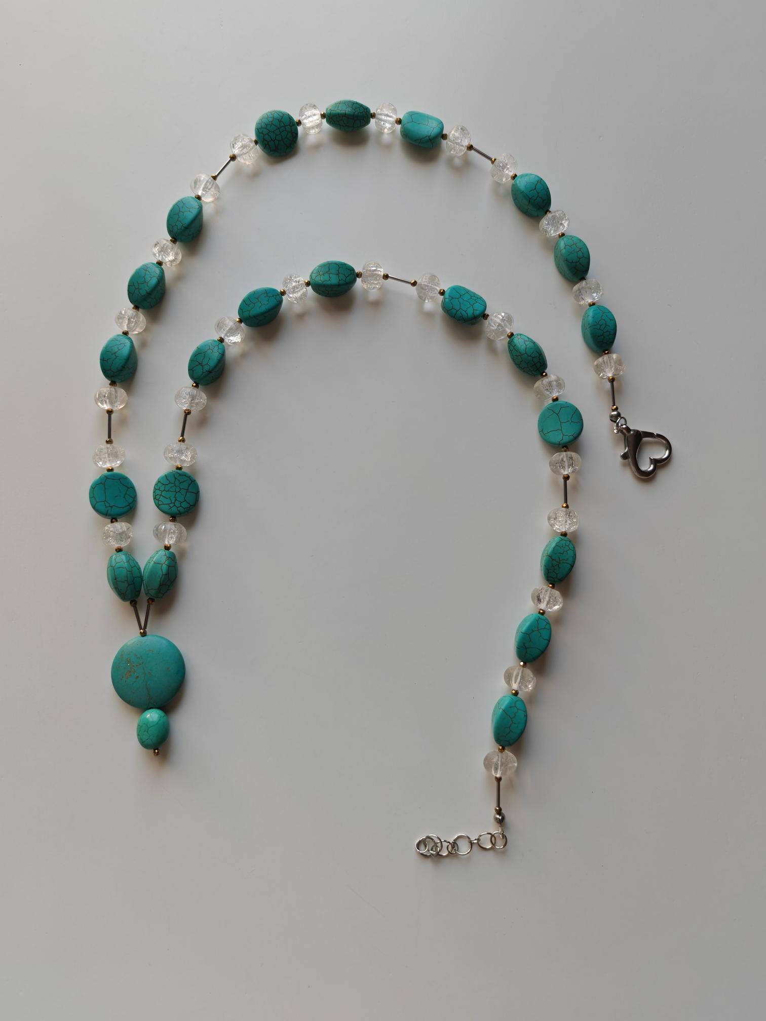 Handmade solid necklaces with pendants made of rock crystal and turquoise howlite beads. Two necklaces are available.