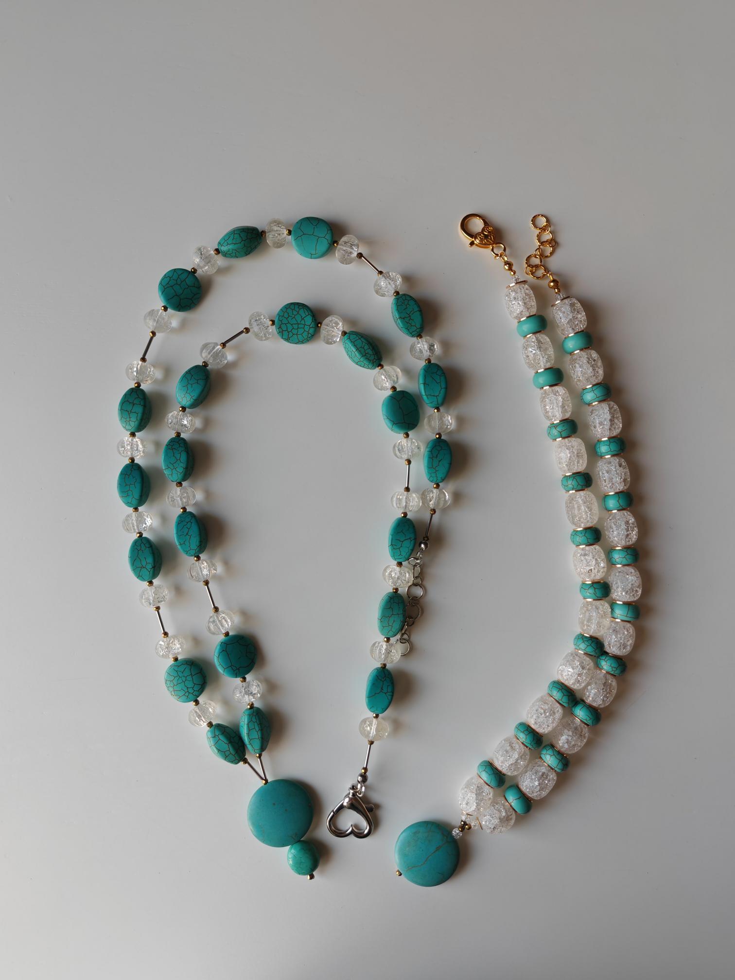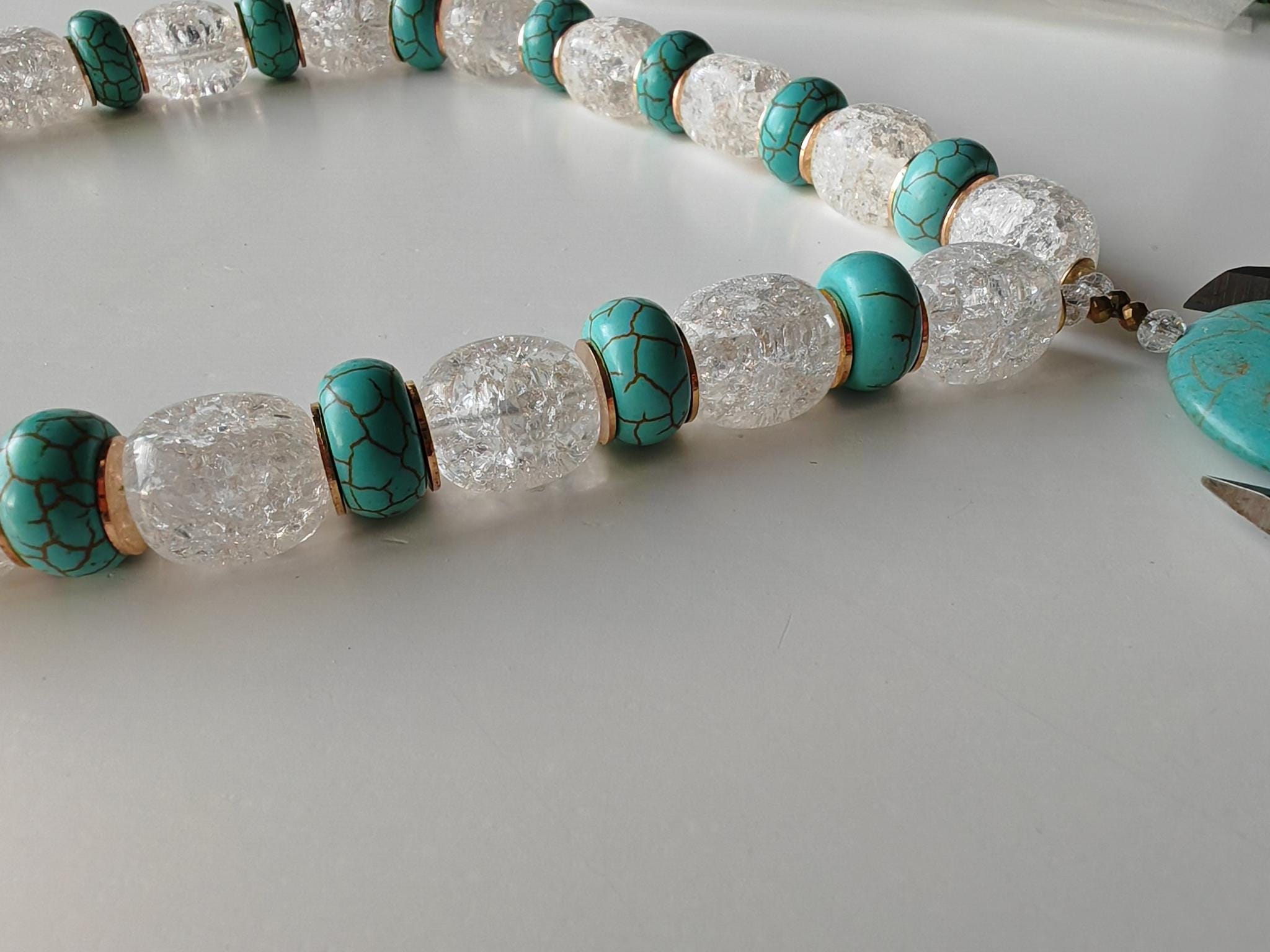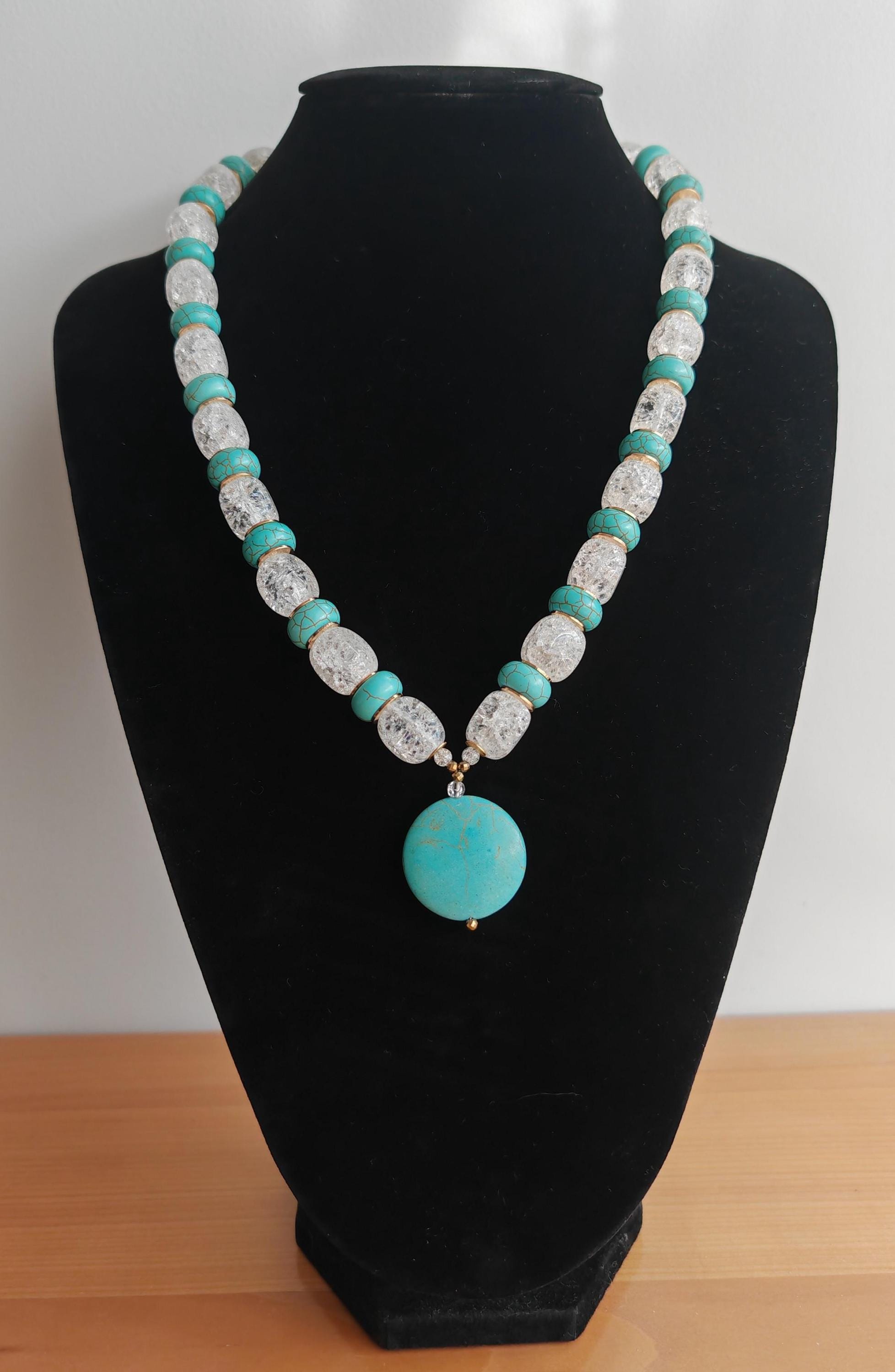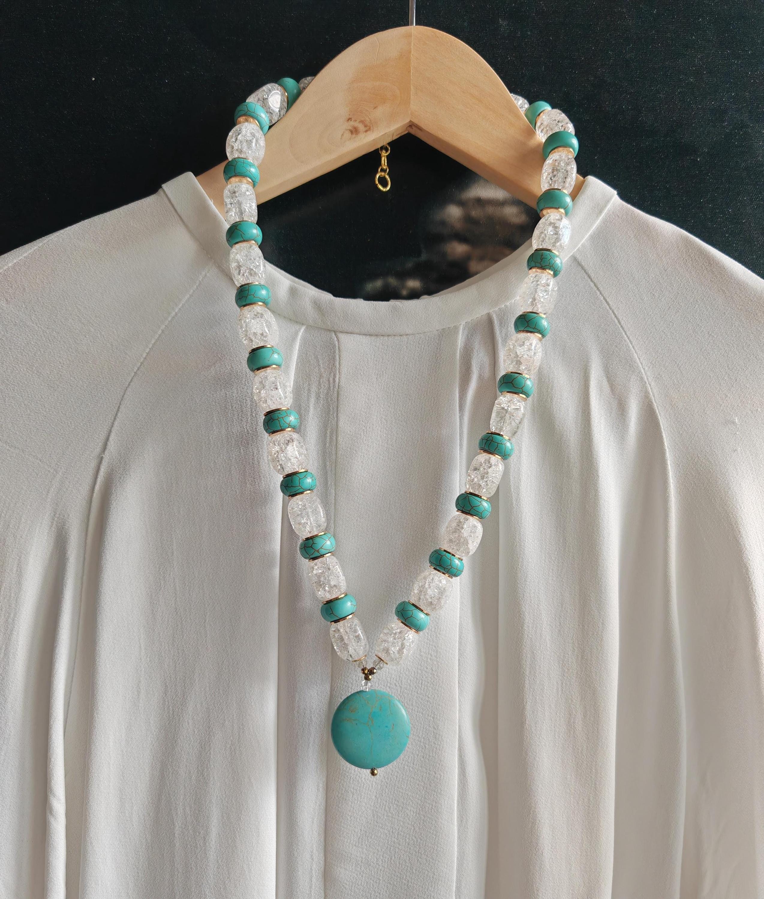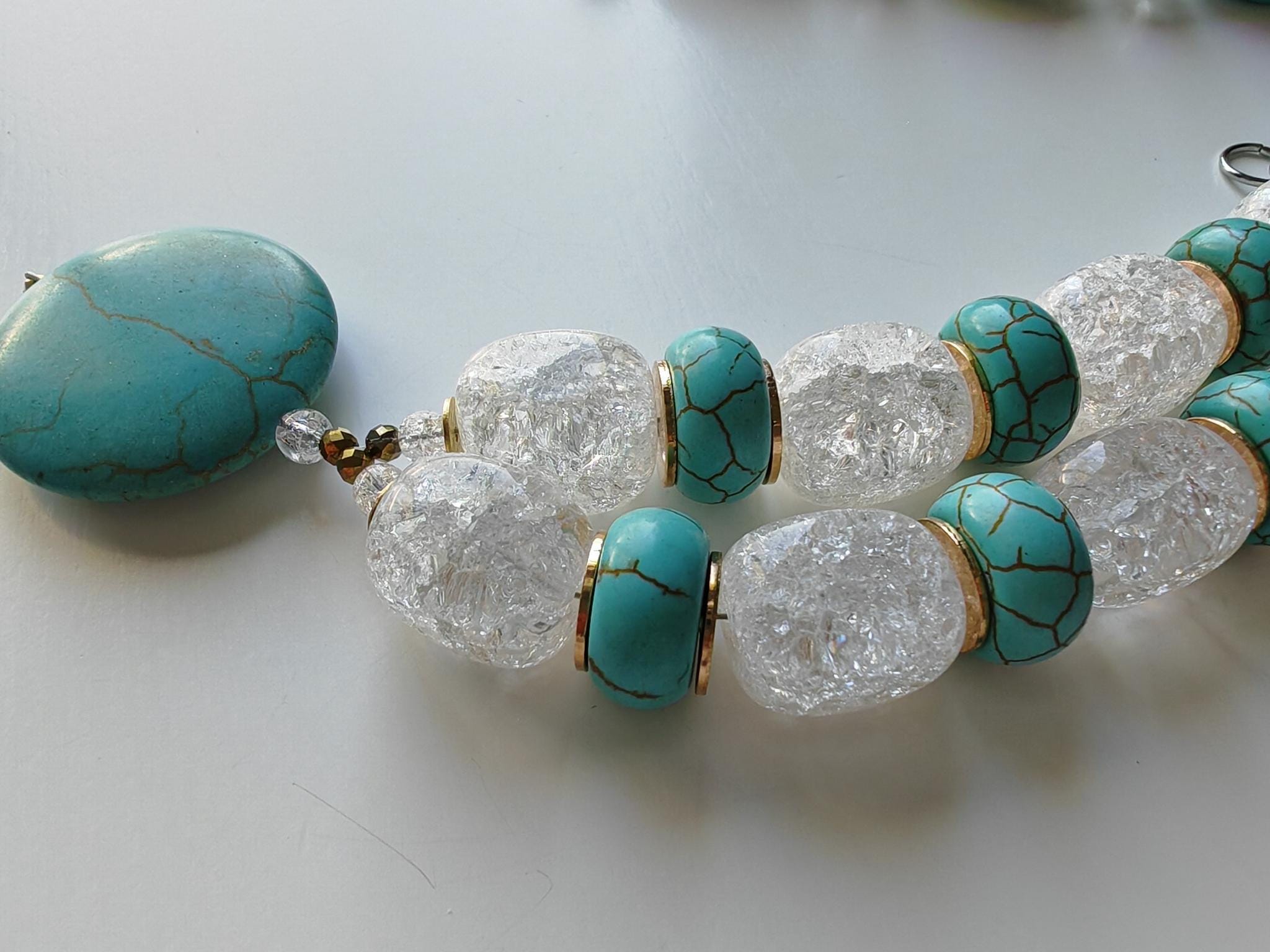 Handmade solid necklaces with pendants made of rock crystal and turquoise howlite beads. Two necklaces are available.