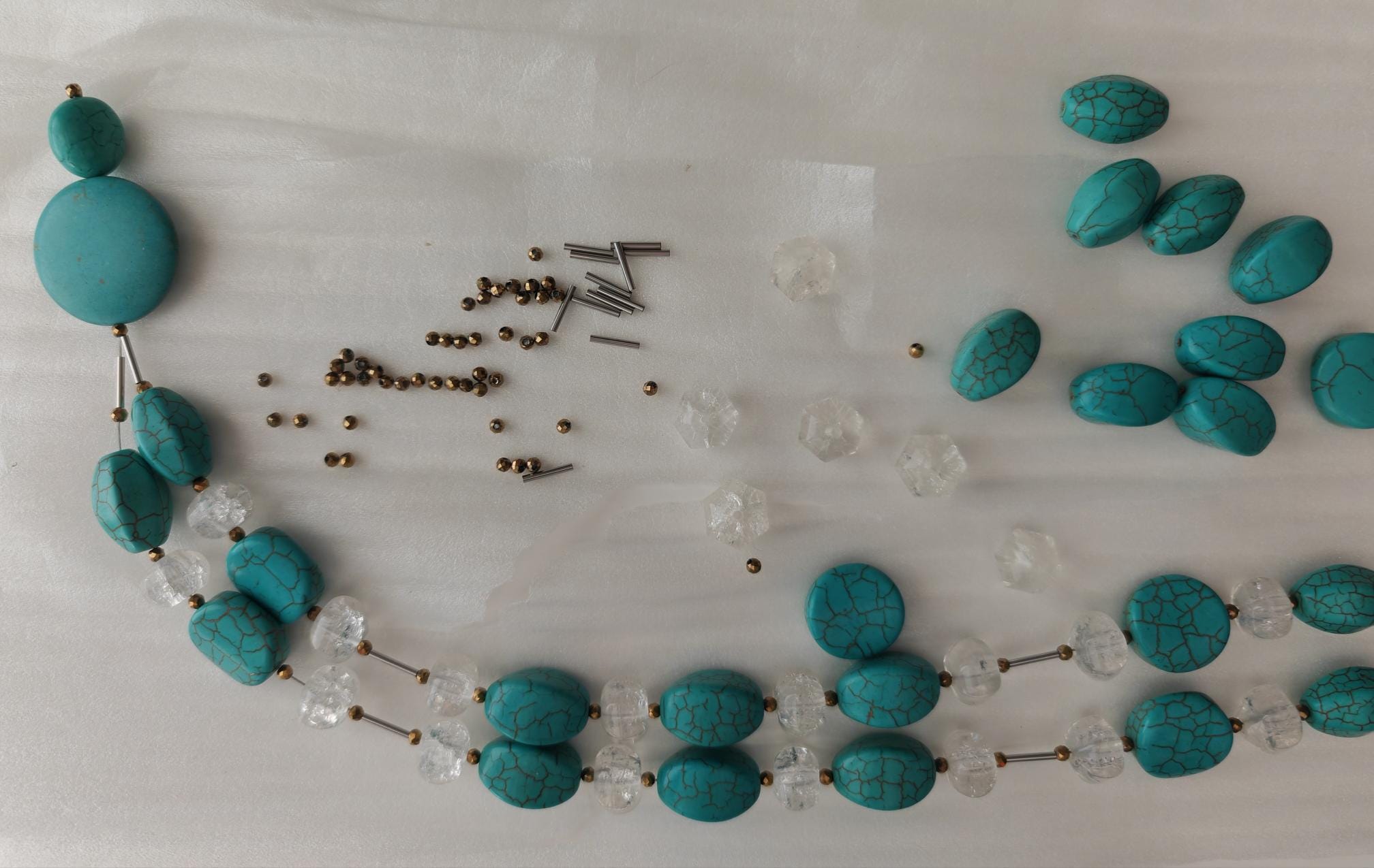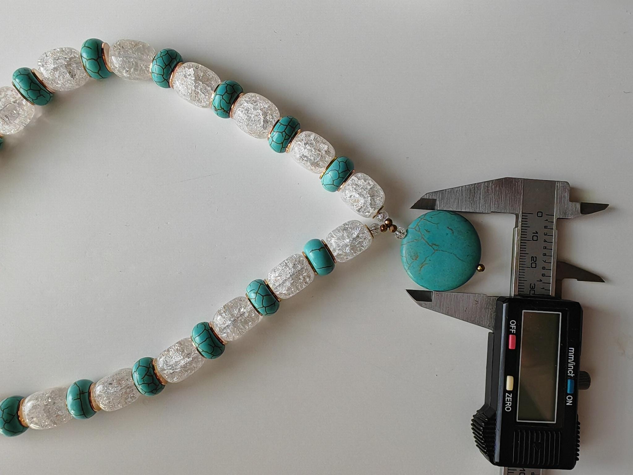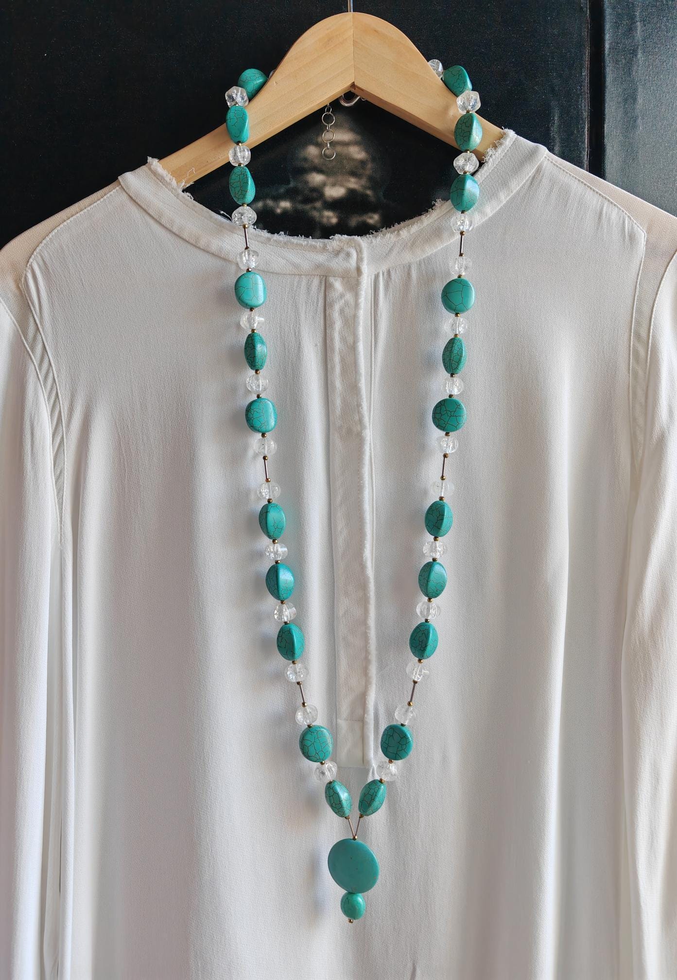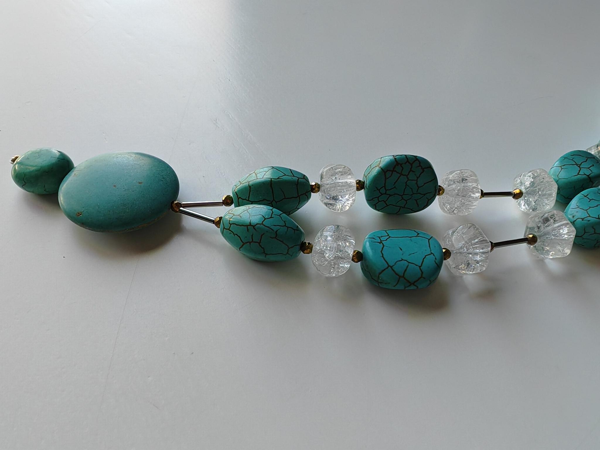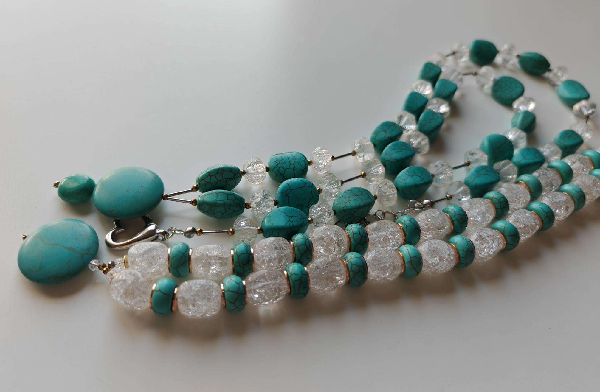 Handmade solid necklaces with pendants made of rock crystal and turquoise howlite beads. Two necklaces are available.