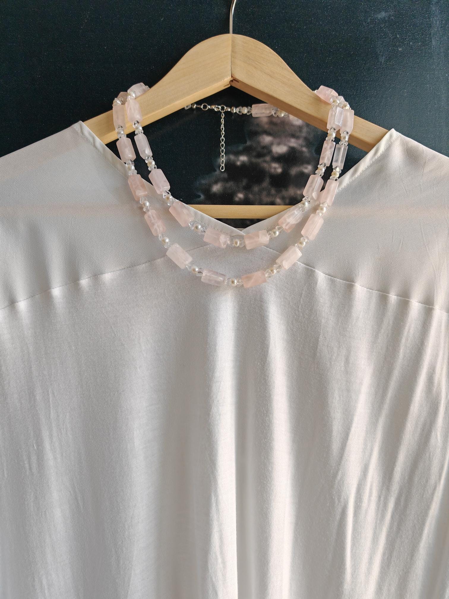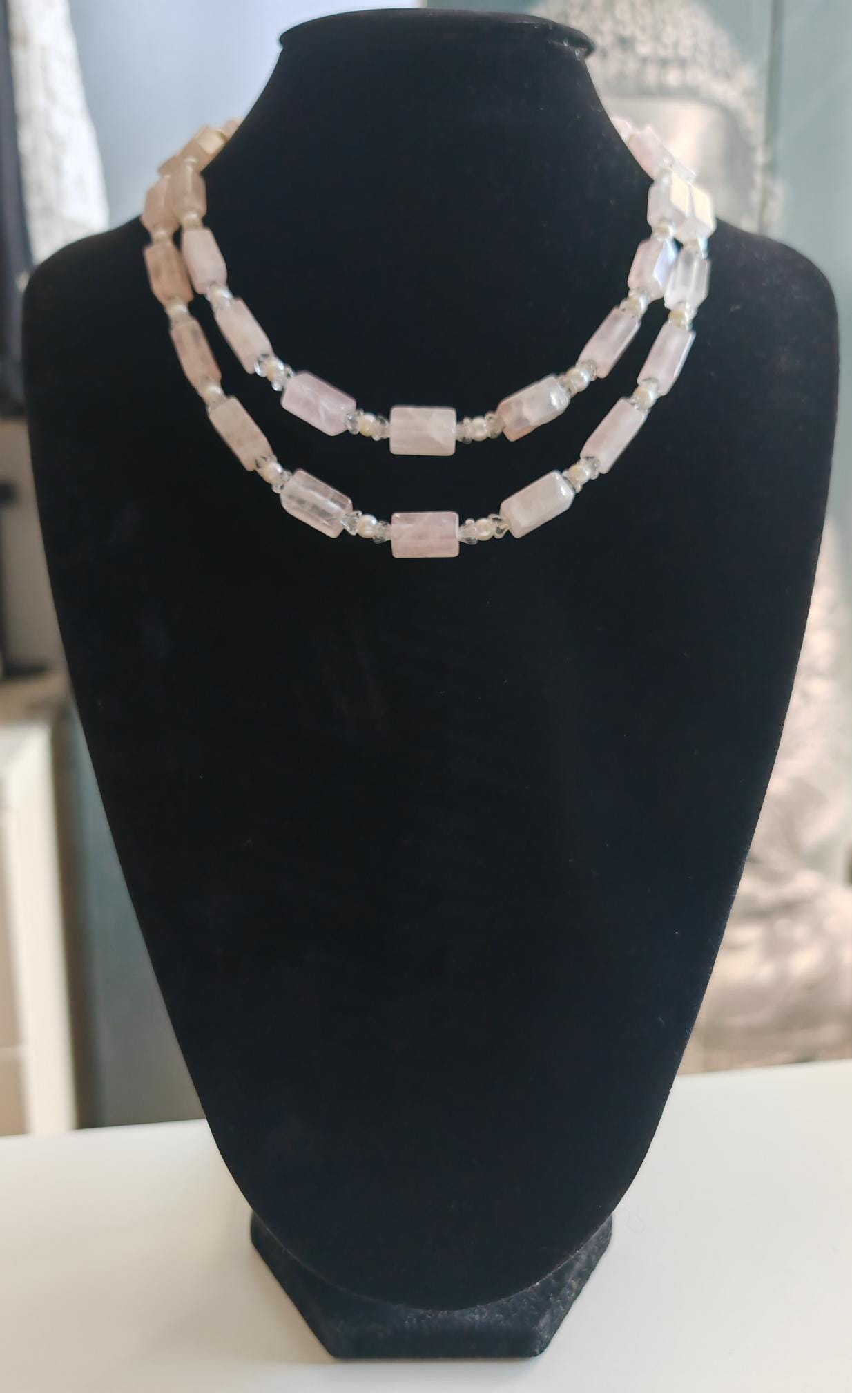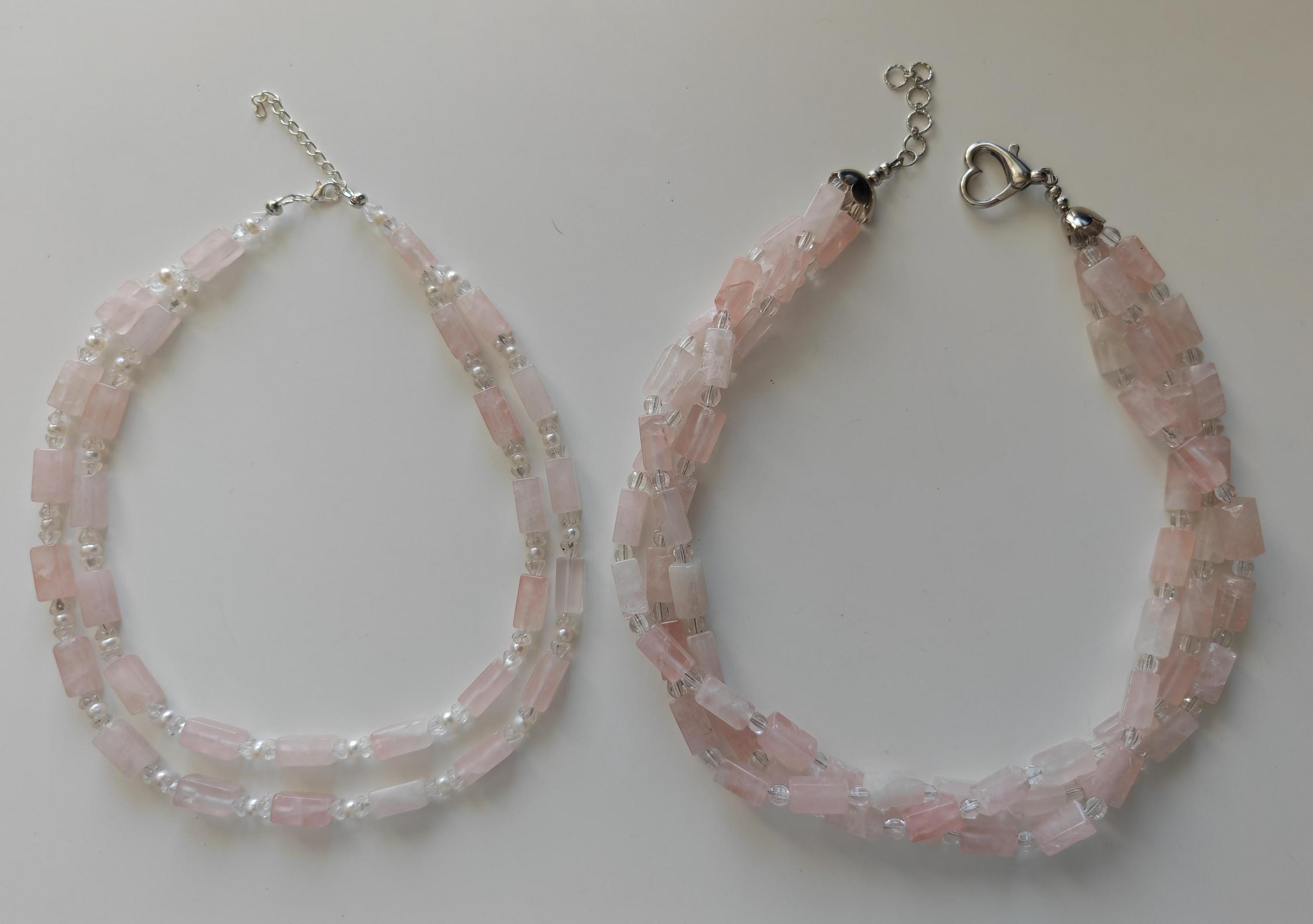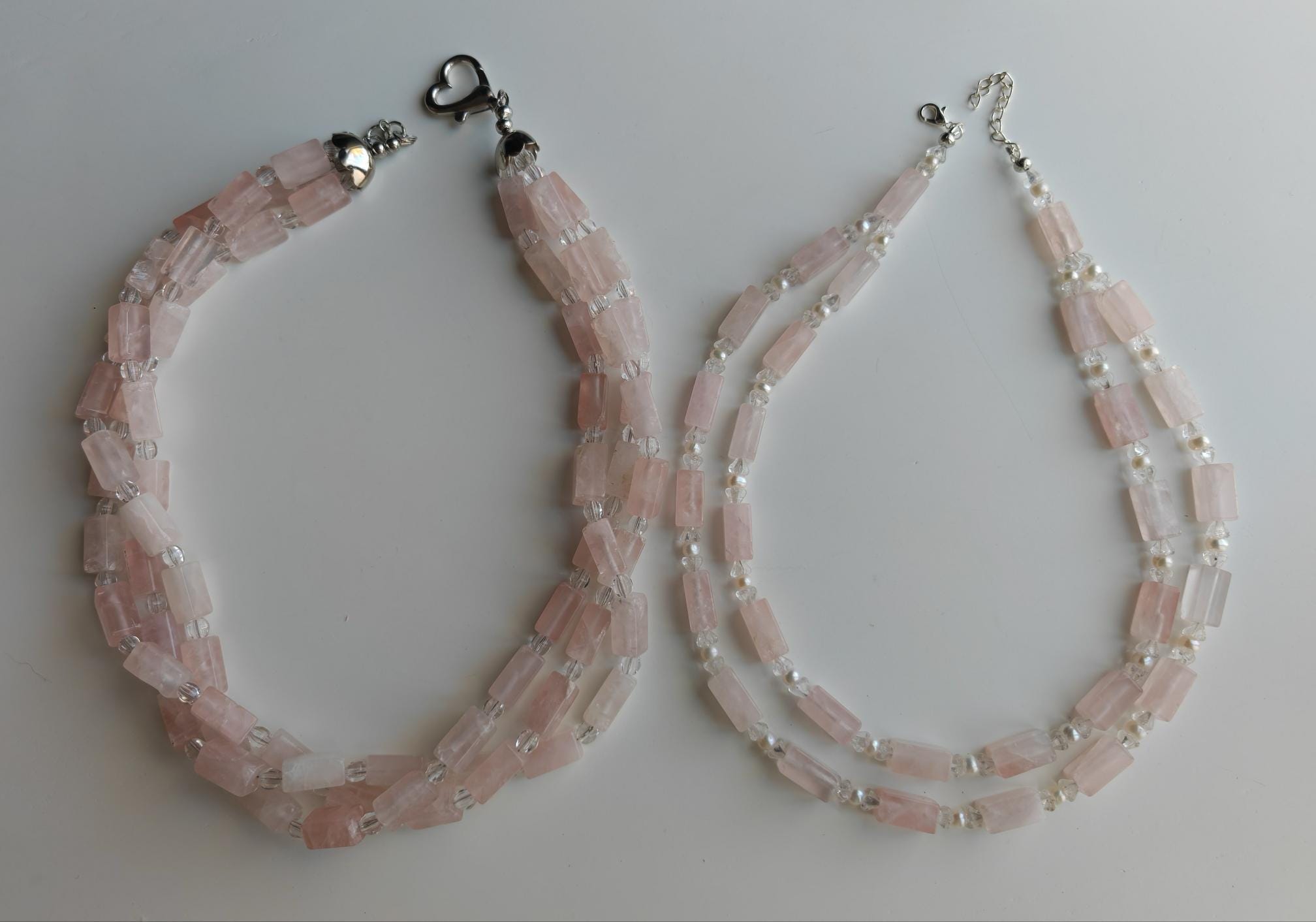 Handmade rose quartz necklaces in a delicate pink. Two necklaces are available.