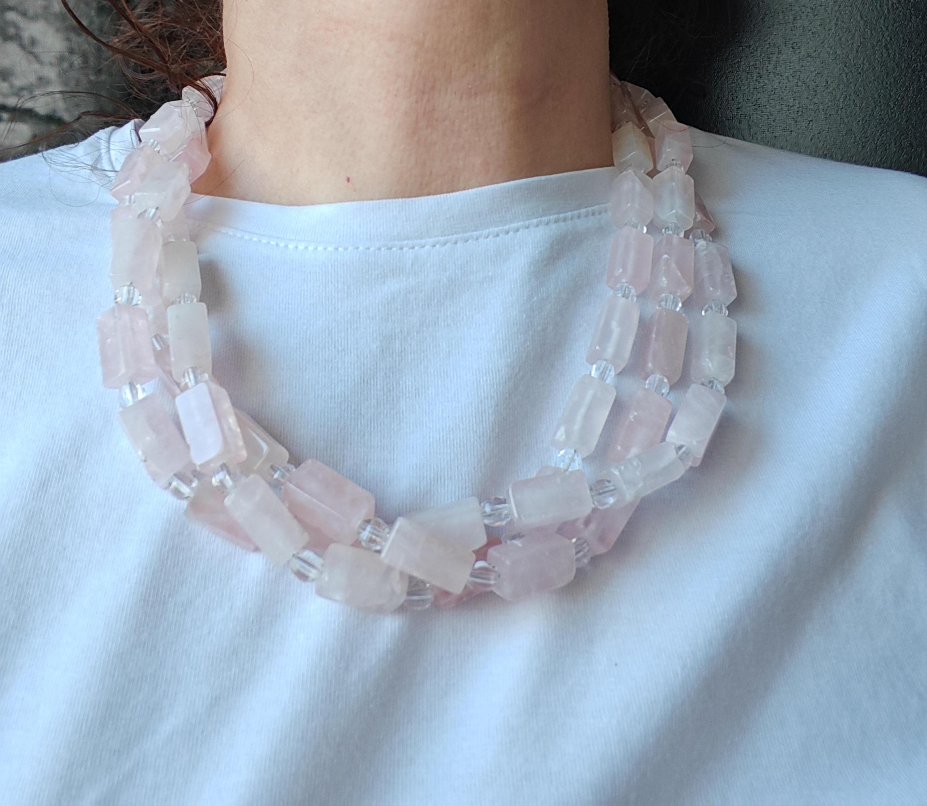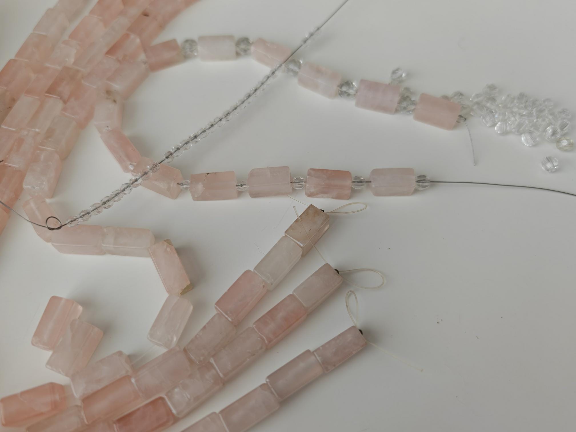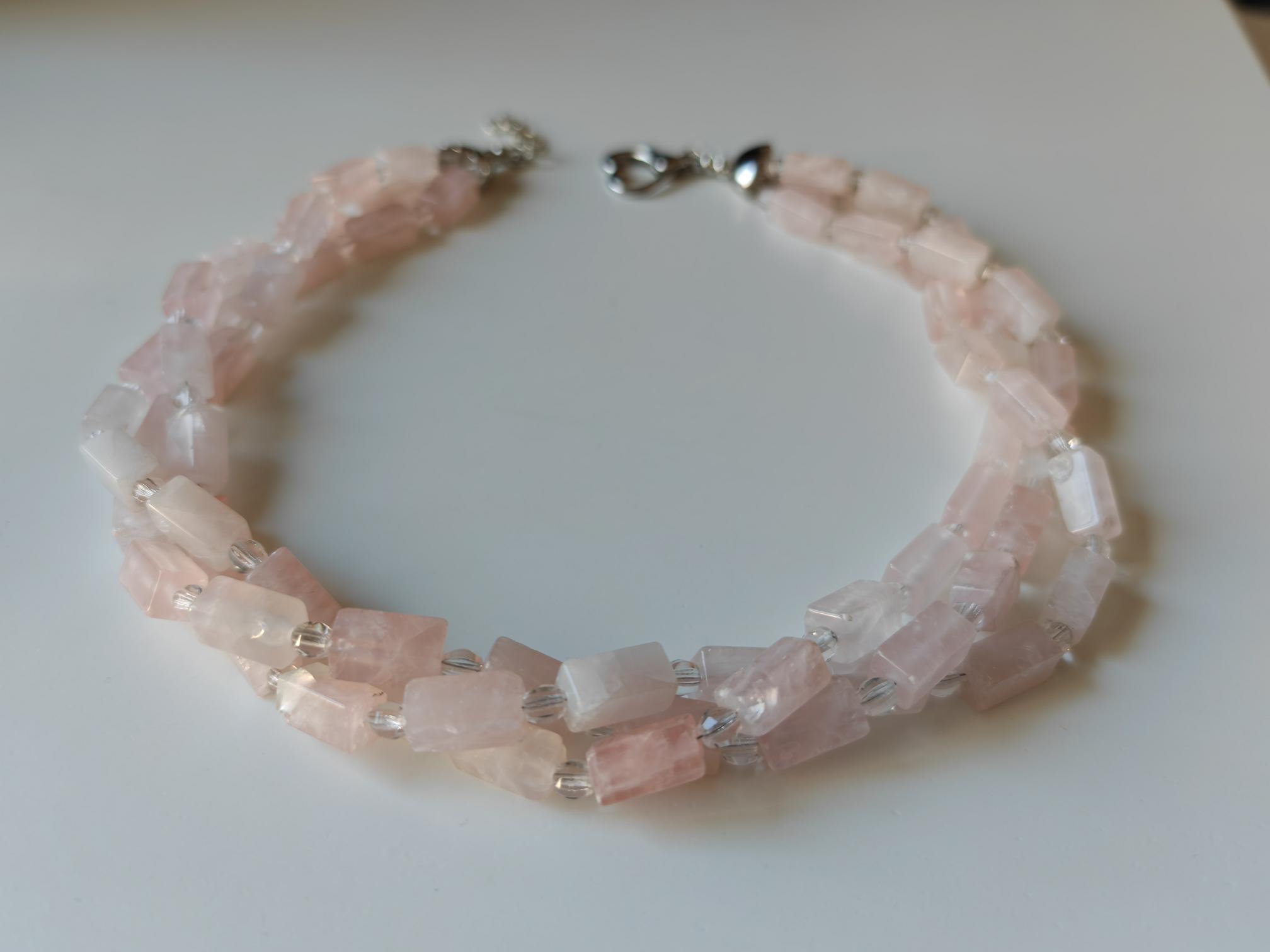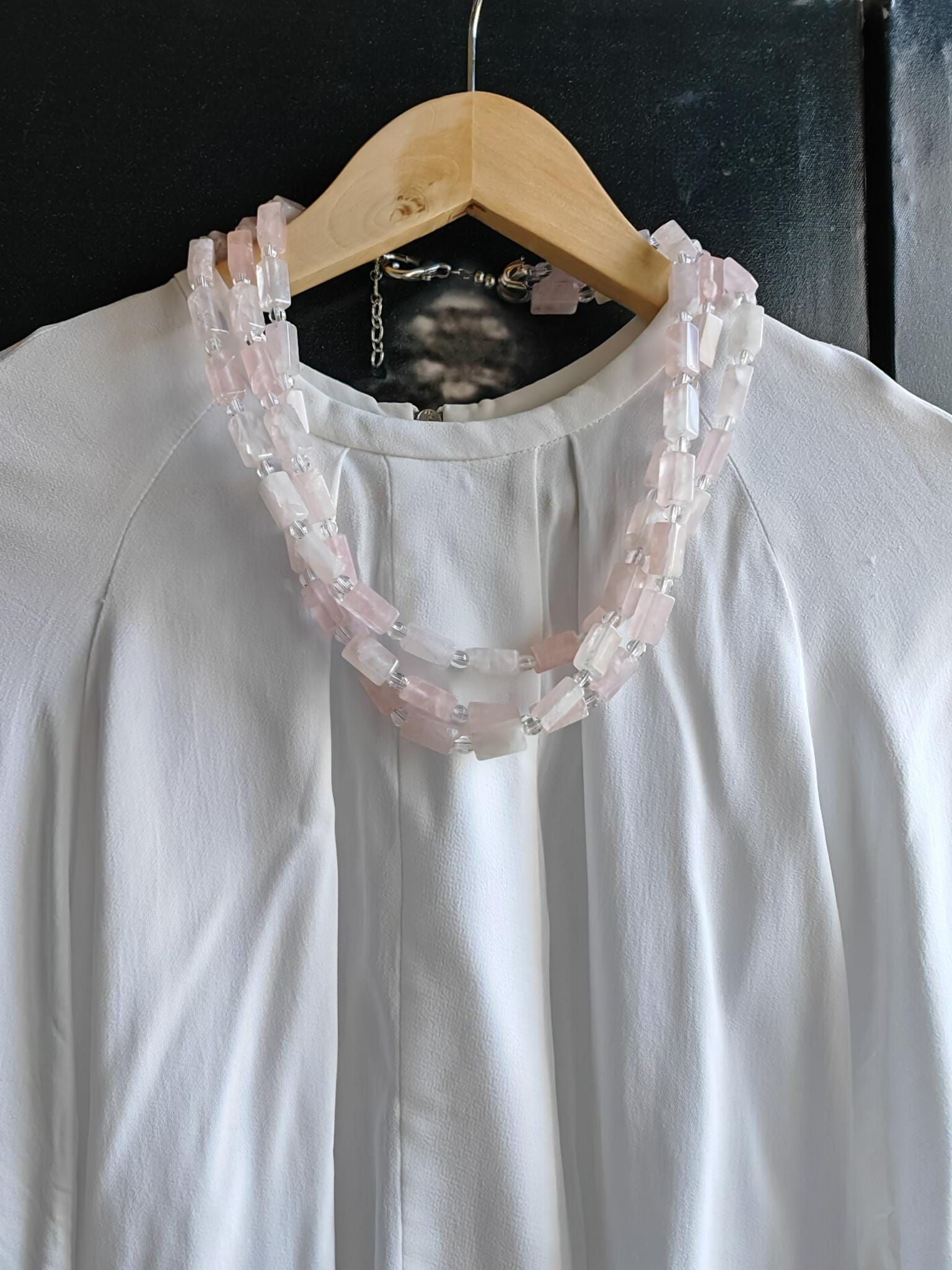 Handmade rose quartz necklaces in a delicate pink. Two necklaces are available.