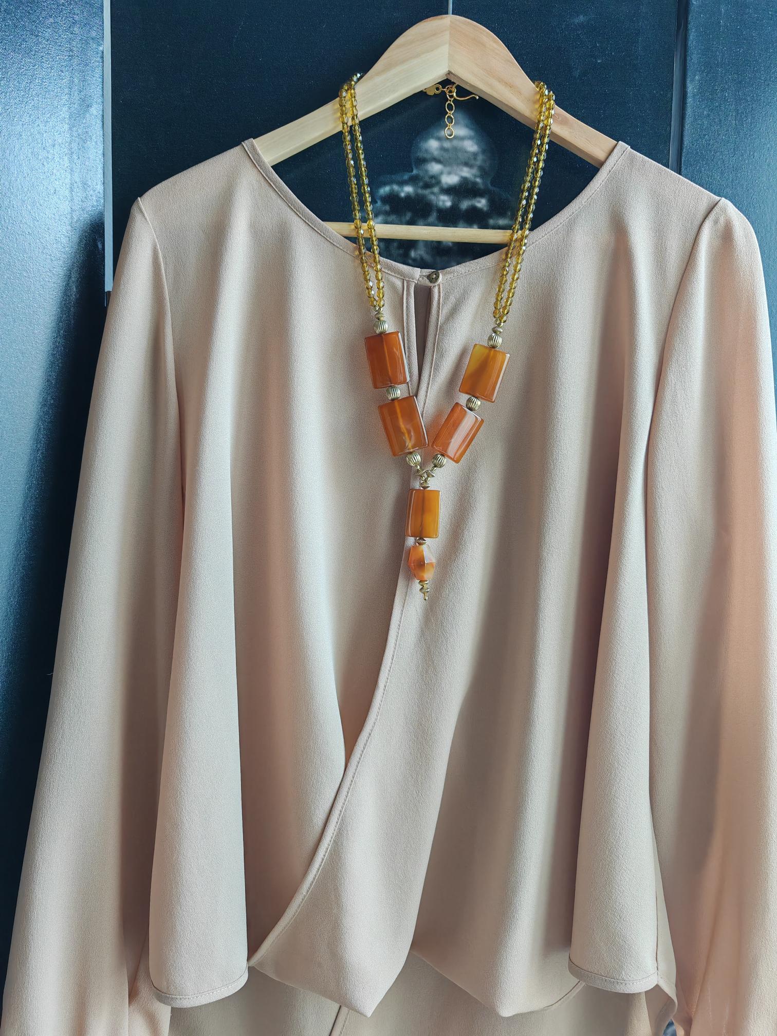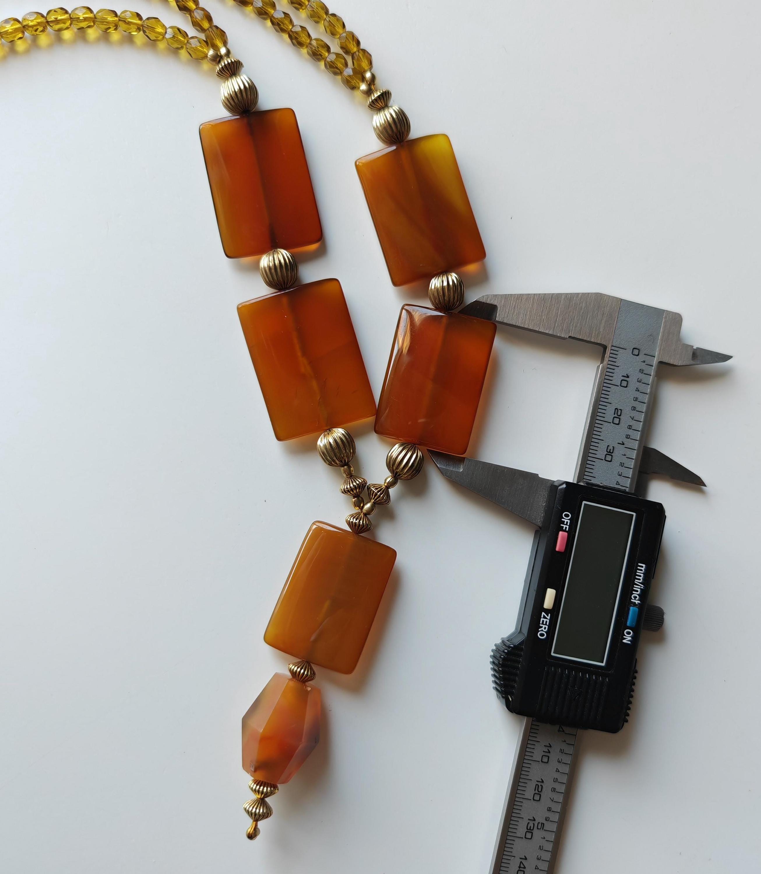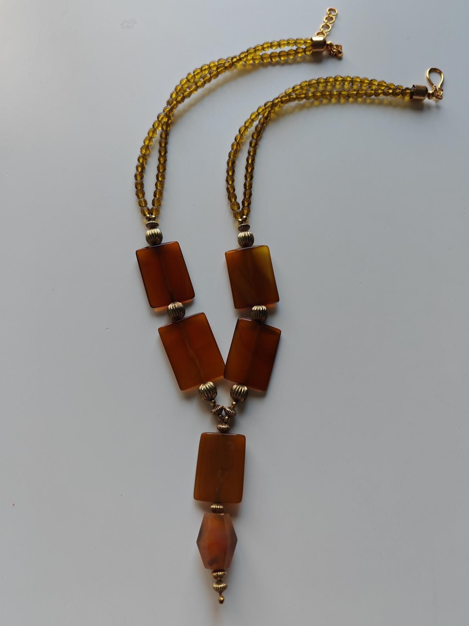 Handmade opulent carnelian necklace with pendant in cognac/brown color.