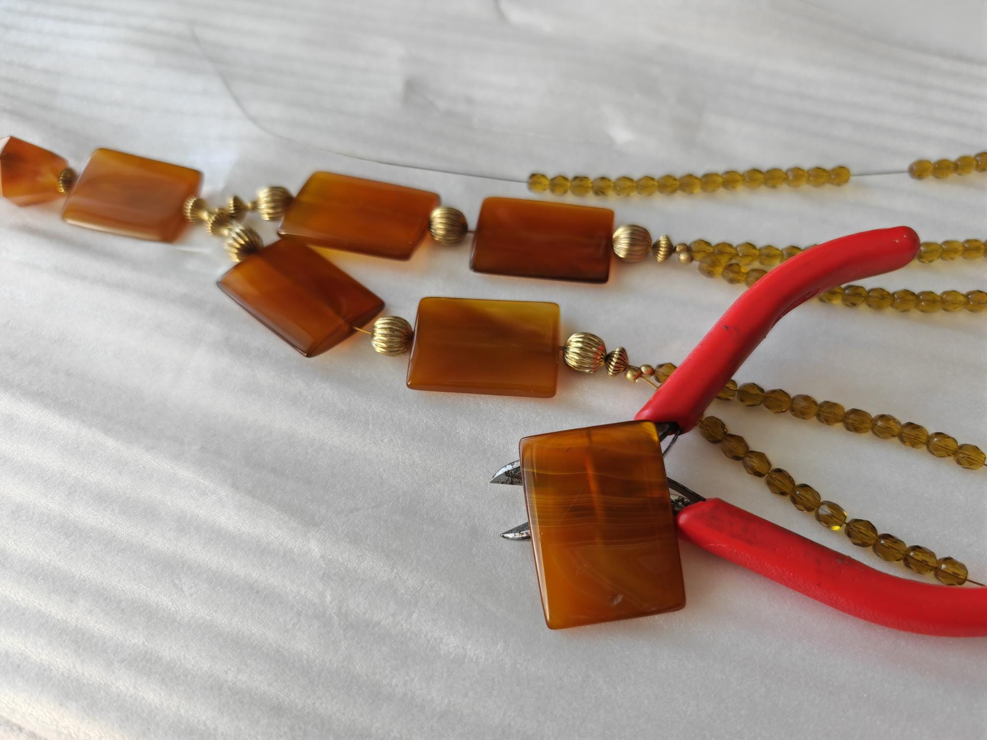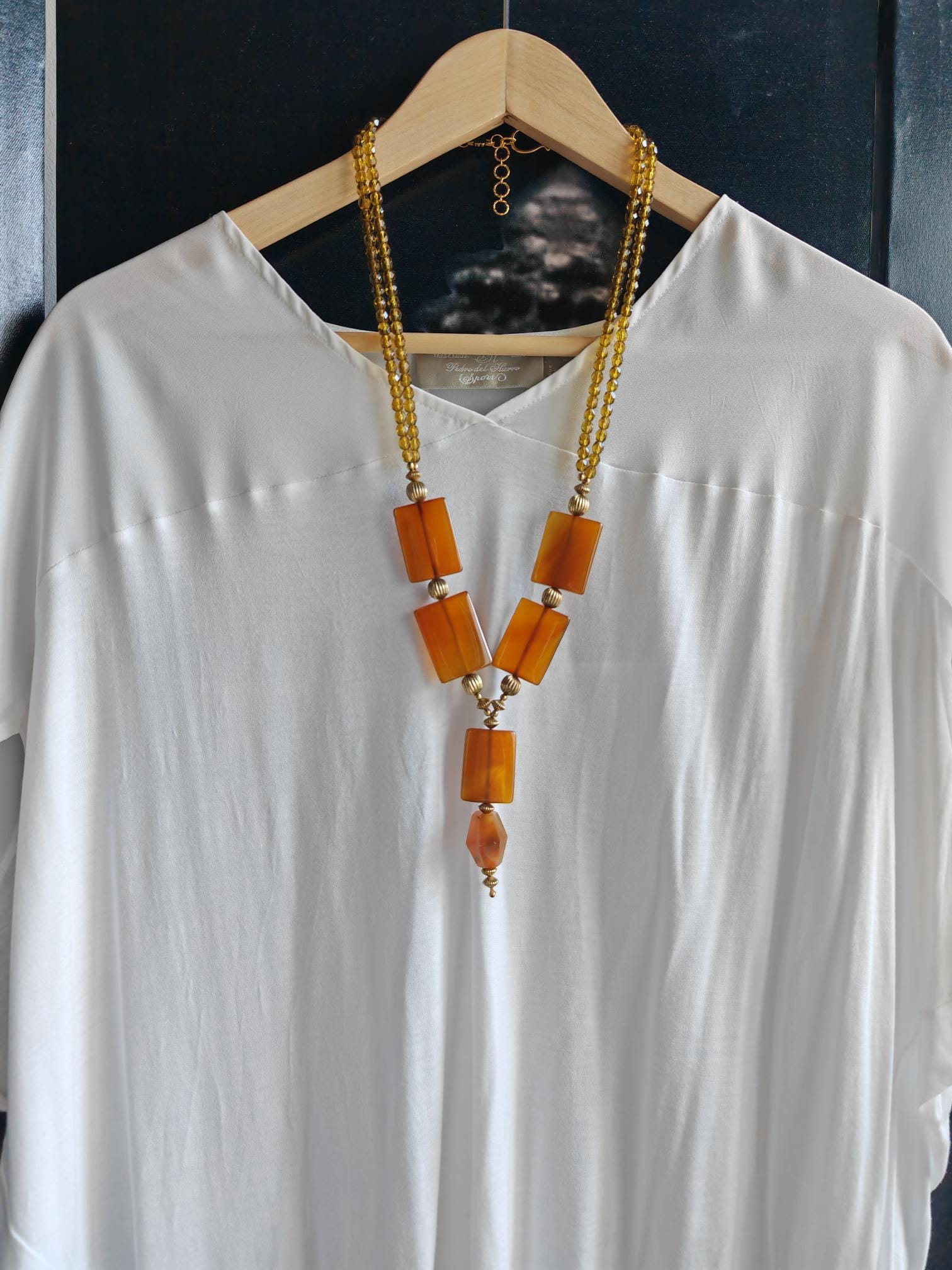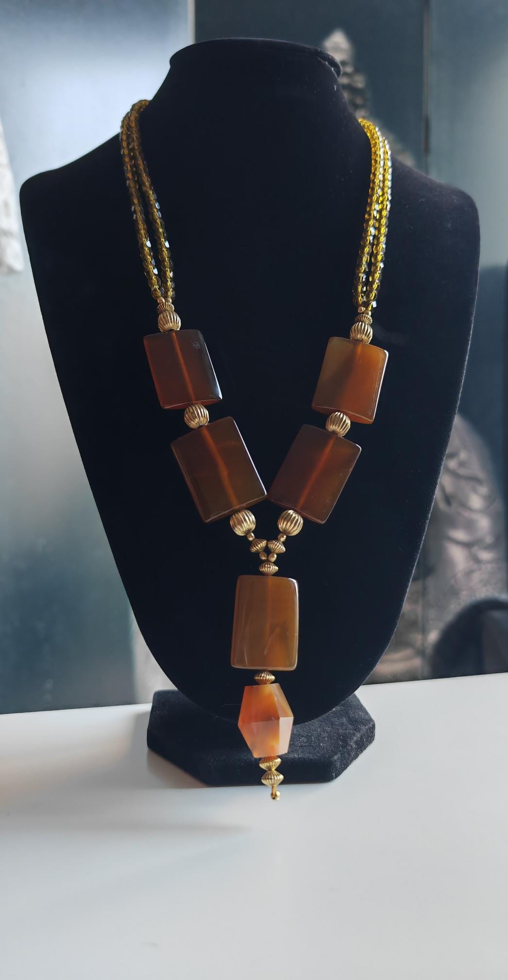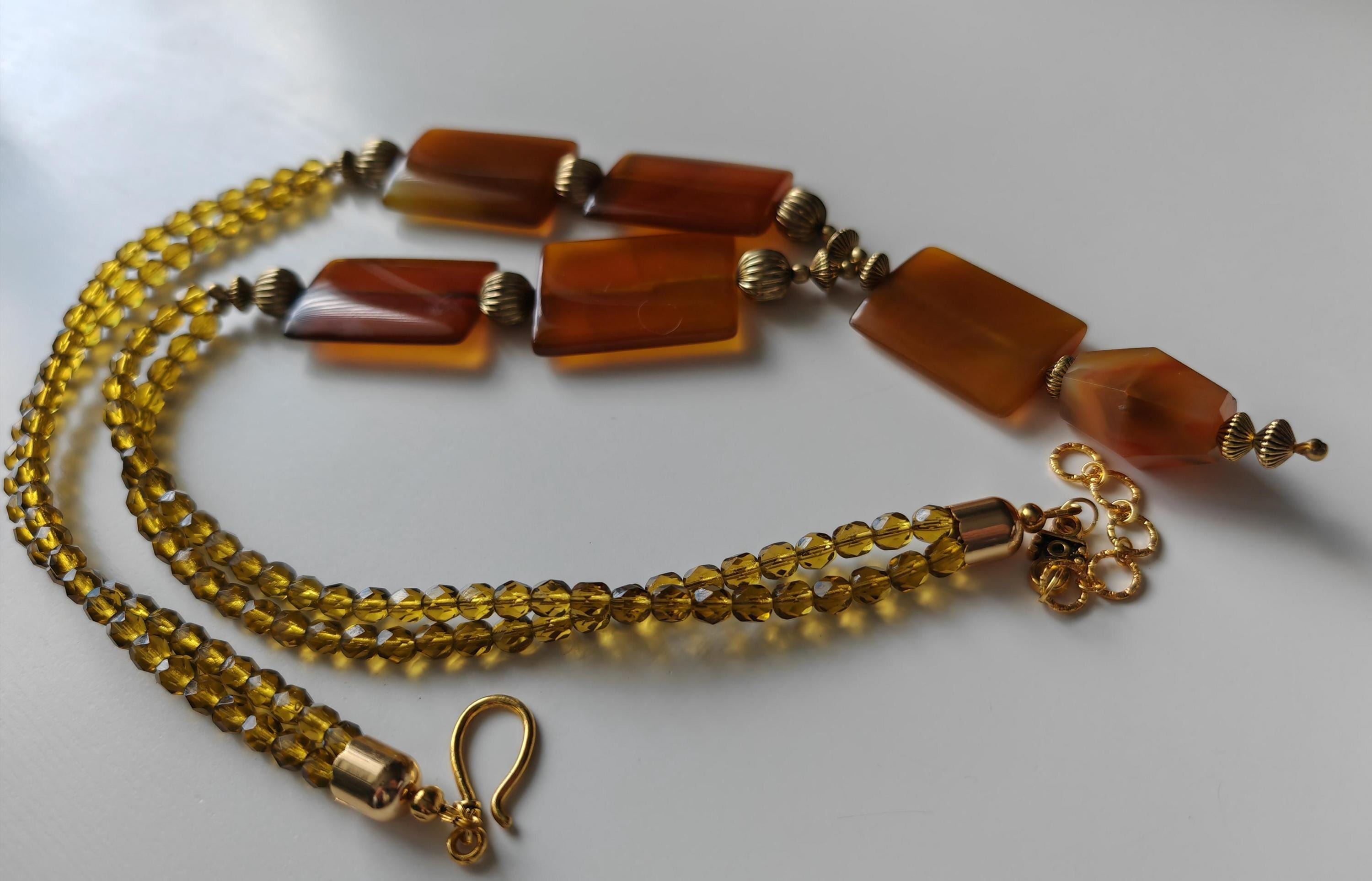 Handmade opulent carnelian necklace with pendant in cognac/brown color.